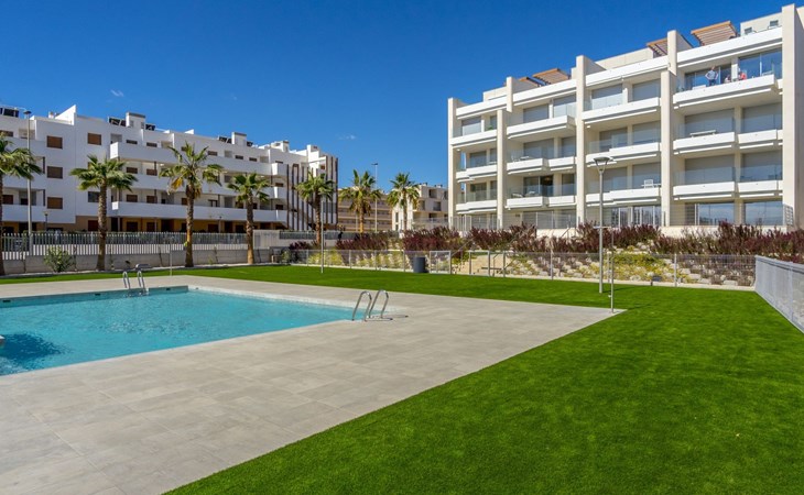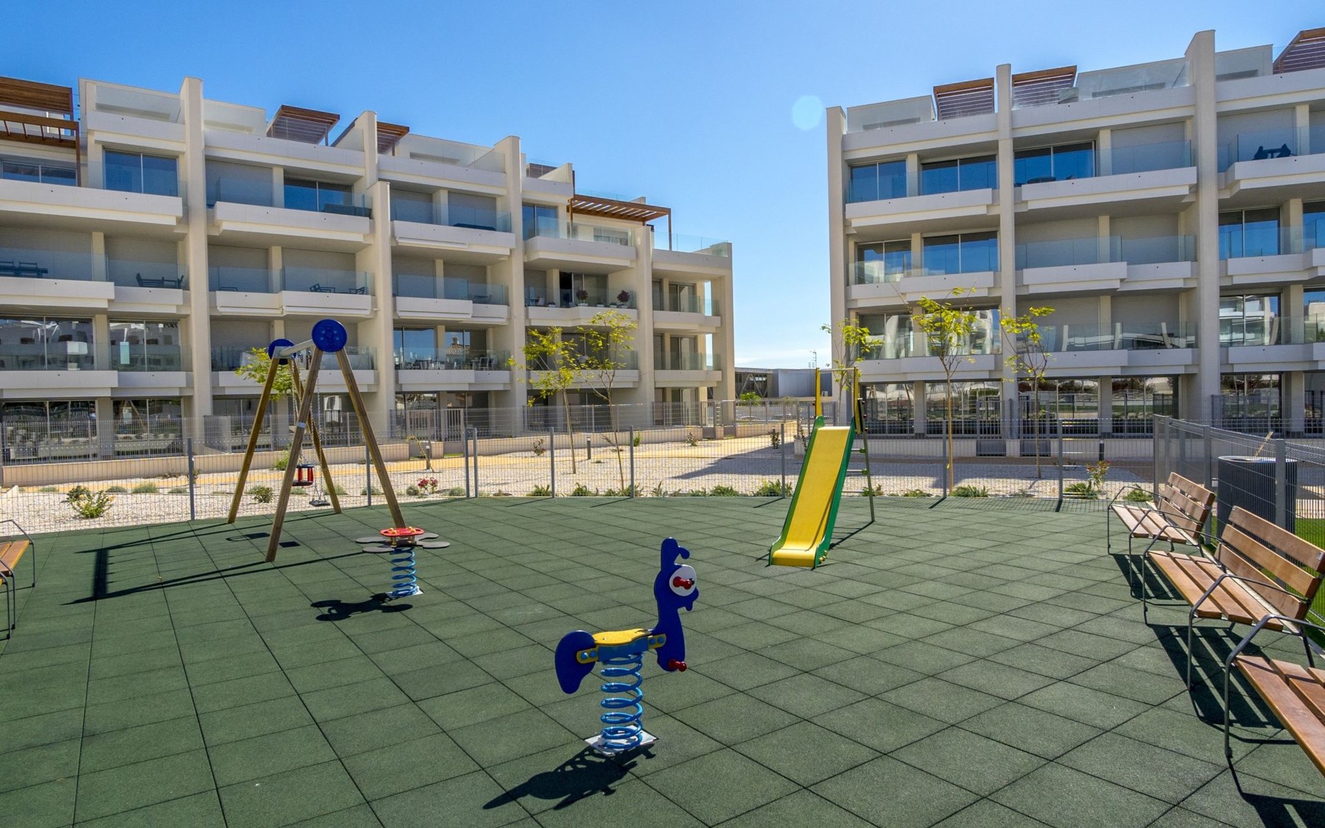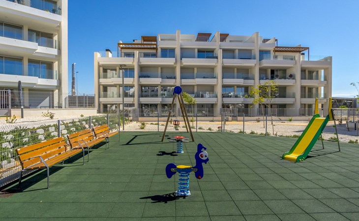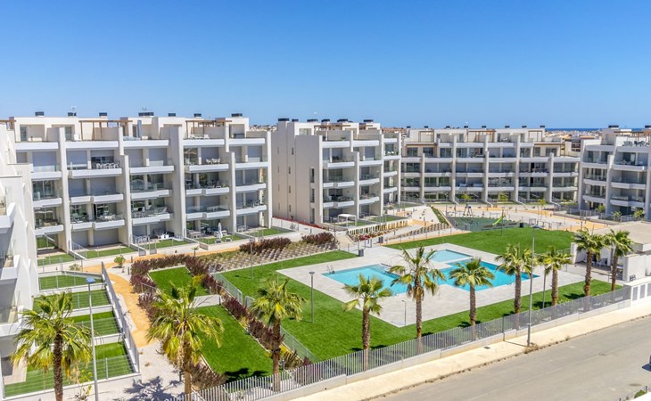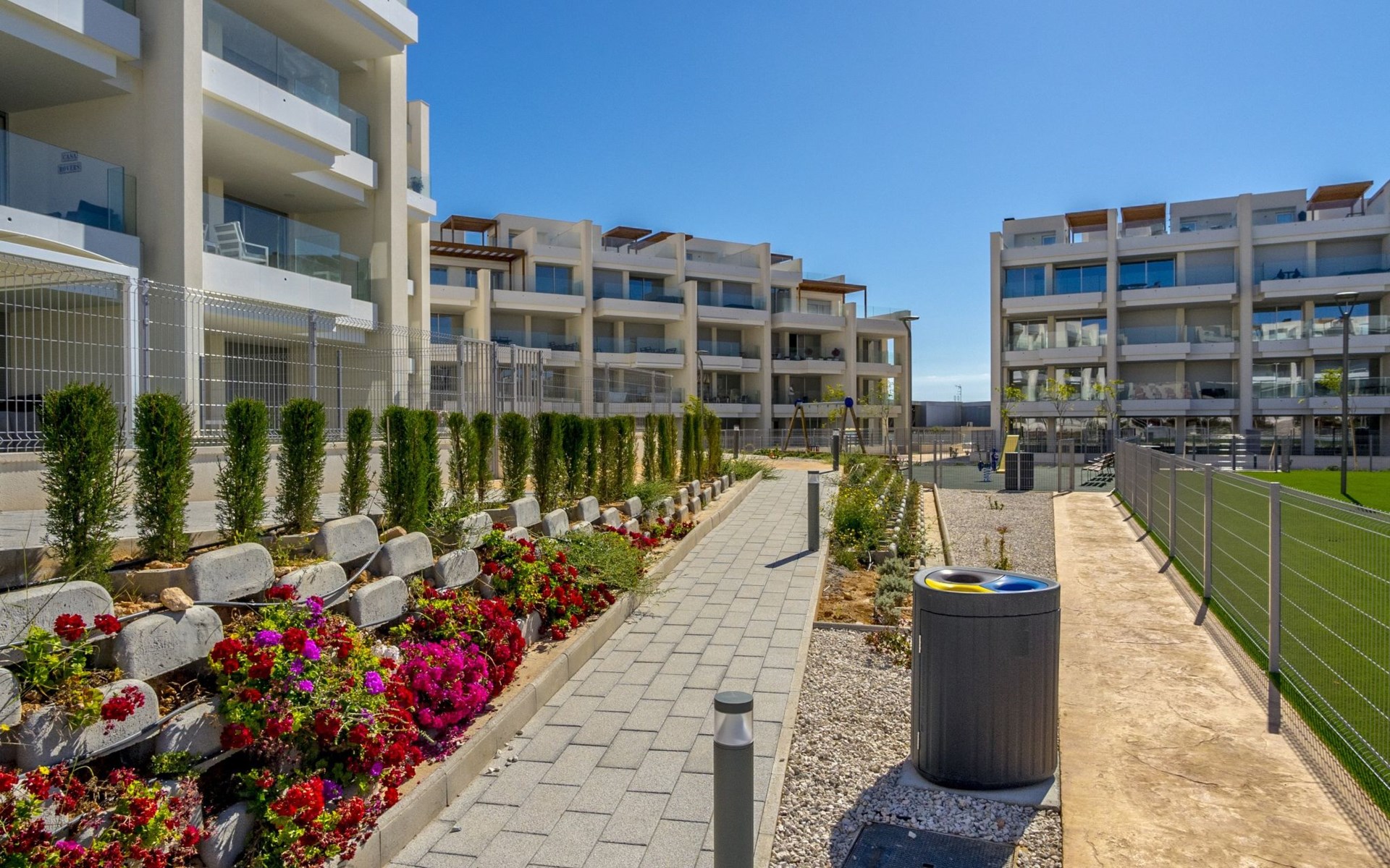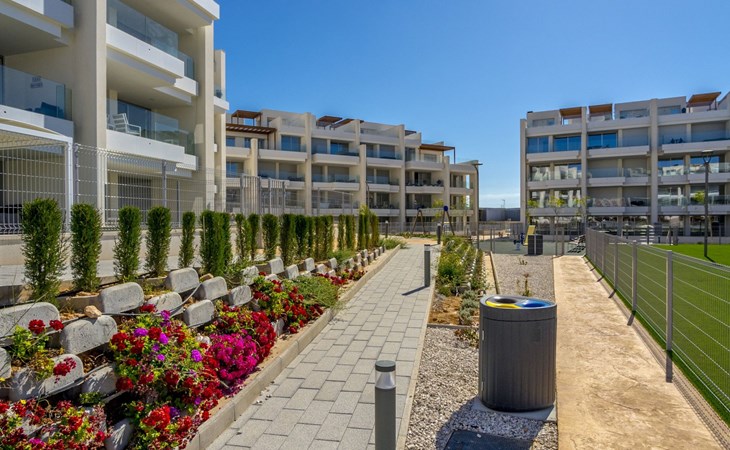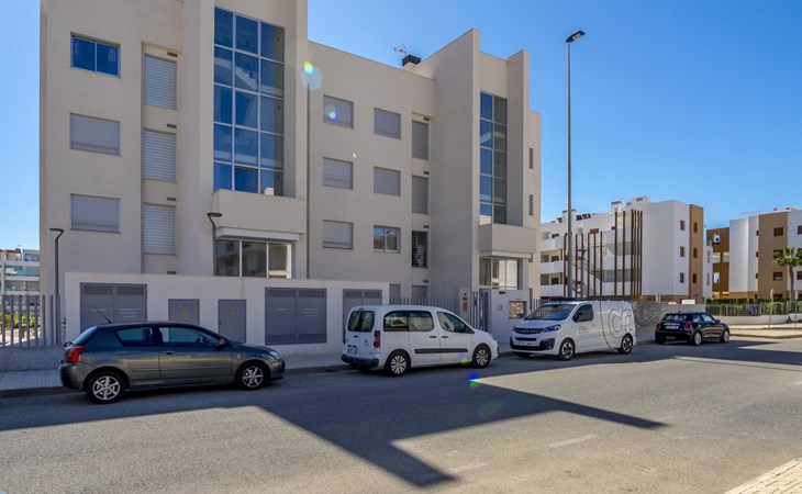 Moderne, mooi flatgebouw "Ema Residencial", van 4 verdiepingen, bouwjaar 2023. 3 km van het centrum van La Zenia, 4 km van het centrum van Punta Prima, 7 km van het centrum van Dehesa de Campoamor, gebied met weinig verkeer, 2.8 km van zee, 2.8 km van het strand. Voor medegebruik: terrein (omheind), openluchtzwembad (seizoensgebonden beschikbaarheid: 01.Jan. - 31.Dec.). Kinderzwembad, buitendouche, kinderspeelplaats. In het huis: lift. Levensmiddelenwinkel, supermarkt 950 m, restaurant 100 m, bushalte "Platja Flamenca – Mercadillo" 350 m, treinstation "Orihuela" 27 km, zandstrand "Playa la Zenia" 3 km. Golfterrein (18 holes) 1.9 km. De eigenaar accepteert geen groepen.