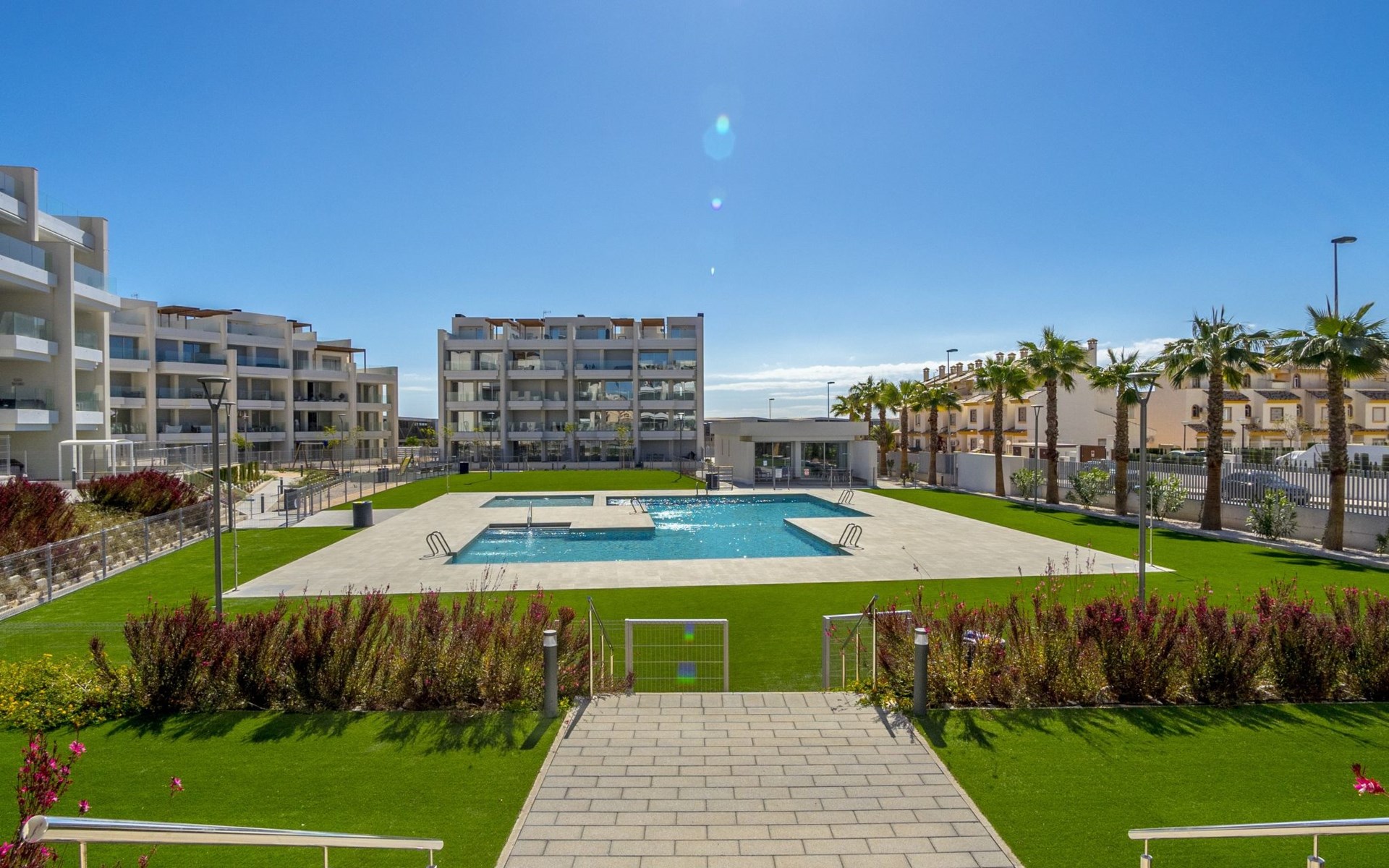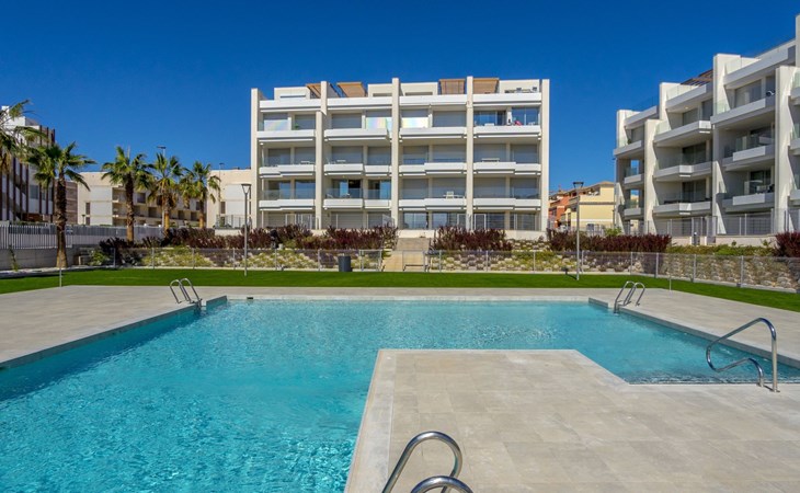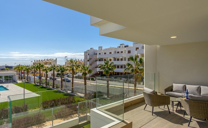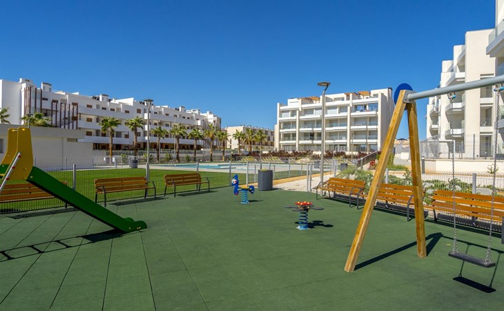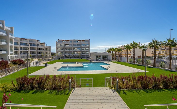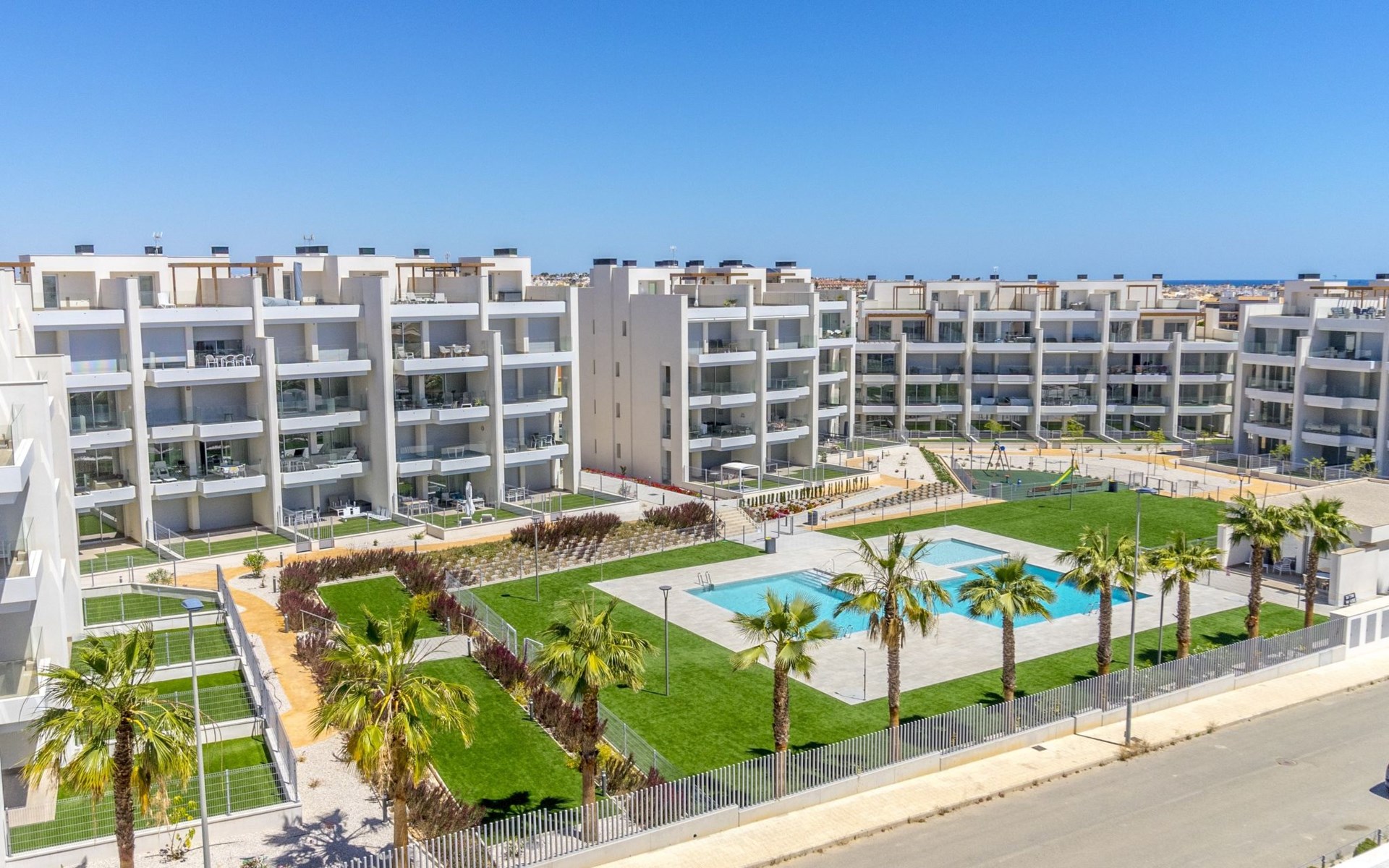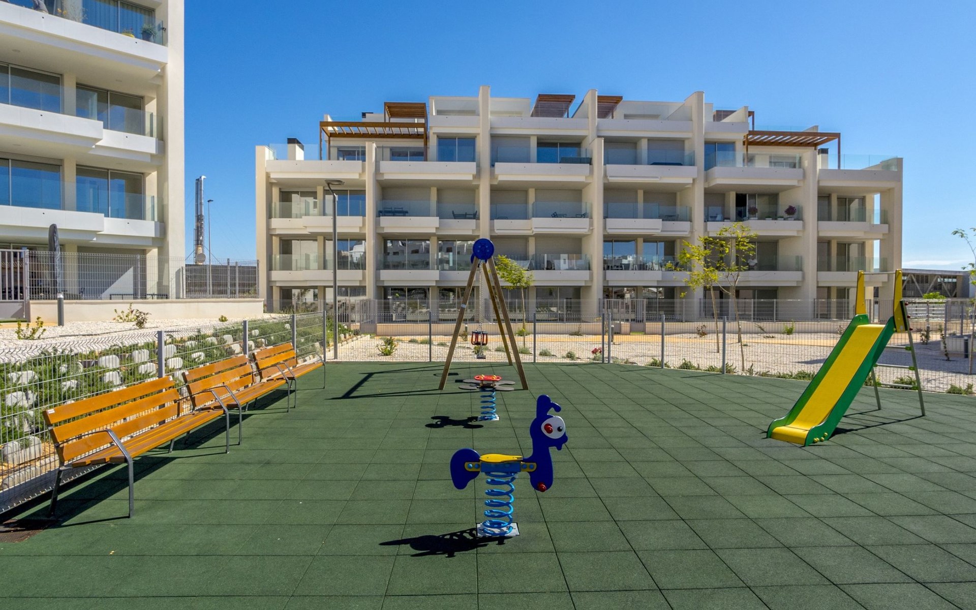 Moderne, mooi flatgebouw "Ema Residencial", van 4 verdiepingen, bouwjaar 2023. 3 km van het centrum van La Zenia, 4 km van het centrum van Punta Prima, 7 km van het centrum van Dehesa de Campoamor, gebied met weinig verkeer, 2.8 km van zee, 2.8 km van het strand. Voor medegebruik: terrein (omheind), openluchtzwembad (seizoensgebonden beschikbaarheid: 01.Jan. - 31.Dec.). Kinderzwembad, buitendouche, kinderspeelplaats. In het huis: lift. Levensmiddelenwinkel, supermarkt 950 m, restaurant 100 m, bushalte "Platja Flamenca – Mercadillo" 350 m, treinstation "Orihuela" 27 km, zandstrand "Playa la Zenia" 3 km. Golfterrein (18 holes) 1.9 km. De eigenaar accepteert geen groepen.