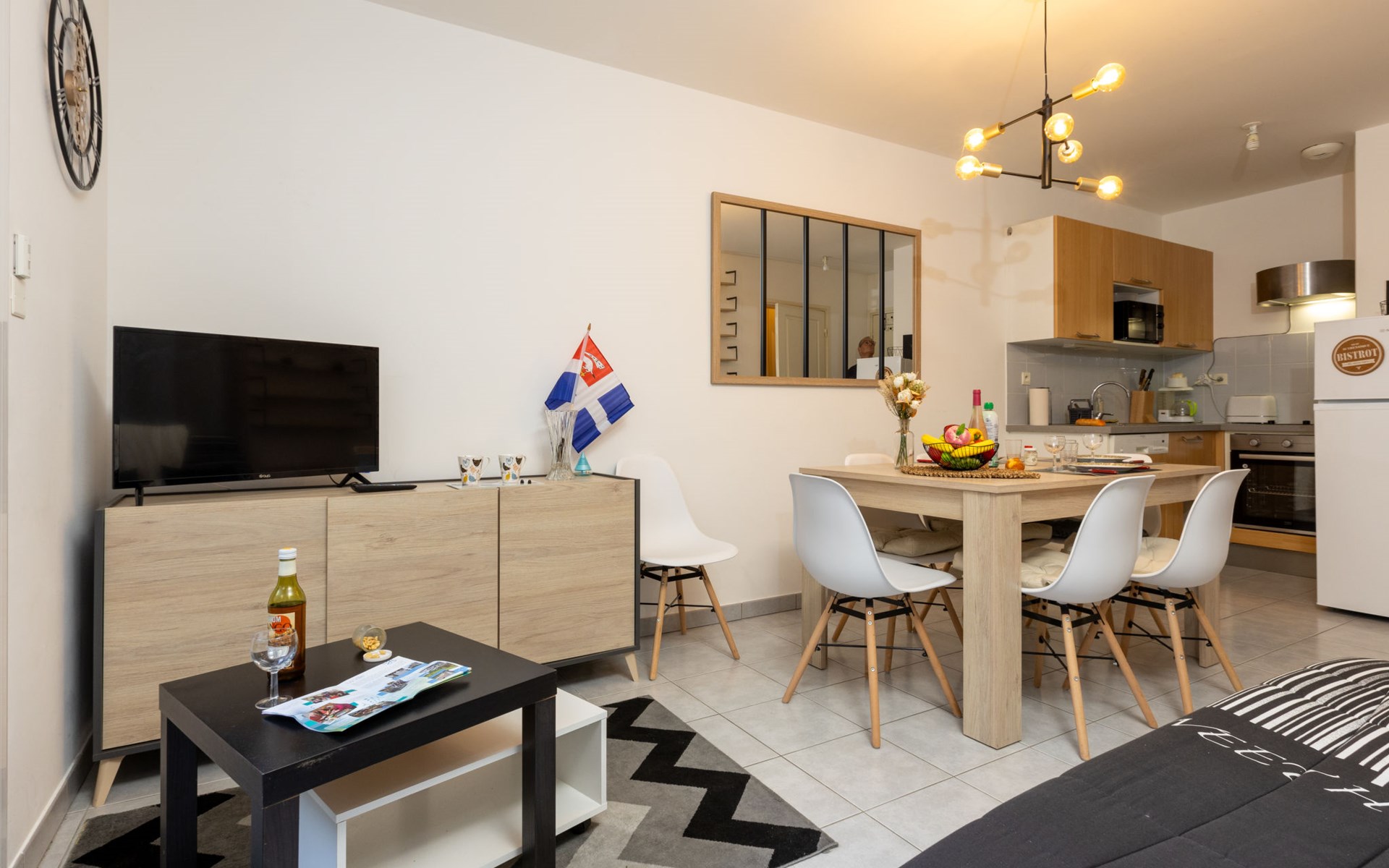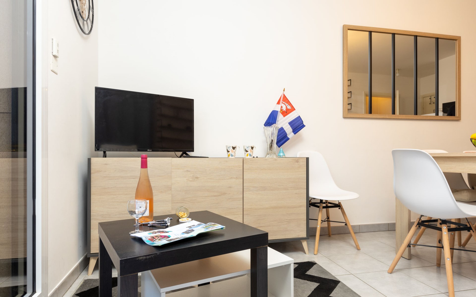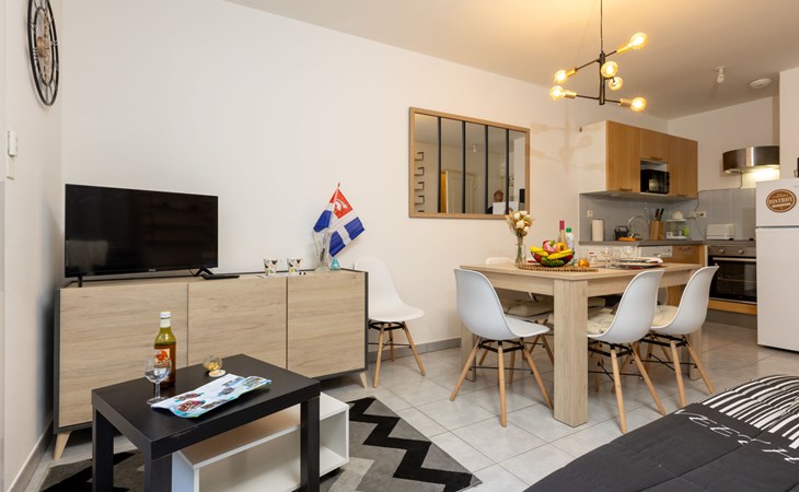 Residentie "Nautica". In de wijk de la Gare, in het centrum van de stad, van zee, 900 m van het strand. Levensmiddelenwinkel 50 m, restaurant, bakkerij 50 m, café, station "Gare TGV St Malo", zandstrand "Sillon" 900 m, thermaalbad "Thermes marins de Saint Malo" 1.6 km. Attracties in de buurt: Saint malo Intra Muros 1 km, Cancale 13 km, Dinard 8 km, Grand aquarium de Saint Malo 4 km, Golf du Tronchet 25 km, Mont Saint Michel 40 km. De sleuteloverdracht vindt plaats bij het agentschap Interhome in Saint Malo.