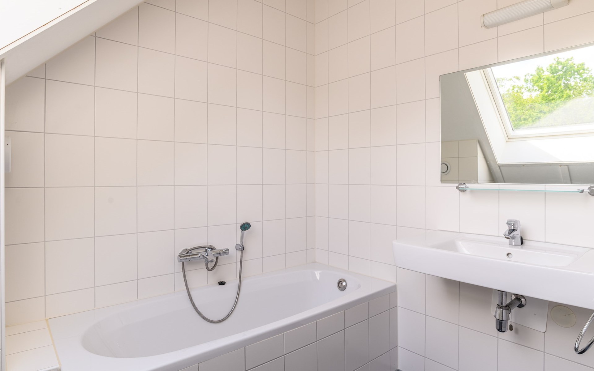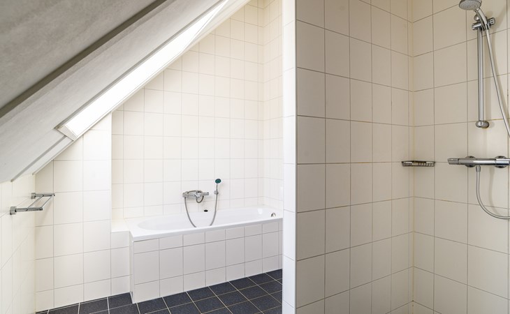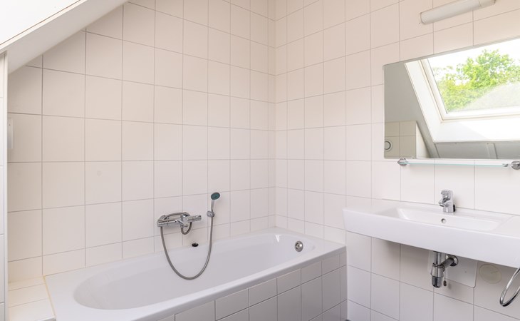 De eerste verdieping heeft 3 slaapkamers en 1 badkamer. In alle slaapkamers staan 2 éénpersoons boxsprings. De badkamer beschikt over een ligbad, inloopdouche en een wastafel. Ook is er een apart toilet aanwezig.