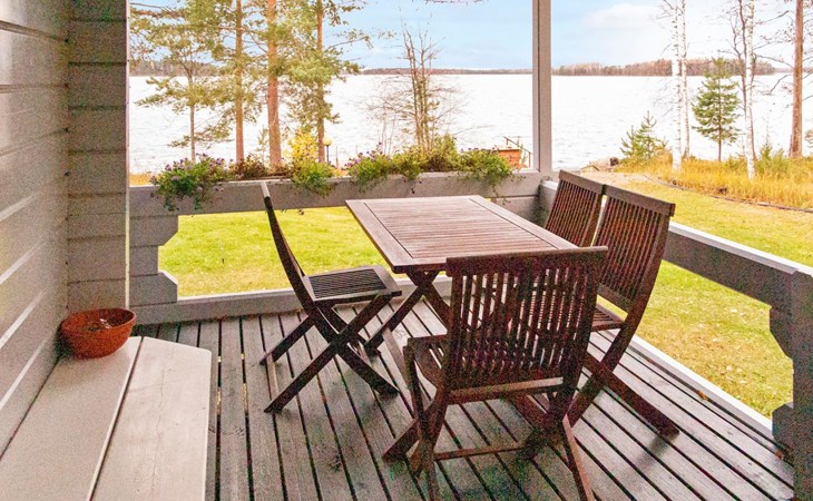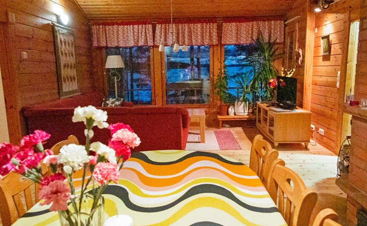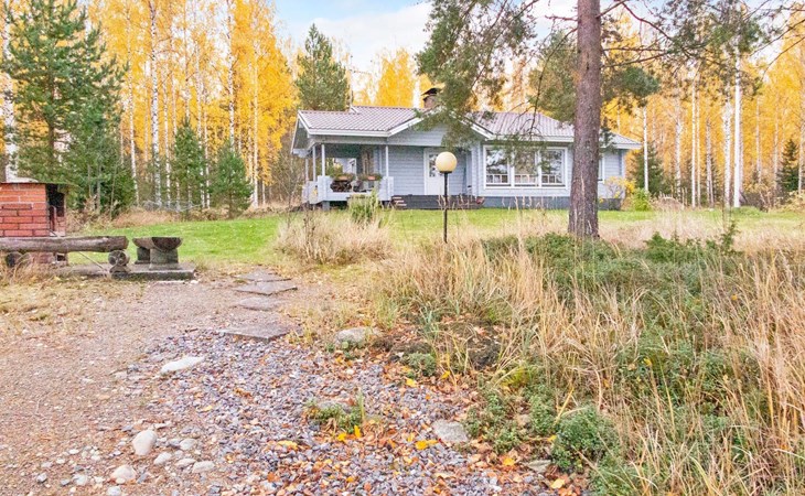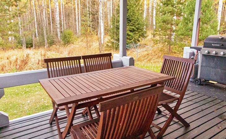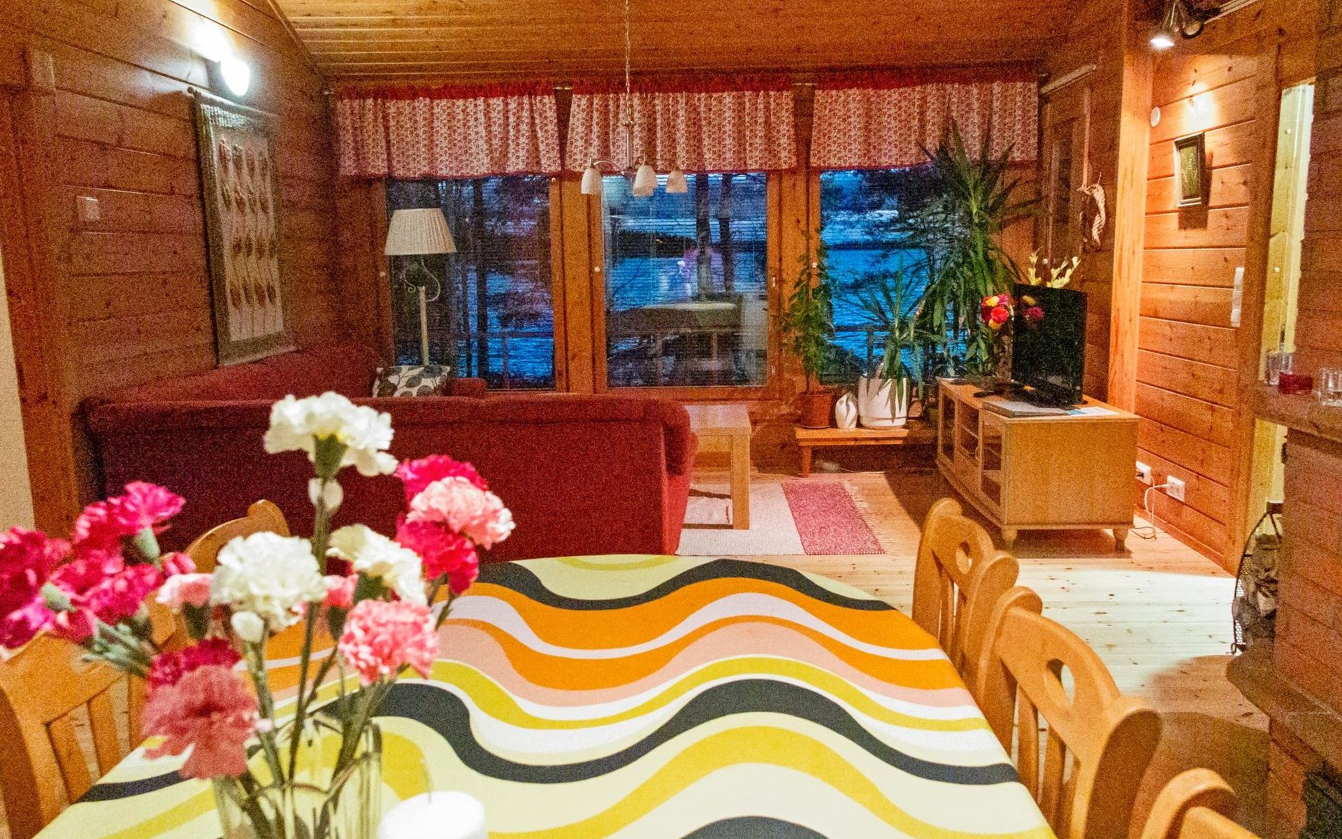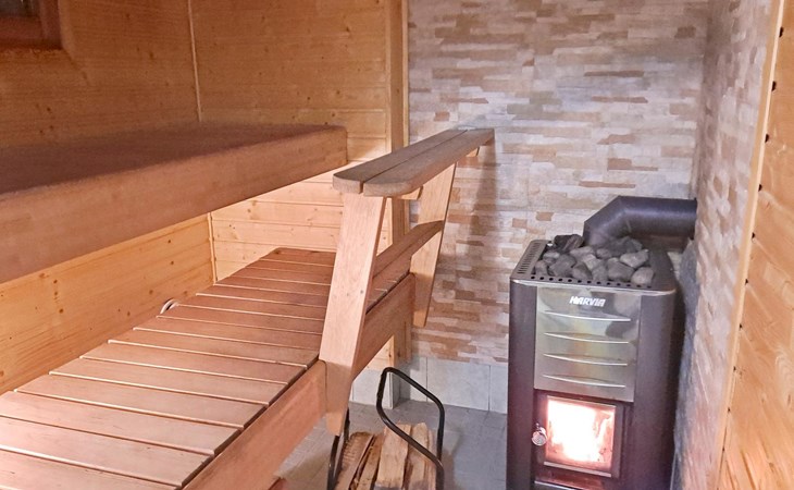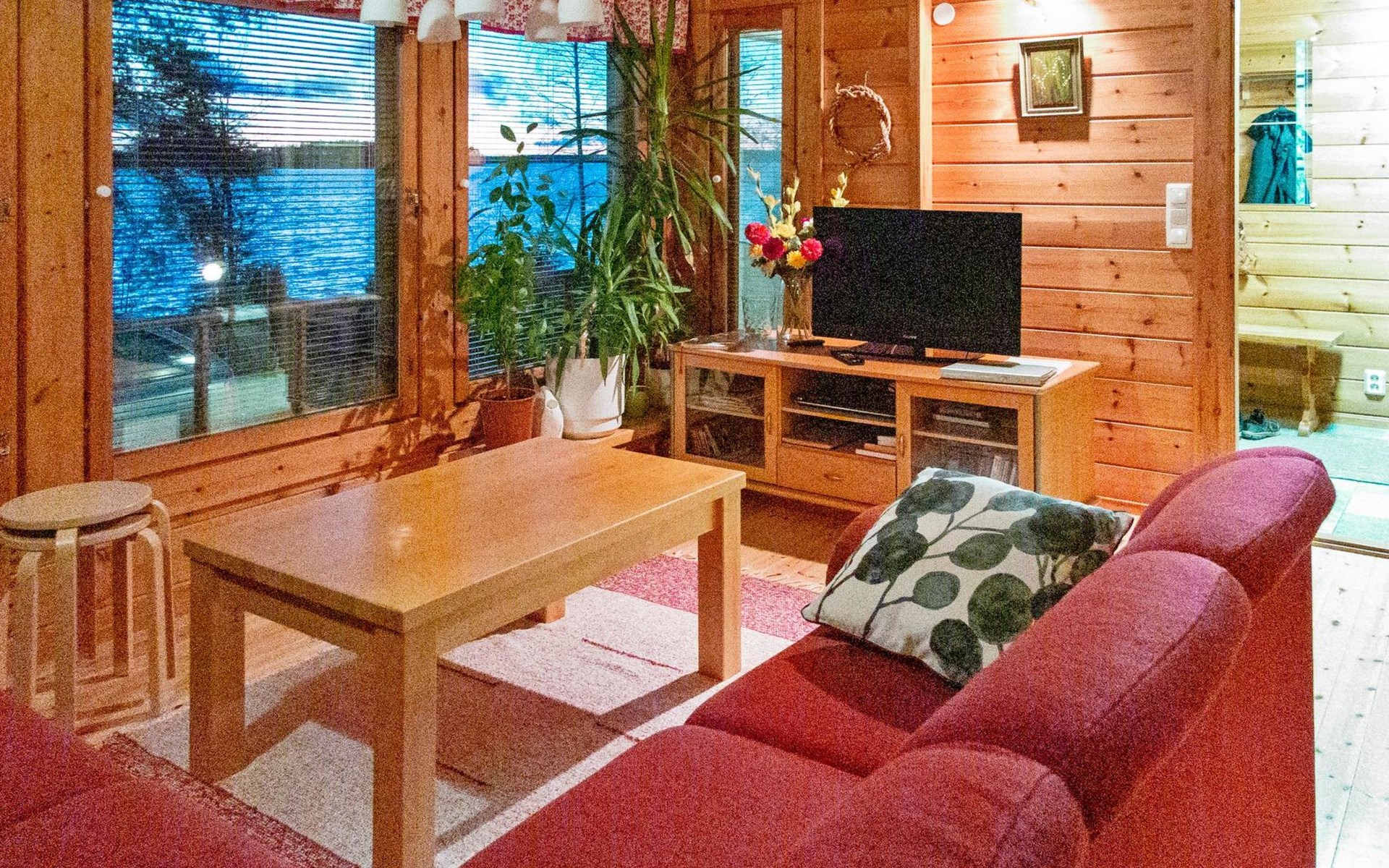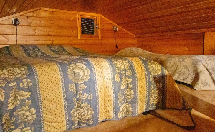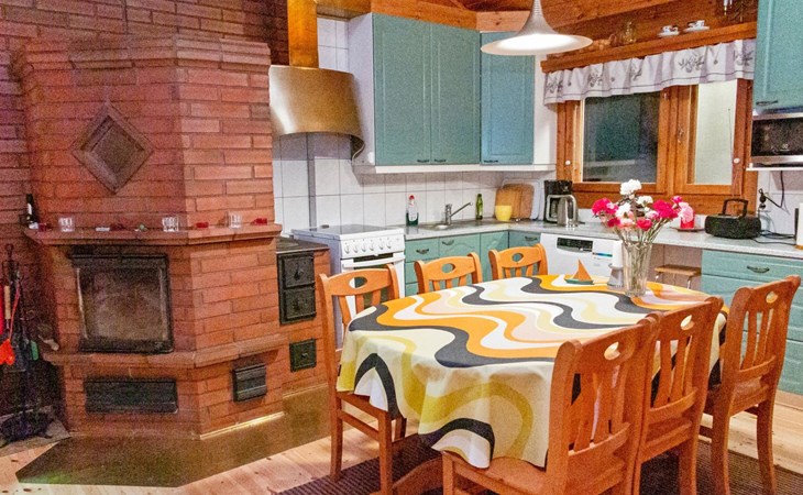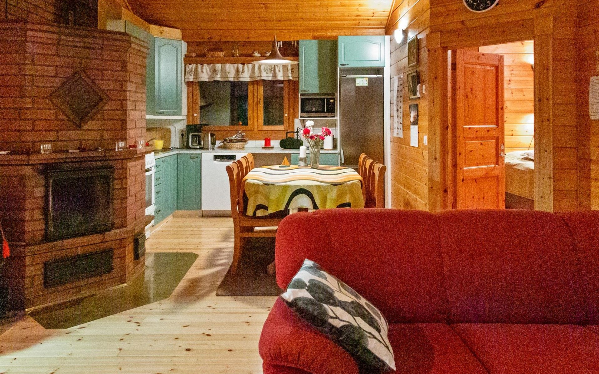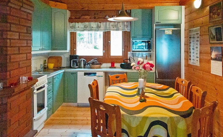 Log cabin 1999, living room/kitchen, 2 bedrooms with double bed in one and single beds in another, dressing room, washroom, sauna, drying room, foyer, open veranda. Sleeping loft (sloping ceilings, maximum height 130 cm) 2 mattresses (other 80 cm wide and other 140 cm wide).