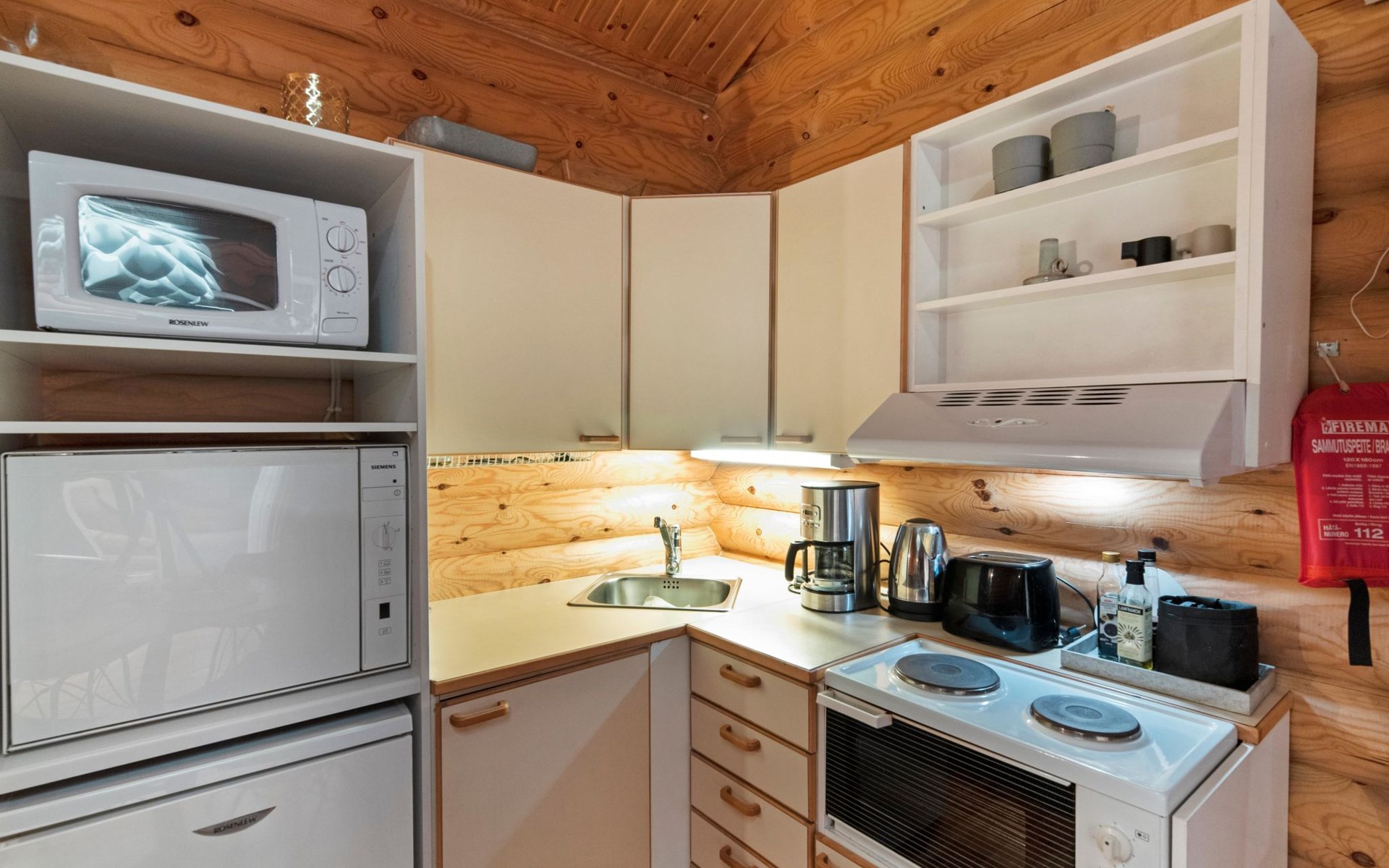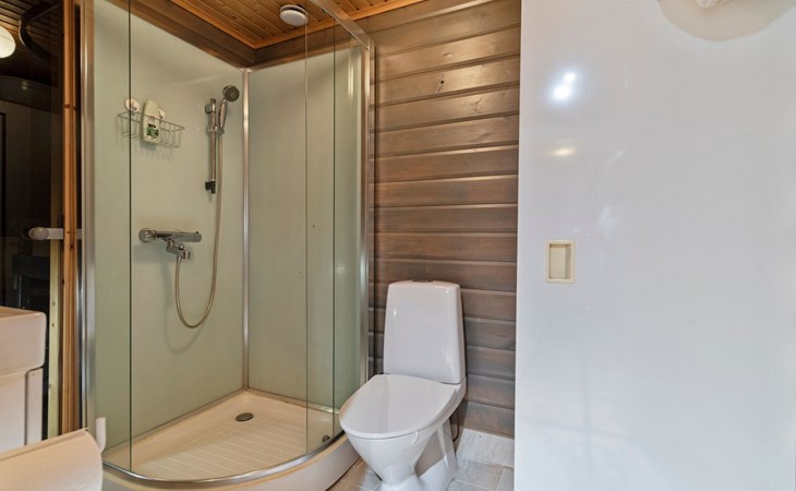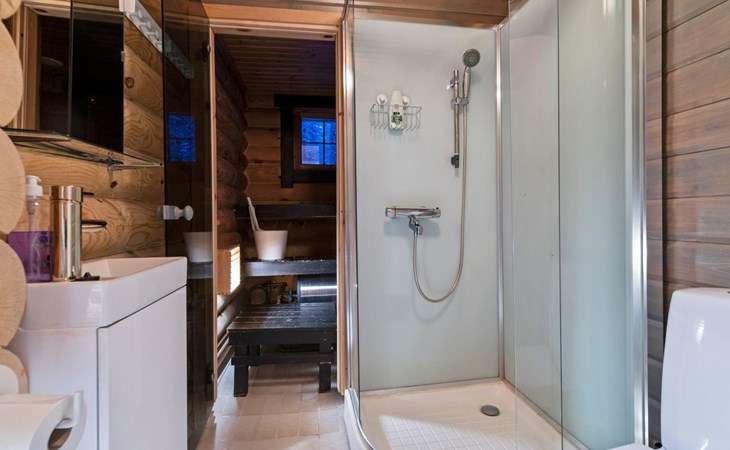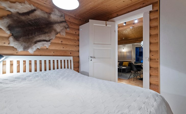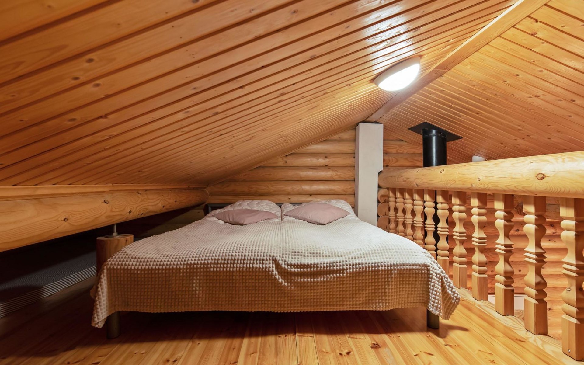 Livingroom/kitchen, bedroom with double bed, loft (16 m², low room height) with double bed. Also electric sauna, washing room, toilet.