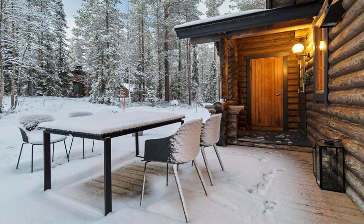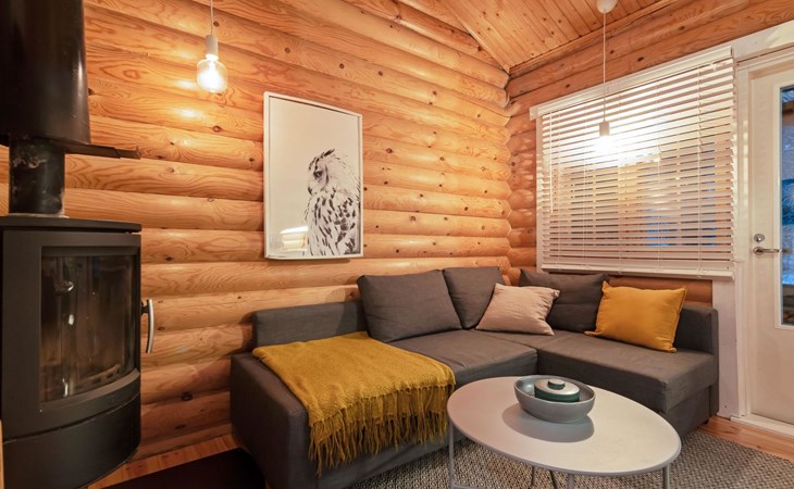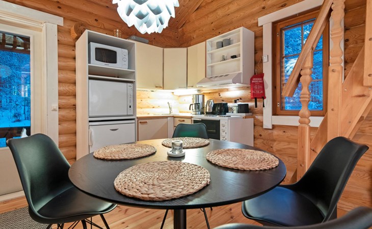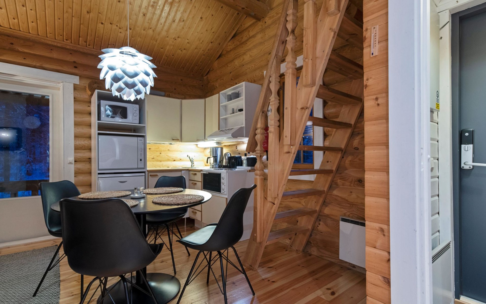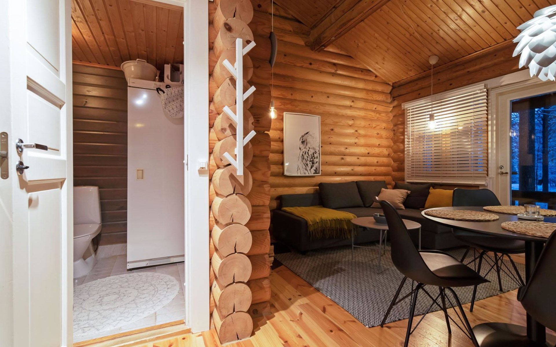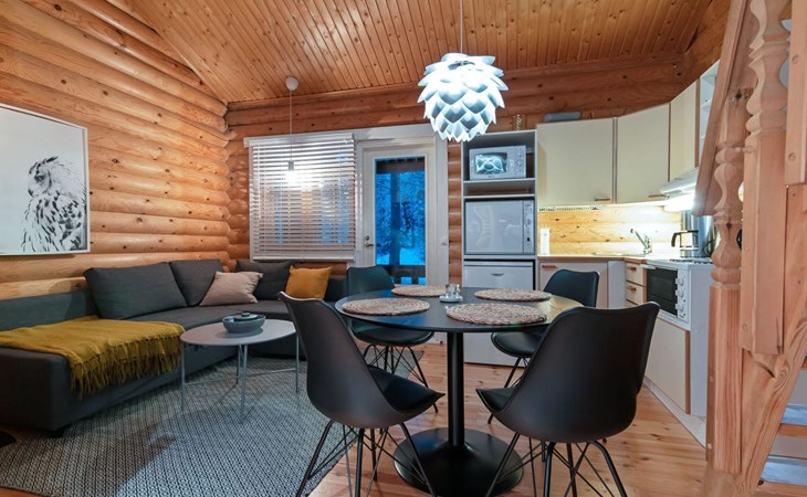 Livingroom/kitchen, bedroom with double bed, loft (16 m², low room height) with double bed. Also electric sauna, washing room, toilet.