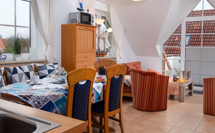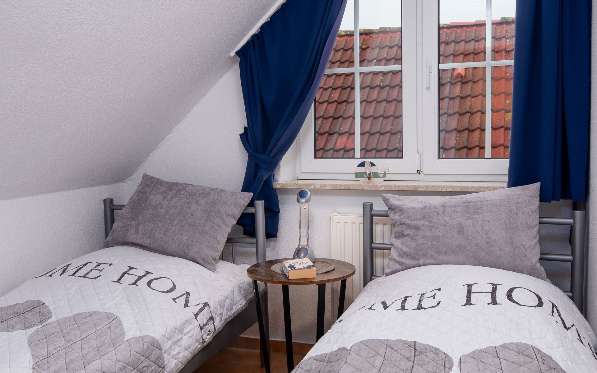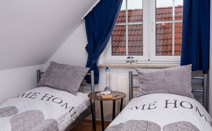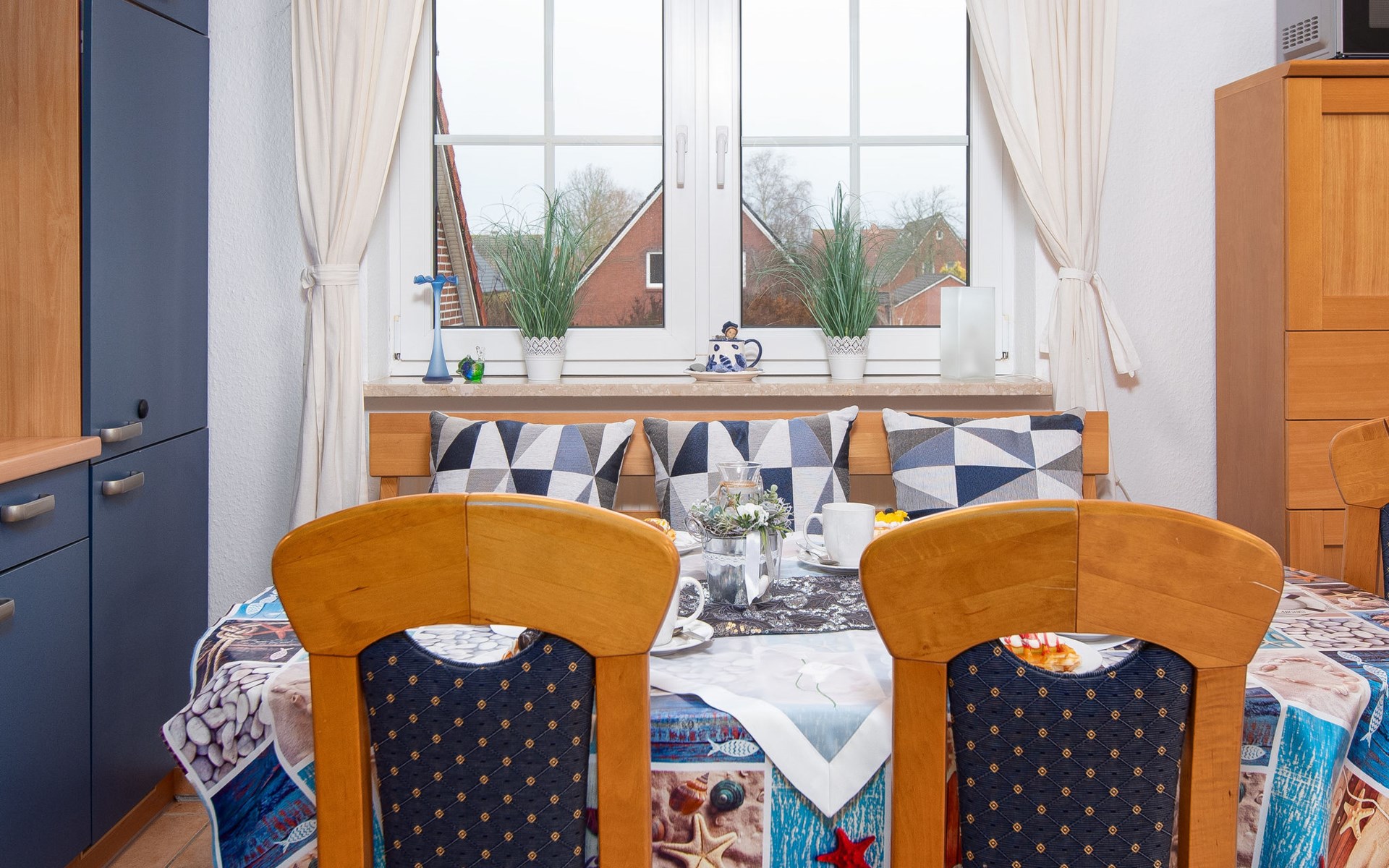 Rijtjeshuis van 2 verdiepingen. Aan de rand van de plaats, 2 km van het centrum van Norden, 3 km van zee, 3 km van het strand. In het huis: centrale verwarming. Parkeerplaats bij het huis. Supermarkt 1.5 km, restaurant 800 m, bakkerij 1.5 km, café 1.5 km, voetgangersgebied 2 km, fietsverhuur 150 m, openluchtzwembad 11 km, overdekt zwembad 2.5 km. Golfterrein (18 holes) 6.5 km, surfschool 3 km, tennishal 1 km, midgetgolf 2.5 km, sportcentrum 2.5 km, kinderspeelplaats 800 m.