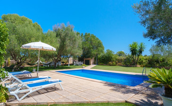 Mooi, gezellige villa "Sa Teulada", gerenoveerd. Buiten de plaats, 4 km van het centrum van Santa Margalida, rustige, zonnige ligging, 11 km van zee, te midden van groen. Voor alleengebruik: wild terrein, mooie tuin, openluchtzwembad hoekig (8 x 4 m, 100 - 170 cm diepte, seizoensgebonden beschikbaarheid: 01.Jan. - 31.Dec.). Buitendouche, patio, prieel, prieel, tuinmeubelen, barbecue, onderhoud zwembad door de eigenaar/tuinman. In het huis: air-conditioning. Supermarkt 3.7 km, restaurant 3.5 km, centrum te voet bereikbaar in 55 minuten, bushalte "Santa Margarita" 4 km, veerboot "Port Alcúdia" 21.2 km, zandstrand "Son Bauló" 10 km. Jachthaven 10 km, golfterrein (18 holes) 24 km, manege 9.5 km, wandelroutes, vanaf het huis, fietspad 500 m. Attracties in de buurt: Can Picafort-Son Serra-Santa Margarita, Palma de Mallorca 53 km, Hidropark Aquatic Park 20 km, Mallorca Fashion Outlet % Cinemas 45 km. Wandelgebied Finca Pública Son Real, Parc Natural de Farrutx, S'Albufera de Mallorca. Auto noodzakelijk. Het objekt is geschikt voor 4 volwassenen. De eigenaar accepteert geen jeugdgroepen. 47 km van het huis. Vliegveld.