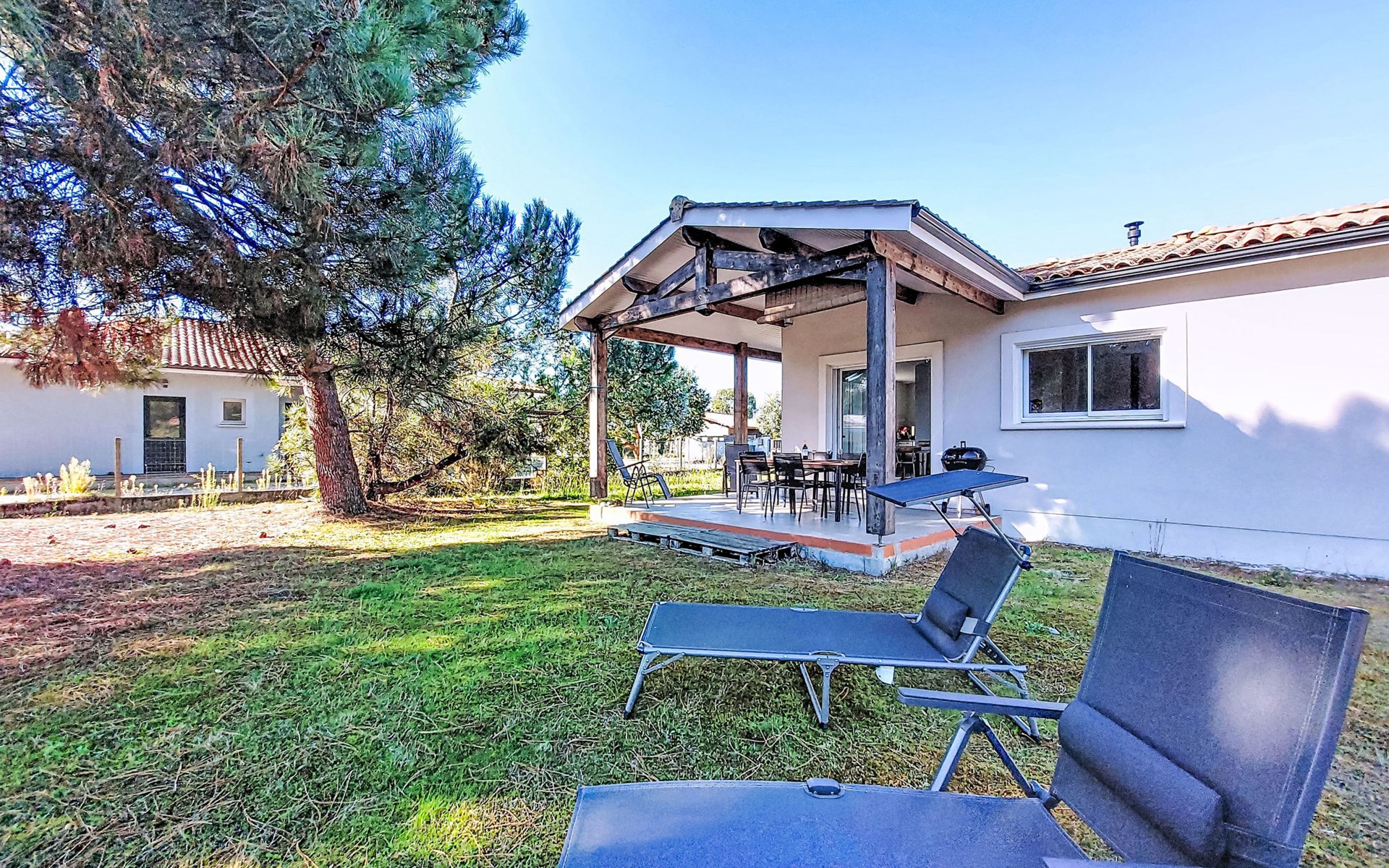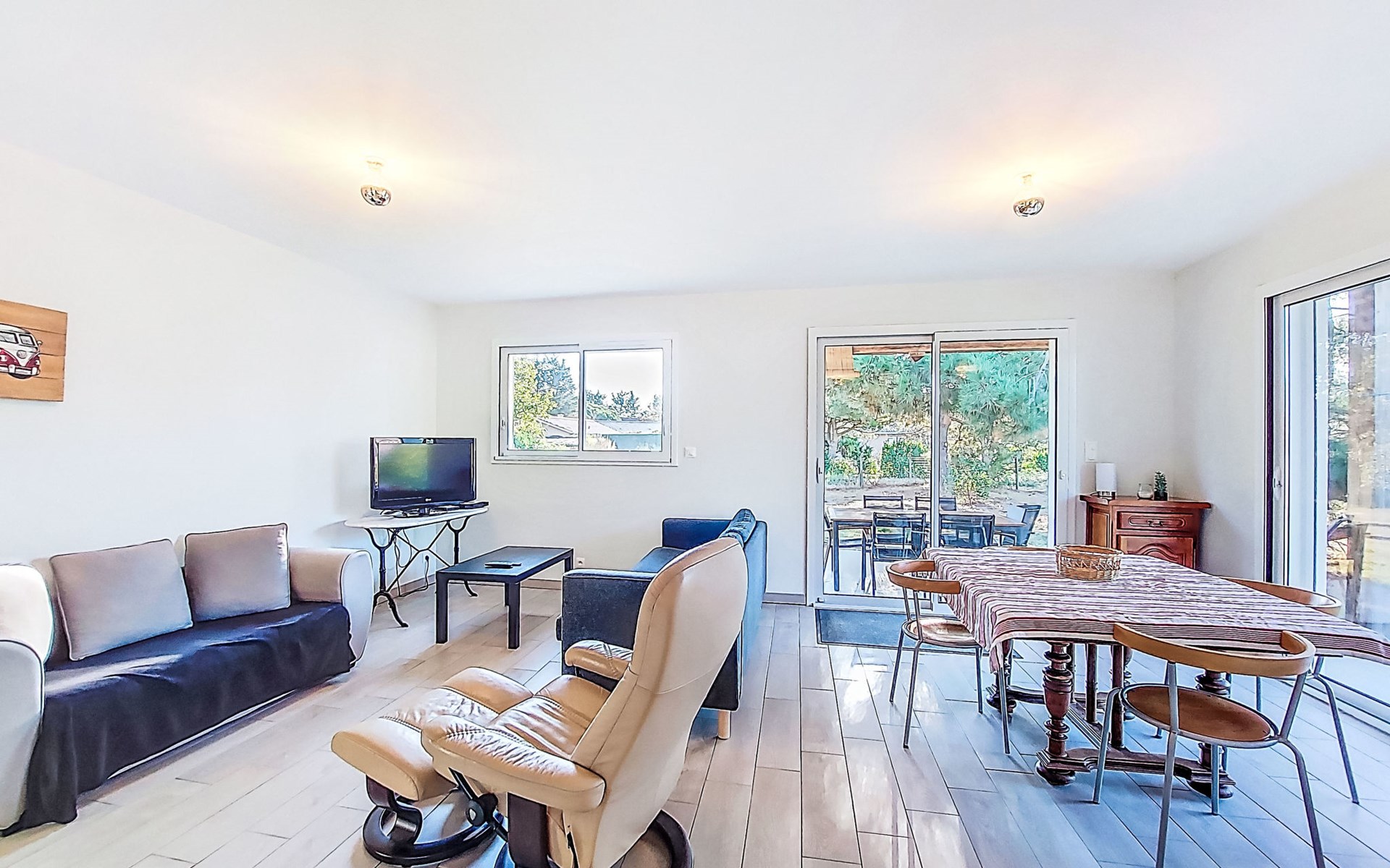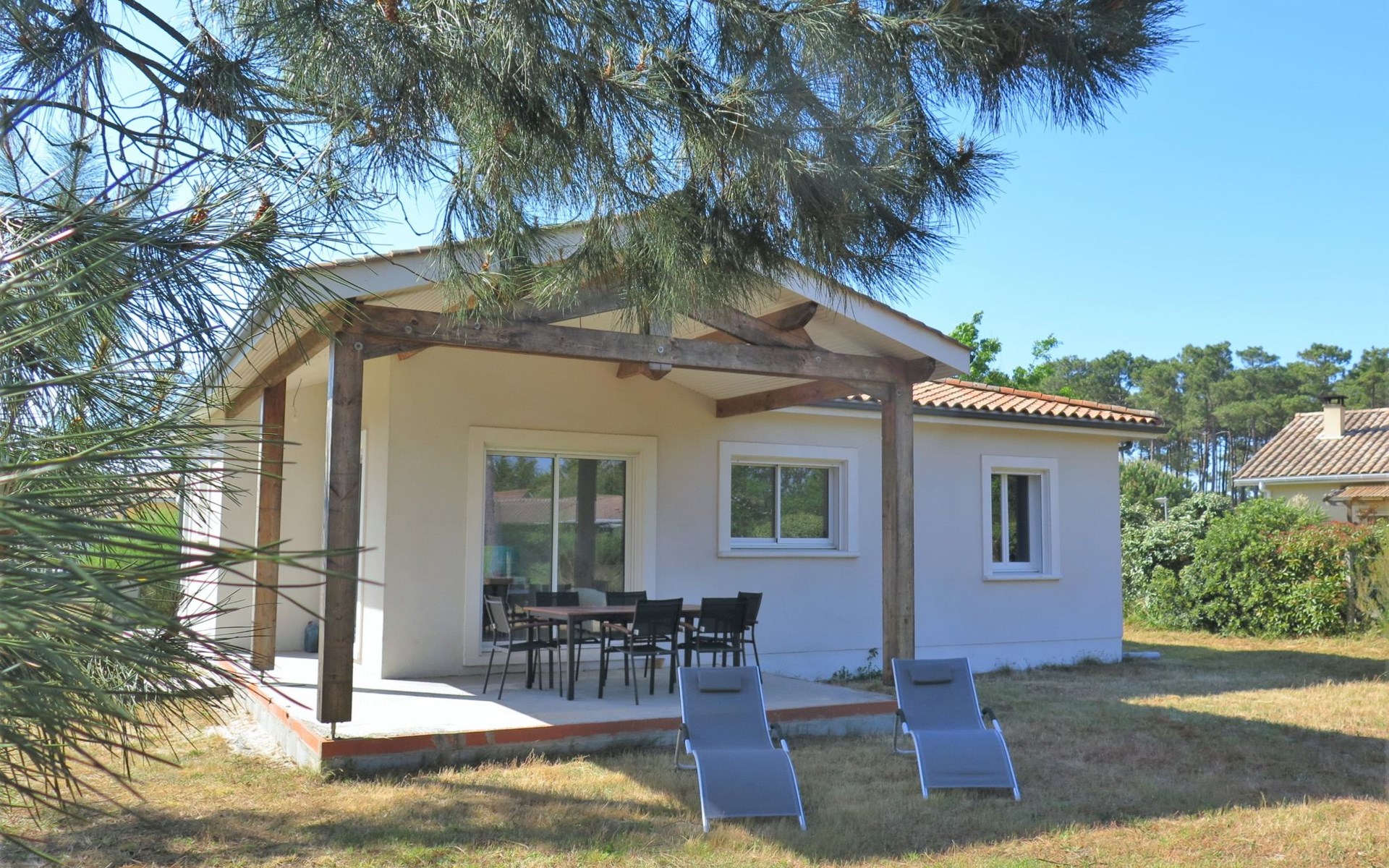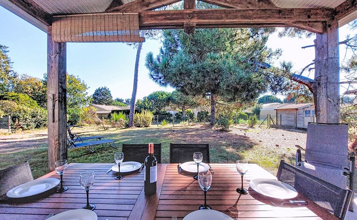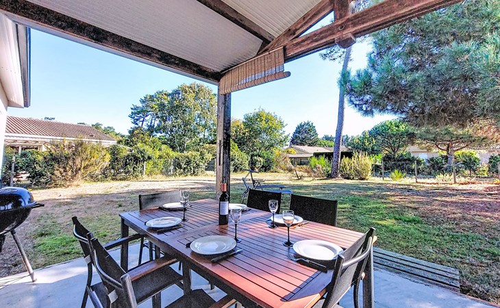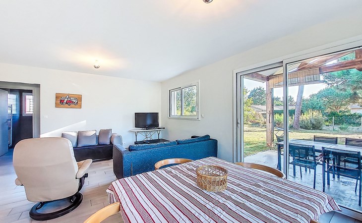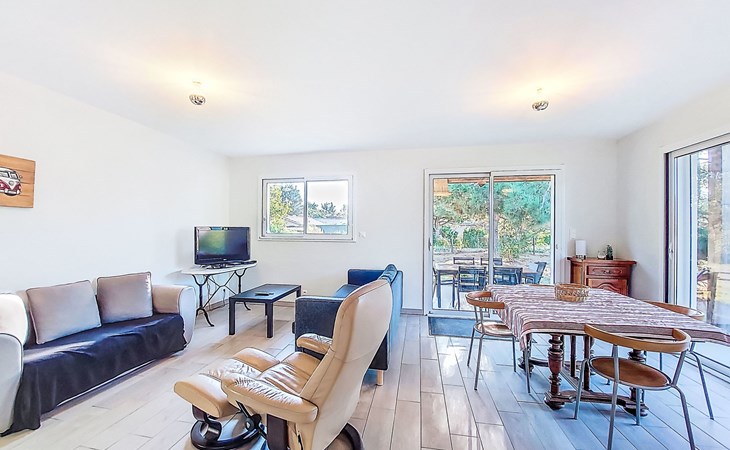 Eengezinswoning. In de wijk Le Hameau des Pins, 1 km van het centrum van Montalivet, 7.5 km van het centrum van Vendays, 19 km van het centrum van Soulac-sur-Mer, in een woonwijk, 1.4 km van zee, 1.4 km van het strand, aan een doodlopende weg. Voor alleengebruik: wild terrein 800 m2 (omheind), parkeerplaats bij het huis op het terrein. Winkel 1 km, supermarkt 1.2 km, bushalte "Av. De l'Europe/Montalivet" 650 m, zandstrand "Montalivet" 1.4 km, meer (zwemmen) "Hourtin" 30 km. Attracties in de buurt: Lacanau 50 km, Bordeaux 80 km.