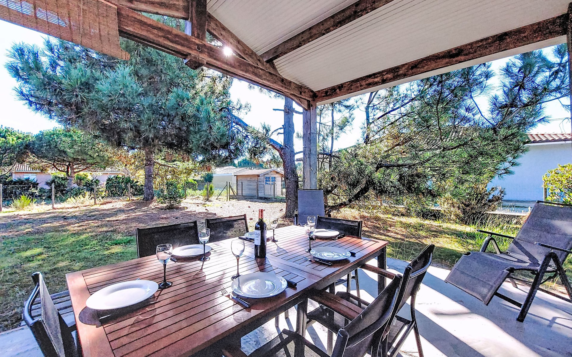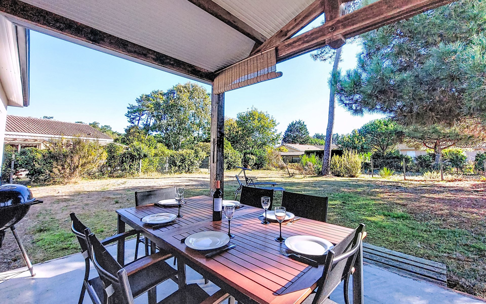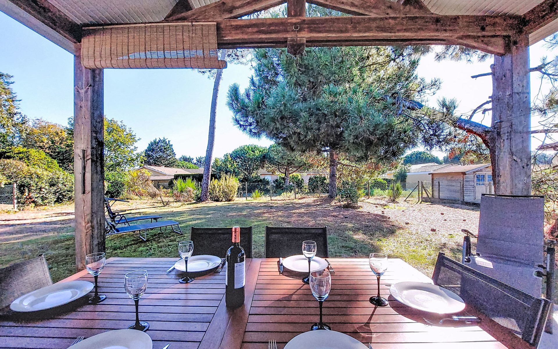 Eengezinswoning. In de wijk Le Hameau des Pins, 1 km van het centrum van Montalivet, 7.5 km van het centrum van Vendays, 19 km van het centrum van Soulac-sur-Mer, in een woonwijk, 1.4 km van zee, 1.4 km van het strand, aan een doodlopende weg. Voor alleengebruik: wild terrein 800 m2 (omheind), parkeerplaats bij het huis op het terrein. Winkel 1 km, supermarkt 1.2 km, bushalte "Av. De l'Europe/Montalivet" 650 m, zandstrand "Montalivet" 1.4 km, meer (zwemmen) "Hourtin" 30 km. Attracties in de buurt: Lacanau 50 km, Bordeaux 80 km.