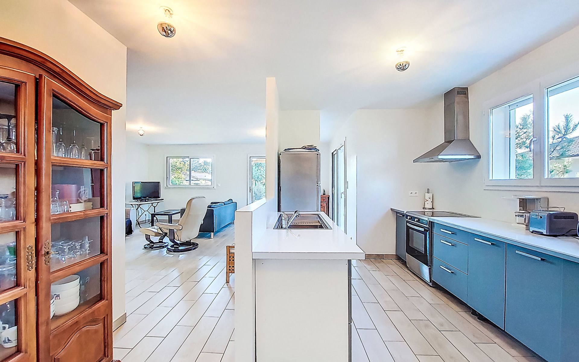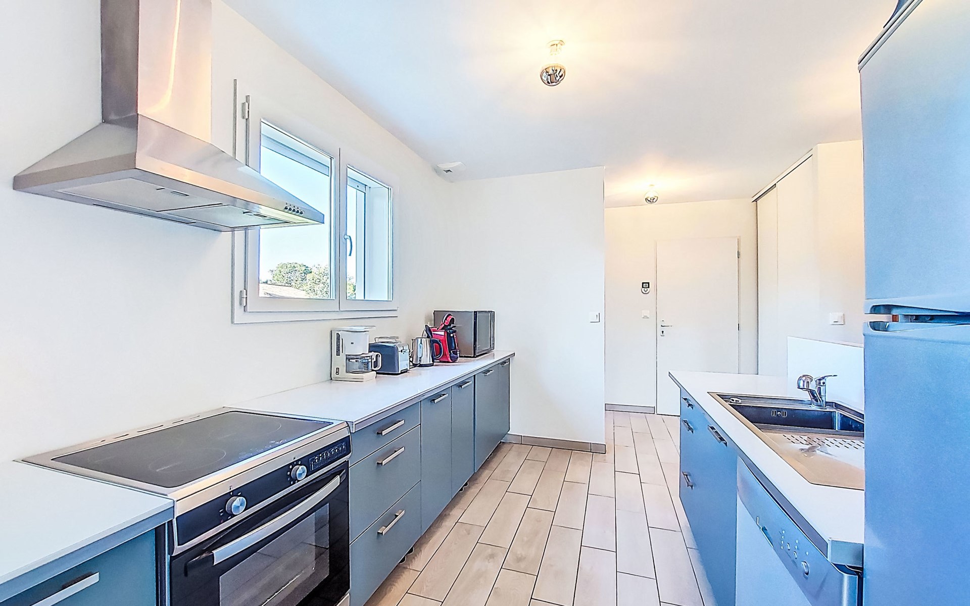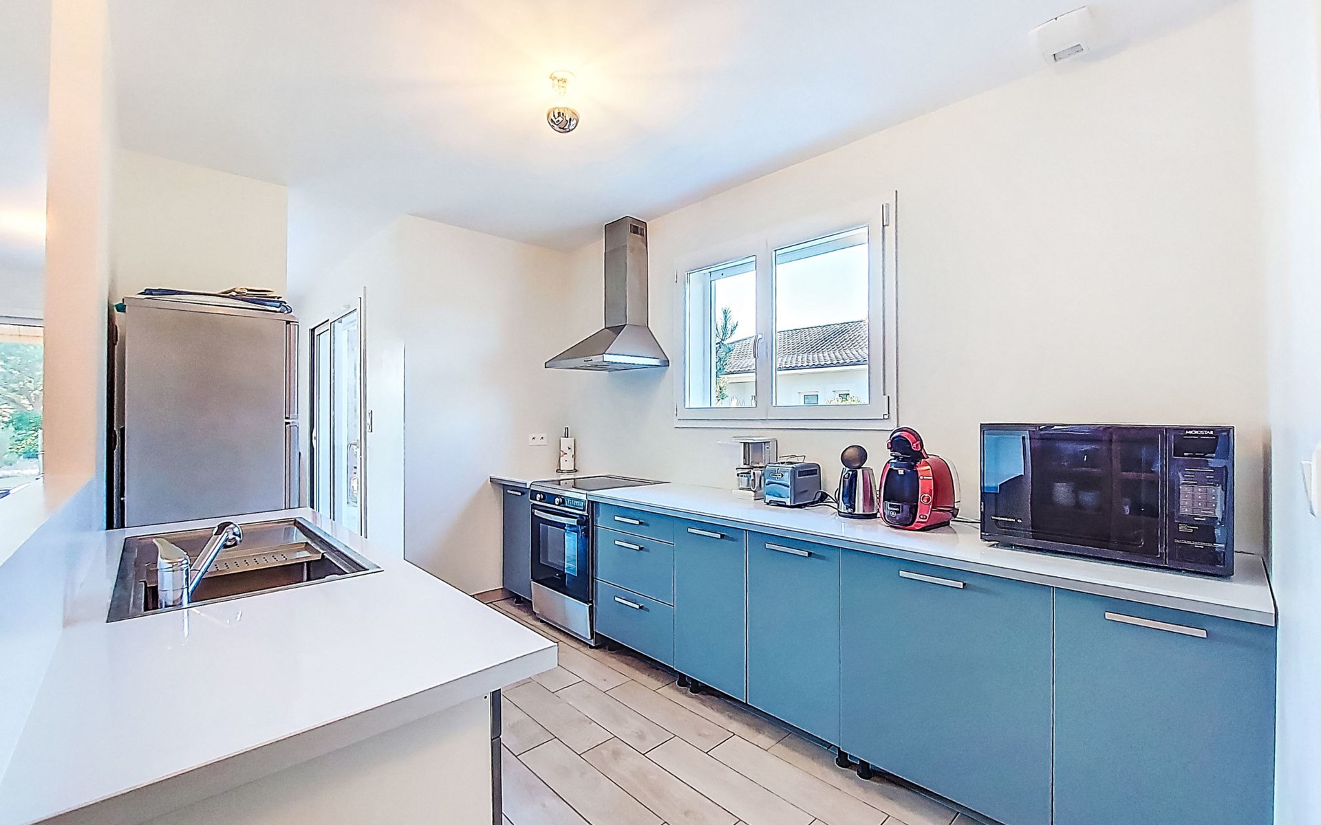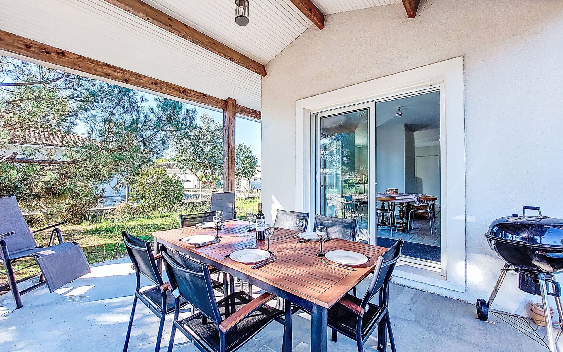 Eengezinswoning. In de wijk Le Hameau des Pins, 1 km van het centrum van Montalivet, 7.5 km van het centrum van Vendays, 19 km van het centrum van Soulac-sur-Mer, in een woonwijk, 1.4 km van zee, 1.4 km van het strand, aan een doodlopende weg. Voor alleengebruik: wild terrein 800 m2 (omheind), parkeerplaats bij het huis op het terrein. Winkel 1 km, supermarkt 1.2 km, bushalte "Av. De l'Europe/Montalivet" 650 m, zandstrand "Montalivet" 1.4 km, meer (zwemmen) "Hourtin" 30 km. Attracties in de buurt: Lacanau 50 km, Bordeaux 80 km.