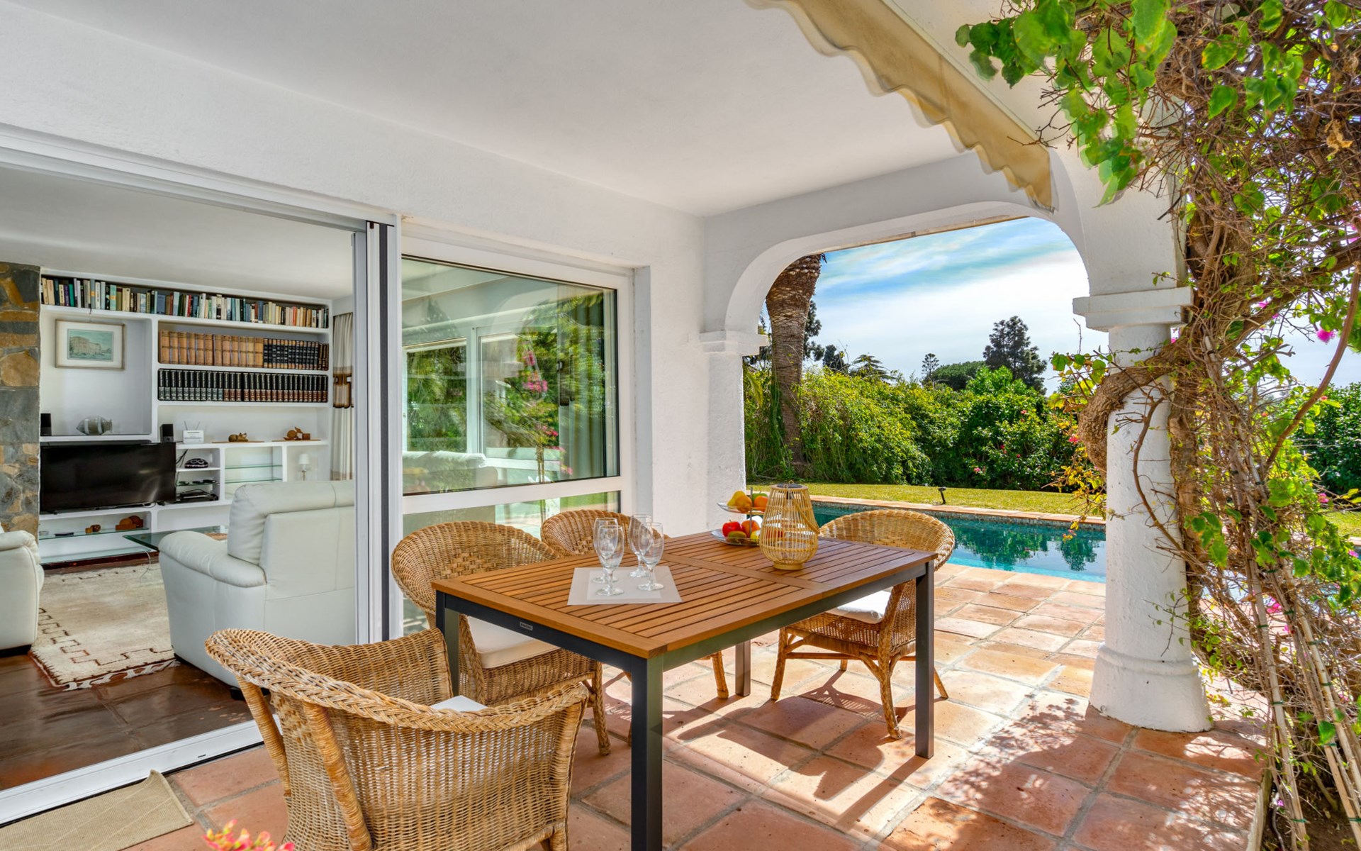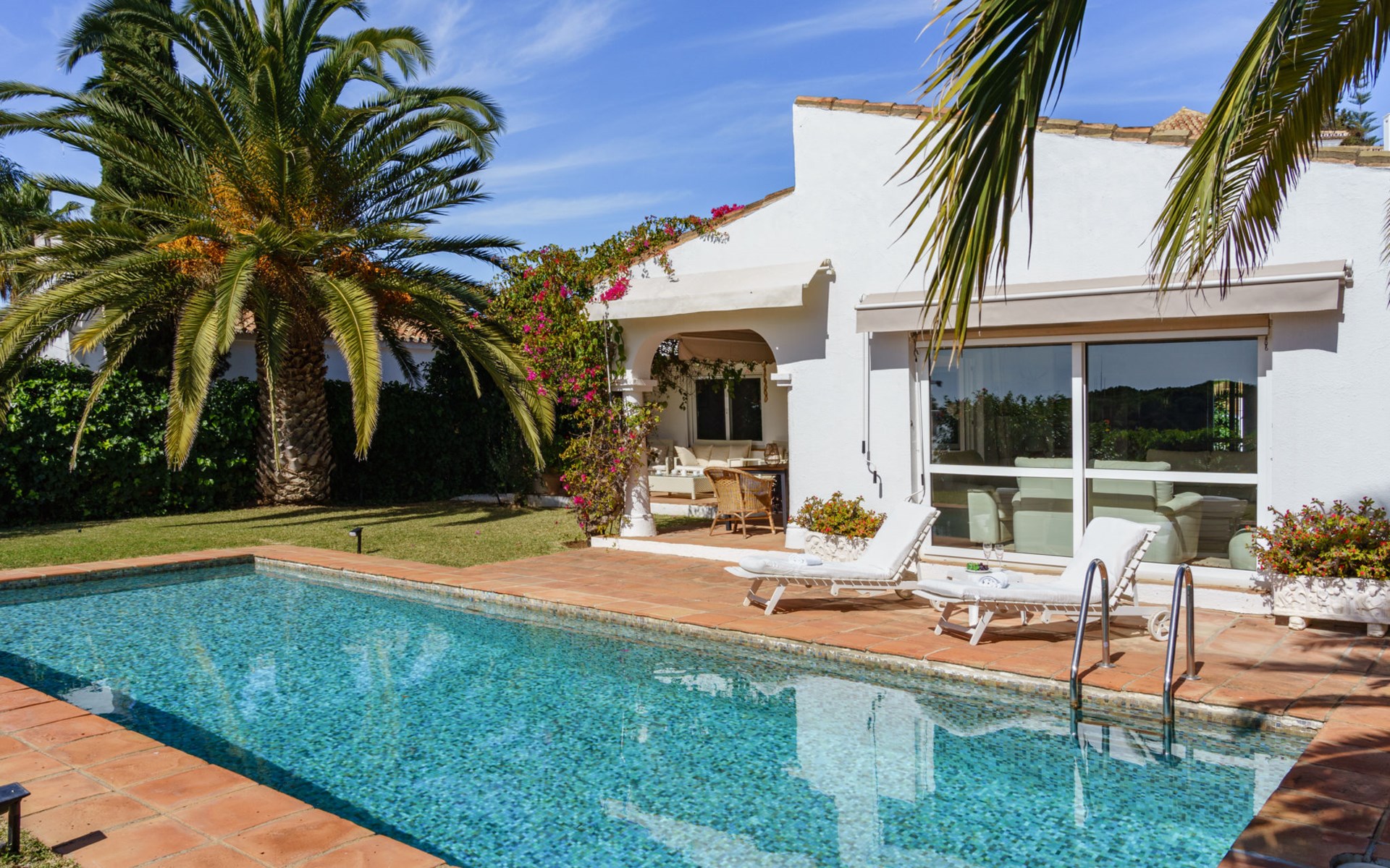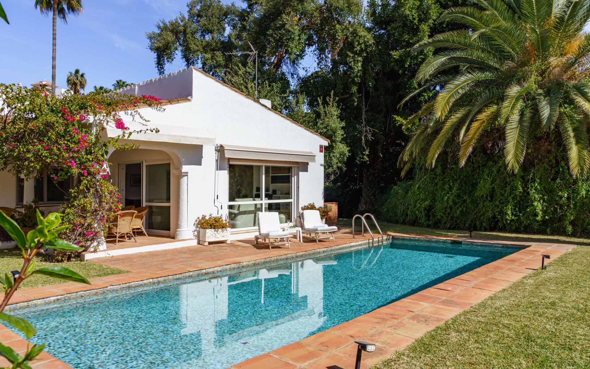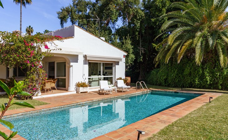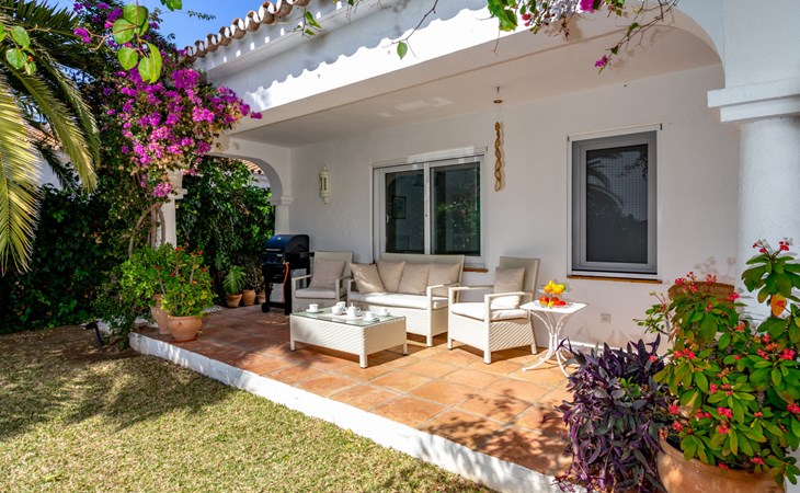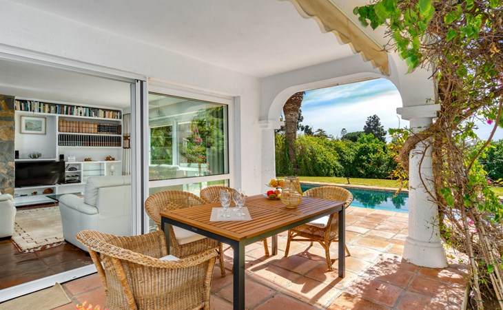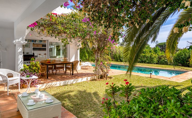 Elviria 13 km van Marbella Centro: Zeer mooi, comfortabel huis "Villa Alcornoque". 1.6 km van zee. Voor alleengebruik: terrein 1.300 m2, mooie tuin ter ontspanning, openluchtzwembad hoekig (10 x 4 m, 75 - 200 cm diepte, seizoensgebonden beschikbaarheid: 01.Jan. - 31.Dec.). Onderhoud zwembad door de eigenaar/tuinman. Parkeerplaats bij het huis. Bushalte "Mancomunidad Municipal" 700 m. De eigenaar accepteert geen jeugdgroepen. Vliegveld 45 km van het huis.
