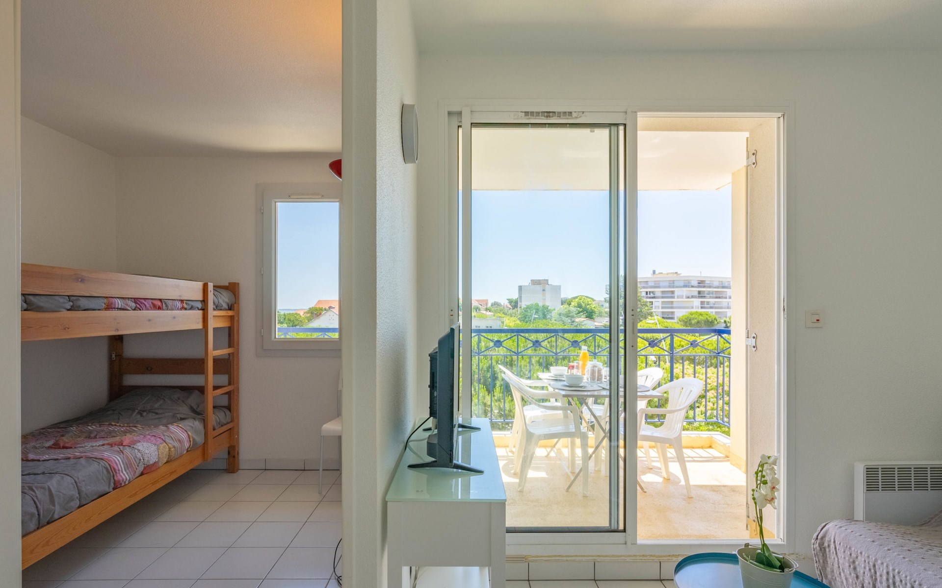 Vaux sur Mer 2 km van Royan: Groot residentie "Parc de Pontaillac", van 4 verdiepingen. 215 appartementen in de woning. In de wijk Pontaillac, 2 km van het centrum van Vaux sur Mer, 2.3 km van het centrum van Royan, drukke ligging in een woonwijk, 200 m van zee, 200 m van het strand. Voor medegebruik: openluchtzwembad hoekig beveiligd (15 x 7 m, seizoensgebonden beschikbaarheid: 01.Jul. - 31.Aug.). In het huis: lift, bergruimte voor fietsen. Openbare parkeerplaatsen in de straat. Winkel 200 m, supermarkt 1.4 km, restaurant, bar, bakkerij, café 200 m, bushalte "Porte Océane" 100 m, station "Royan" 3.2 km, zandstrand "Pontaillac" 200 m, park "Luna Park (Juillet-Août)" 17 km, overdekt zwembad 3 km, thermaalbad "Thalassothérapie Thalazur Royan" 1.7 km, meer Métairie - Royan 1.5 km. Jachthaven 2.4 km, golfterrein (18 holes) 5.5 km, surfschool 200 m, zeilschool 2.5 km, tennis 2 km, tennishal 2 km, midgetgolf 550 m, manege 6 km, fietspad 100 m. Attracties in de buurt: Zoo de La Palmyre 12 km, Hippodrome - La Palmyre 13 km, Aeroport La Rochelle 79 km, Aeroport Bordeaux - Merignac 110 km, Fort Boyard - Fouras 51 km, Centre aquatique Iléo - Ile d'Oléron 47 km. Vergelijkbare accommodaties kunnen worden geboekt.