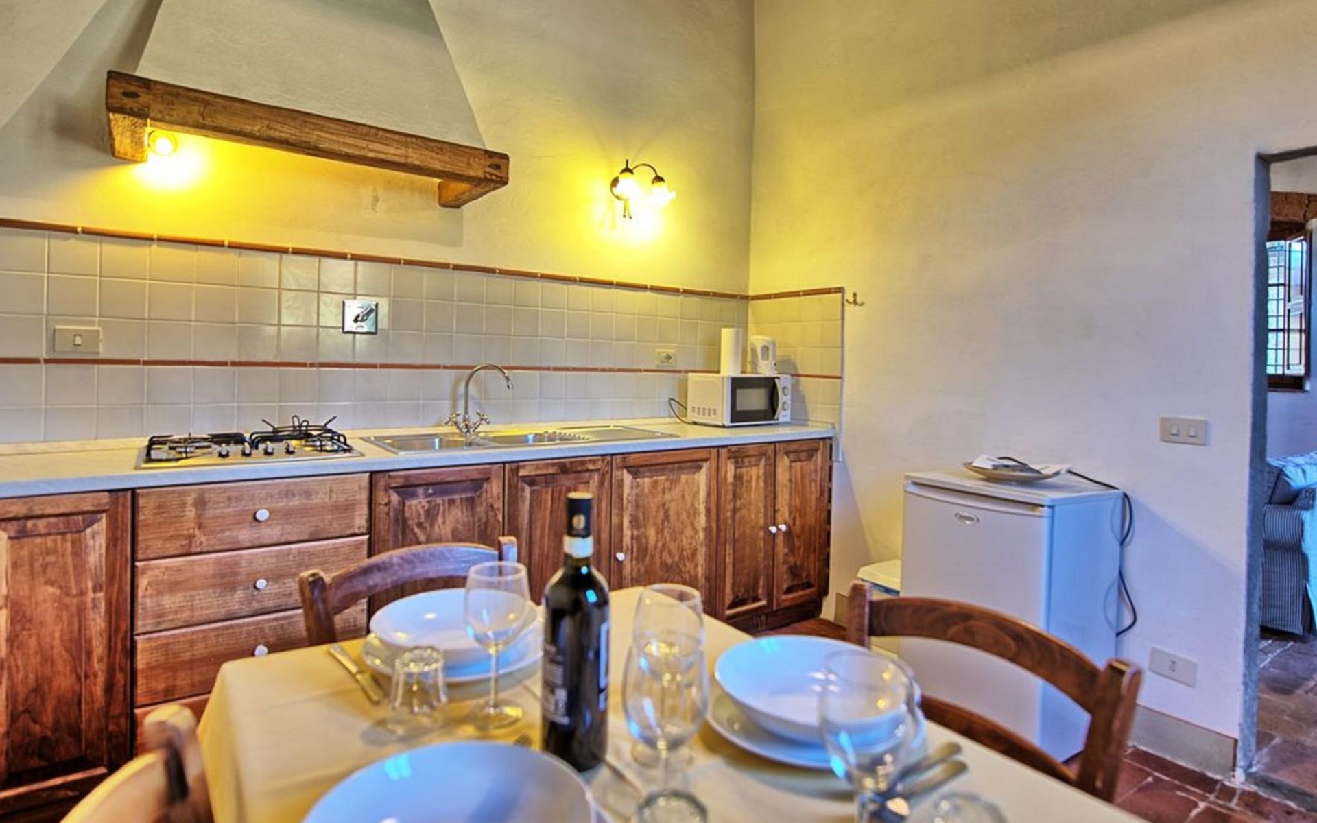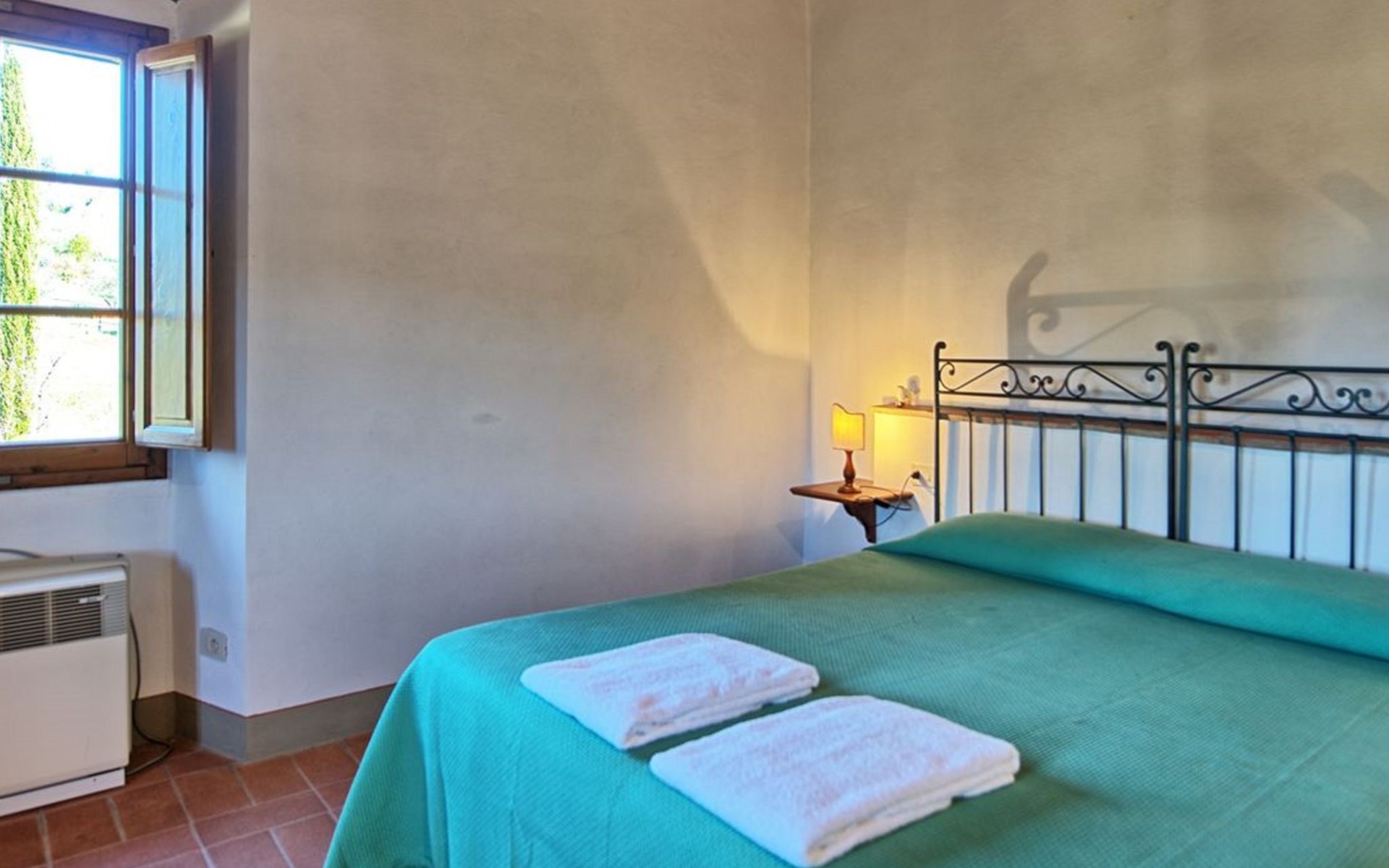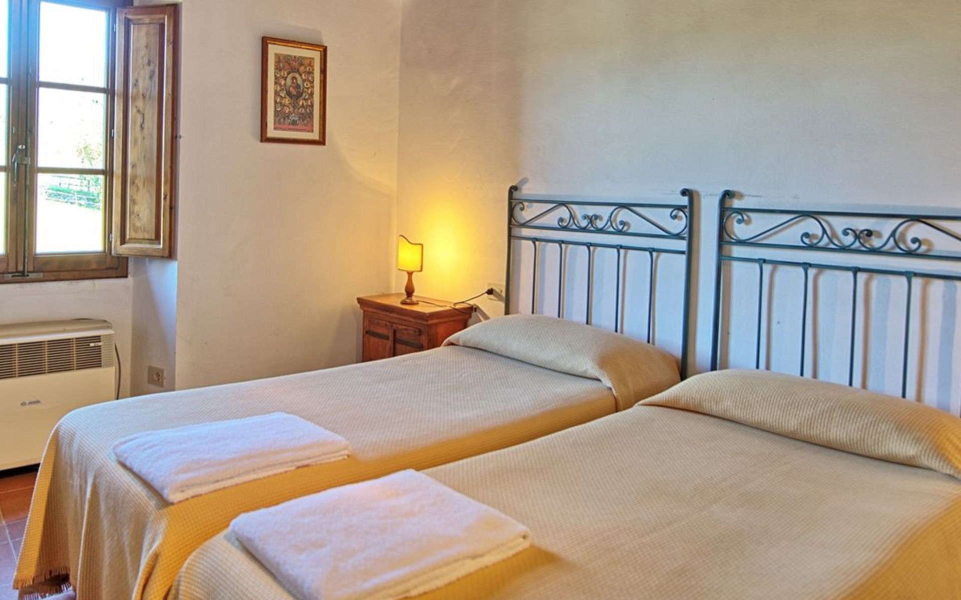 10 km van Firenze: Vakantiepark "Il Borgo", gerenoveerd in 2009. 15 appartementen in de woning. 10 km van het centrum van Firenze, 19 km van het centrum van Greve in Chianti, 70 km van het centrum van Siena, verhoogde ligging op een heuvel, te midden van groen. Voor medegebruik: tuin (omheind), openluchtzwembad (14 x 7 m, 140 cm diepte, seizoensgebonden beschikbaarheid: 03.Mei. - 27.Sep.). Buitendouche, tuinmeubelen, kinderspeelplaats. In het complex: receptie, Internet (WiFi), centrale verwarming, wasmachine (voor medegebruik), Verwarming ter plaatse te betalen, verwarming alleen beschikbaar van 01.Nov. - 07.Apr.. Toegangsweg tot aan het huis (200 m onverharde weg). Parkeerplaats bij het huis. Winkel 1 km, levensmiddelenwinkel 1 km, supermarkt 1 km, restaurant 1 km, bar 1 km, bushalte "Grassina 31 - 32" 1 km, zandstrand "Versilia" 120 km. Golfterrein (18 holes) 4 km, tennishal 7 km. Attracties in de buurt: Fiesole 14 km, San Casciano in Val di Pesa 20 km, Panzano 27 km, Outlet The Mall 30 km, Pisa 95 km. De vakantieboerderij Il Borgo di Bottaia is een oud dorpje uit de 16e eeuw, gelegen op de betoverende heuvels van Toscane rondom Florence. De vakantieboerderij is omgeven door een sfeervol panorama van olijfbomen, wijngaarden en cypressen. Het is volledig gerestaureerd met behoud van de originele kenmerken en de authentieke details van Toscaanse huizen. Borgo di Bottaia bestaat uit 15 vakantieappartementen, allemaal zelfstandig en smaakvol ingericht. Er is een grote privéparkeerplaats met videobewaking. De appartementen zijn gelegen in een grote tuin waar u kunt wandelen en ontspannen. Het prachtige panoramische zwembad met hydromassage en zonneterras ligt op een steenworp afstand van de vakantieappartementen. Wi-Fi service alleen in de buitenruimte.