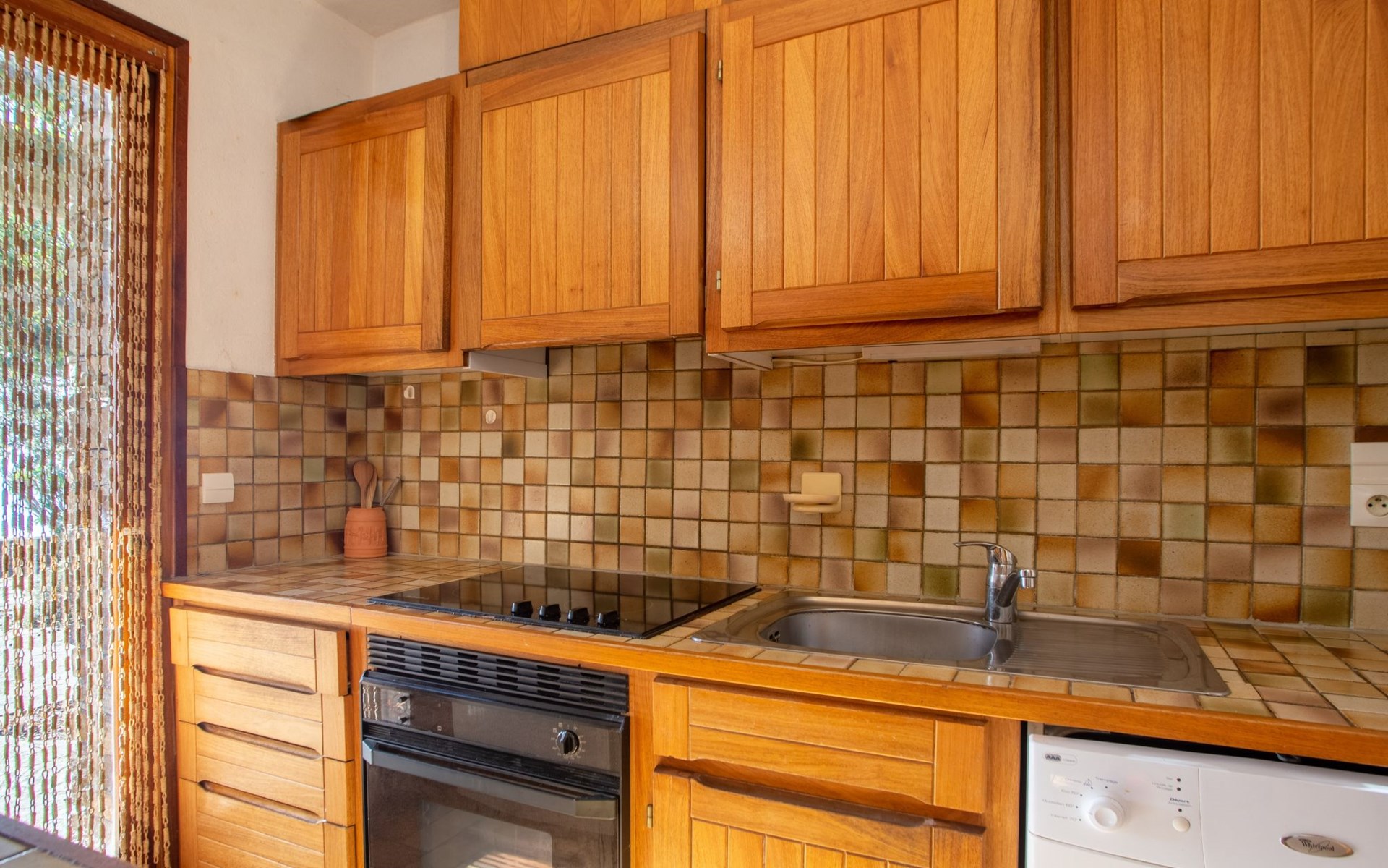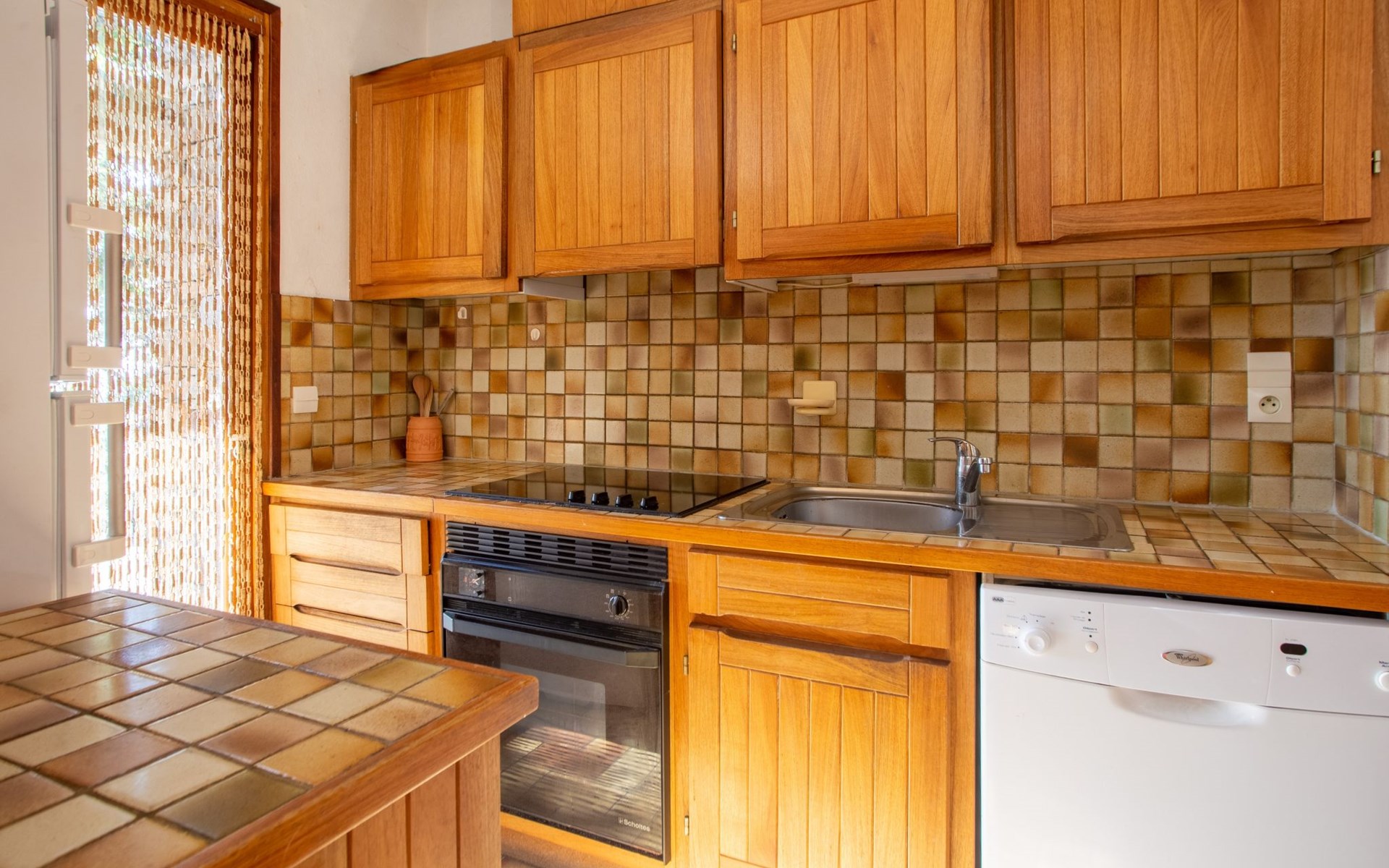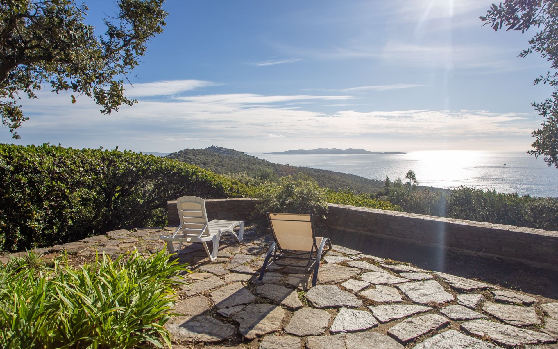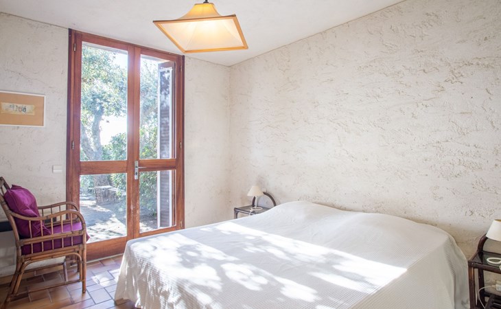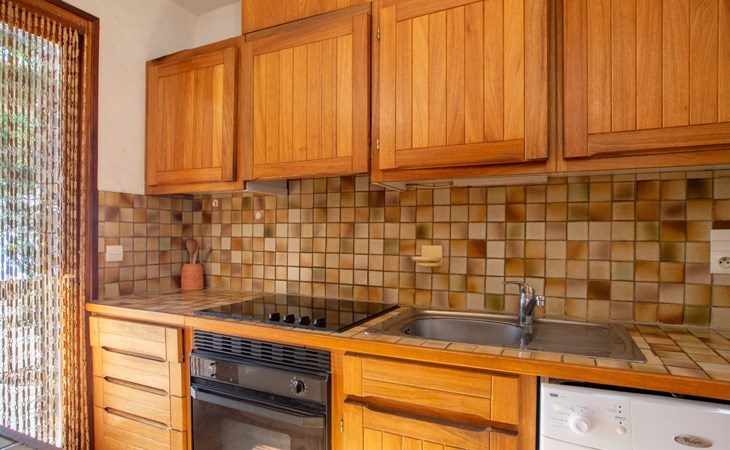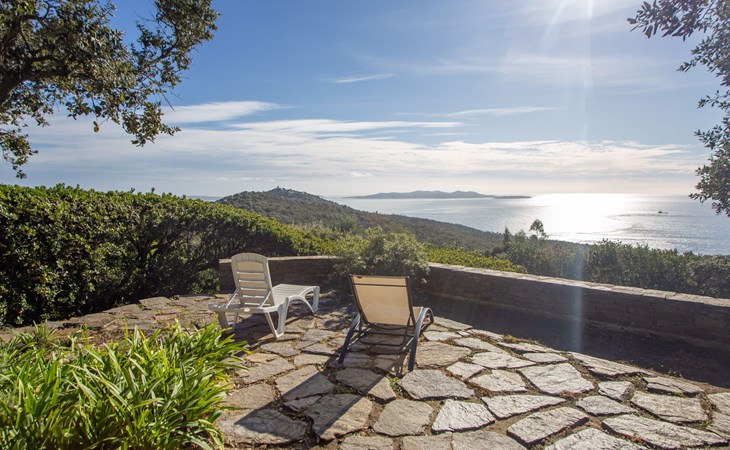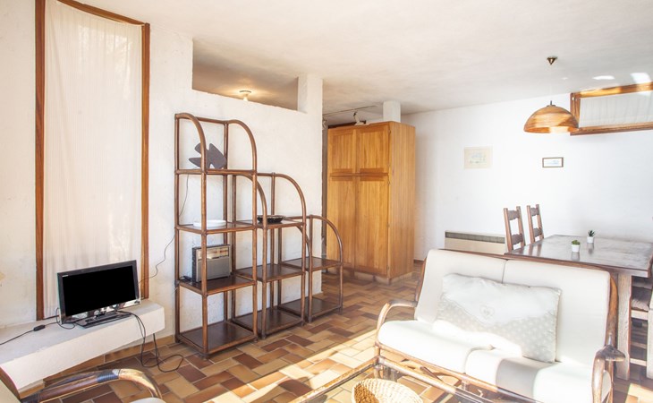 De woonwijk "Gaou Bénat" bestaat uit rijtjeshuizen en eengezinswoningen. Rijtjeshuis "Village Les Fourches". In de wijk le Village des Fourches, rustige ligging op een heuvel, 2.5 km van zee, 2.5 km van het strand. Toegangsweg tot 150 m voor aan het huis. Trappenweg (9 treden) naar het huis. Winkel 4 km, levensmiddelenwinkel 4 km, restaurant 4 km, bar 4 km, bushalte "Lavandou Gare Routière" 7 km, stenenstrand "Gaout bénat" 2.5 km. Tennis 2.5 km. Attracties in de buurt: Saint Tropez 44 km, Magic World 30 km, Parc Olbius Riquier 26 km, Le Jardin des Méditerranées 22 km. Wandelgebied Sentiers du Littoral. De sleuteloverdracht vindt plaats bij het agentschap Interhome in Le Lavandou. Auto noodzakelijk. Het huis is gelegen tegen een helling, het terras is niet omheind. Bij aankomst, een toegangsbadge moet betaald worden aan de concierge van het domein: 10€ met een borg van 20€.