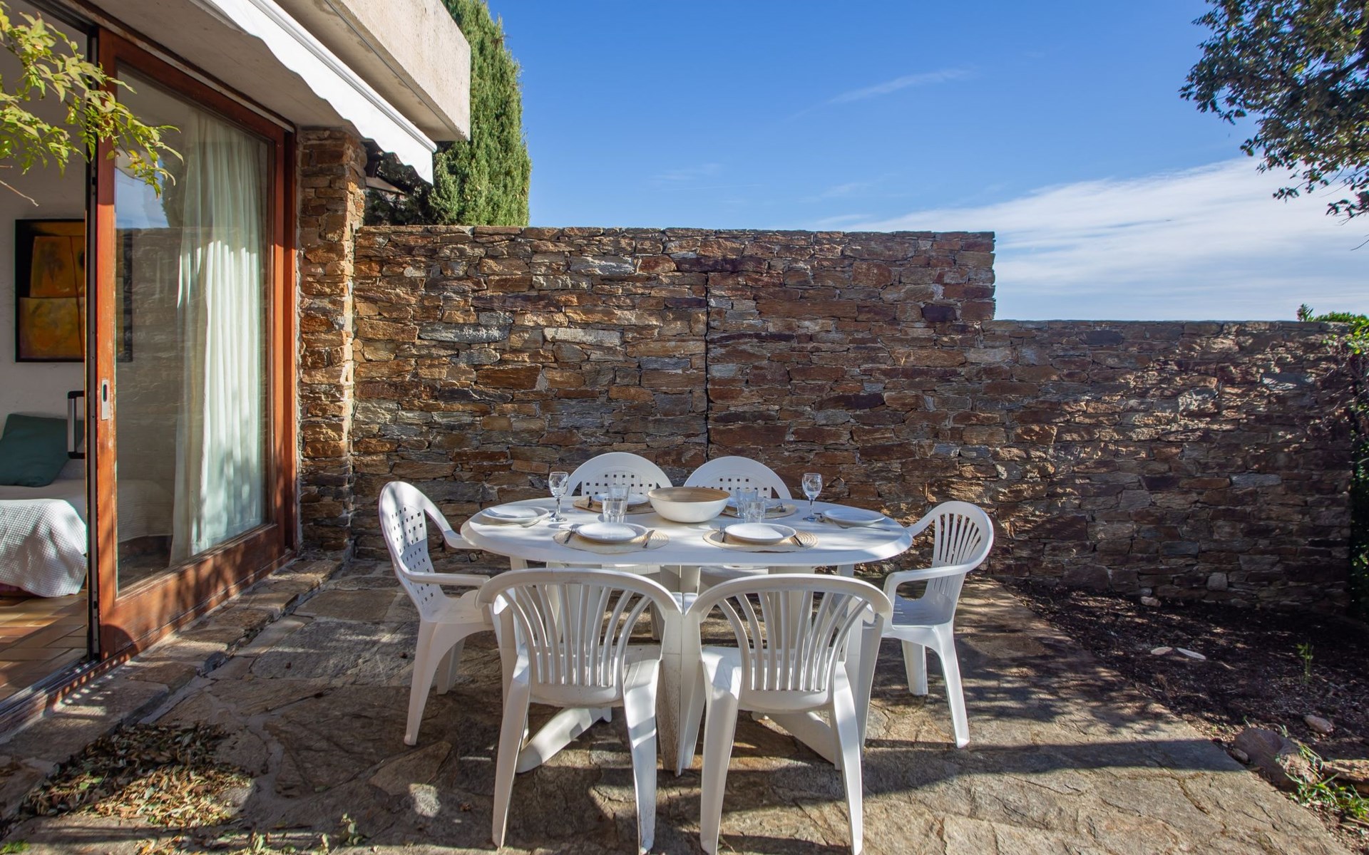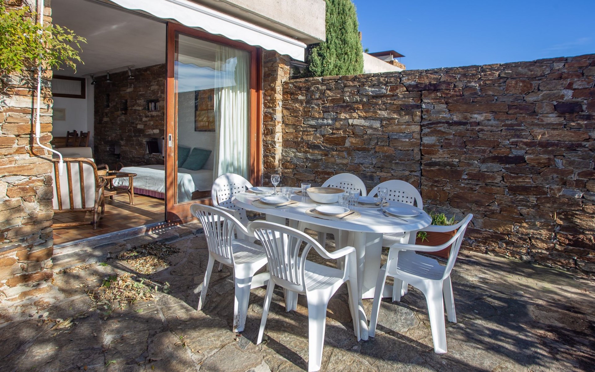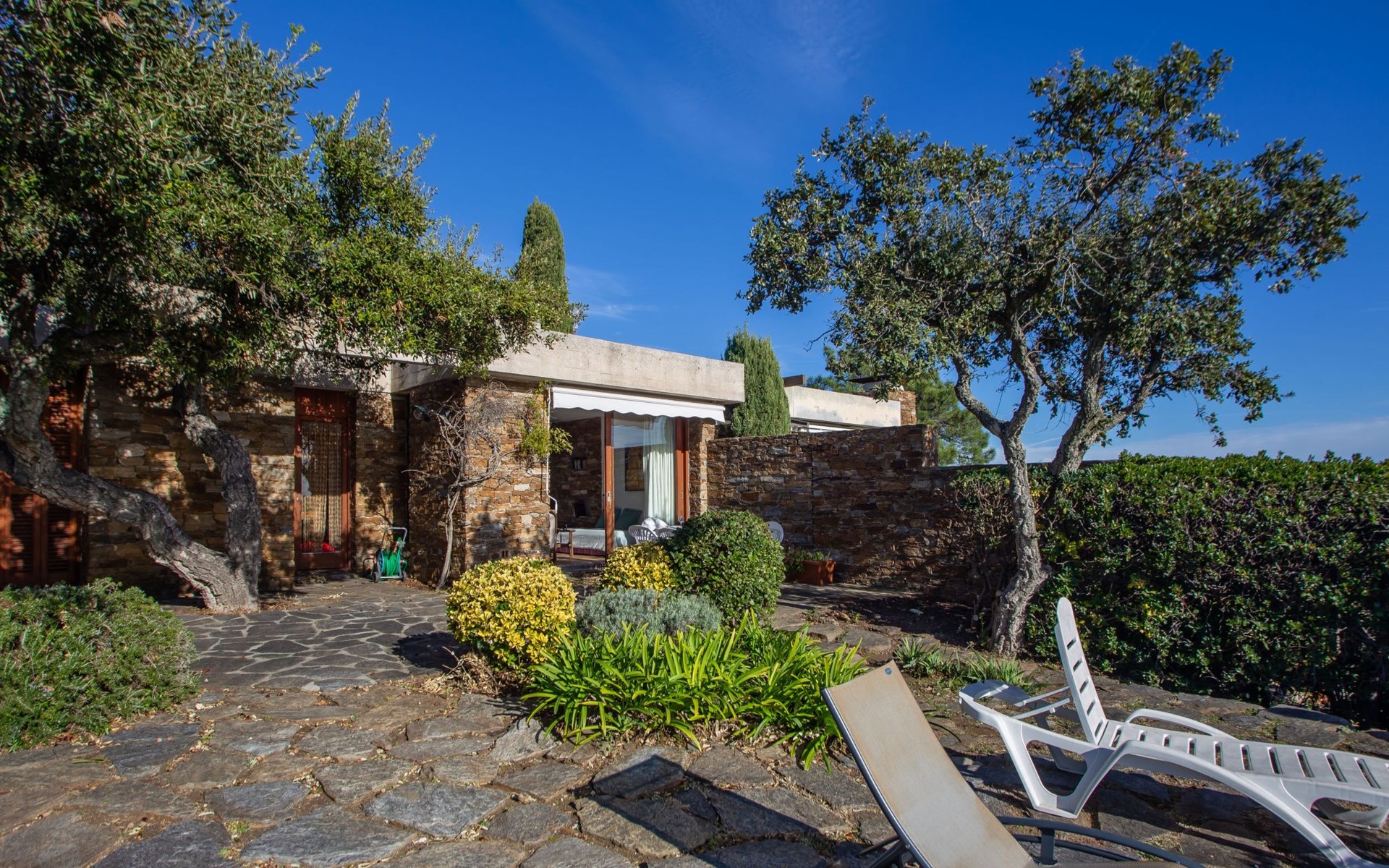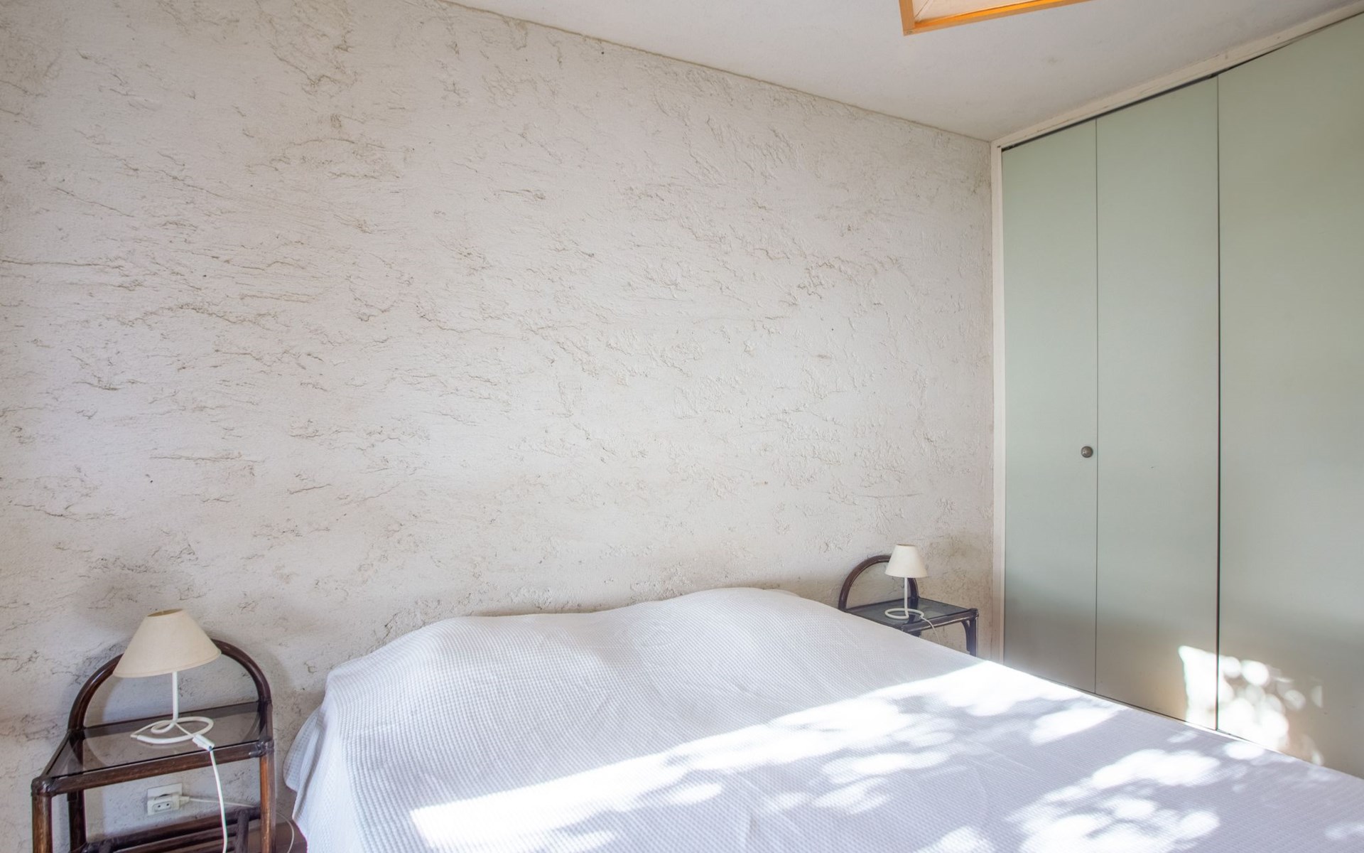 De woonwijk "Gaou Bénat" bestaat uit rijtjeshuizen en eengezinswoningen. Rijtjeshuis "Village Les Fourches". In de wijk le Village des Fourches, rustige ligging op een heuvel, 2.5 km van zee, 2.5 km van het strand. Toegangsweg tot 150 m voor aan het huis. Trappenweg (9 treden) naar het huis. Winkel 4 km, levensmiddelenwinkel 4 km, restaurant 4 km, bar 4 km, bushalte "Lavandou Gare Routière" 7 km, stenenstrand "Gaout bénat" 2.5 km. Tennis 2.5 km. Attracties in de buurt: Saint Tropez 44 km, Magic World 30 km, Parc Olbius Riquier 26 km, Le Jardin des Méditerranées 22 km. Wandelgebied Sentiers du Littoral. De sleuteloverdracht vindt plaats bij het agentschap Interhome in Le Lavandou. Auto noodzakelijk. Het huis is gelegen tegen een helling, het terras is niet omheind. Bij aankomst, een toegangsbadge moet betaald worden aan de concierge van het domein: 10€ met een borg van 20€.