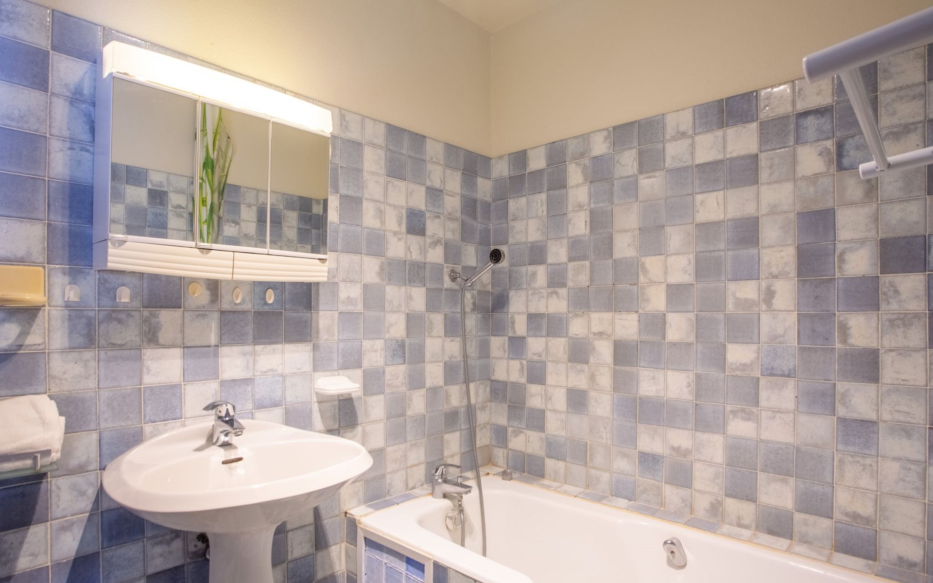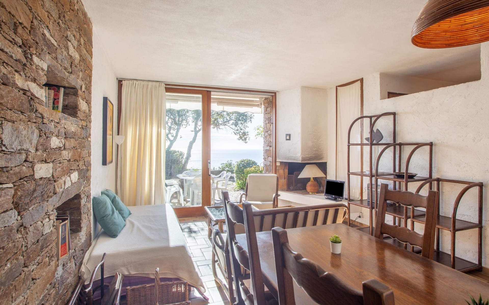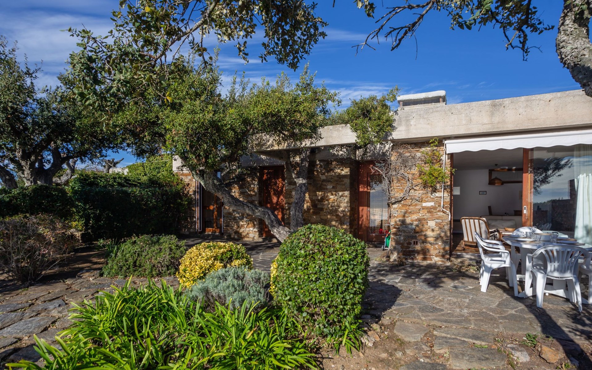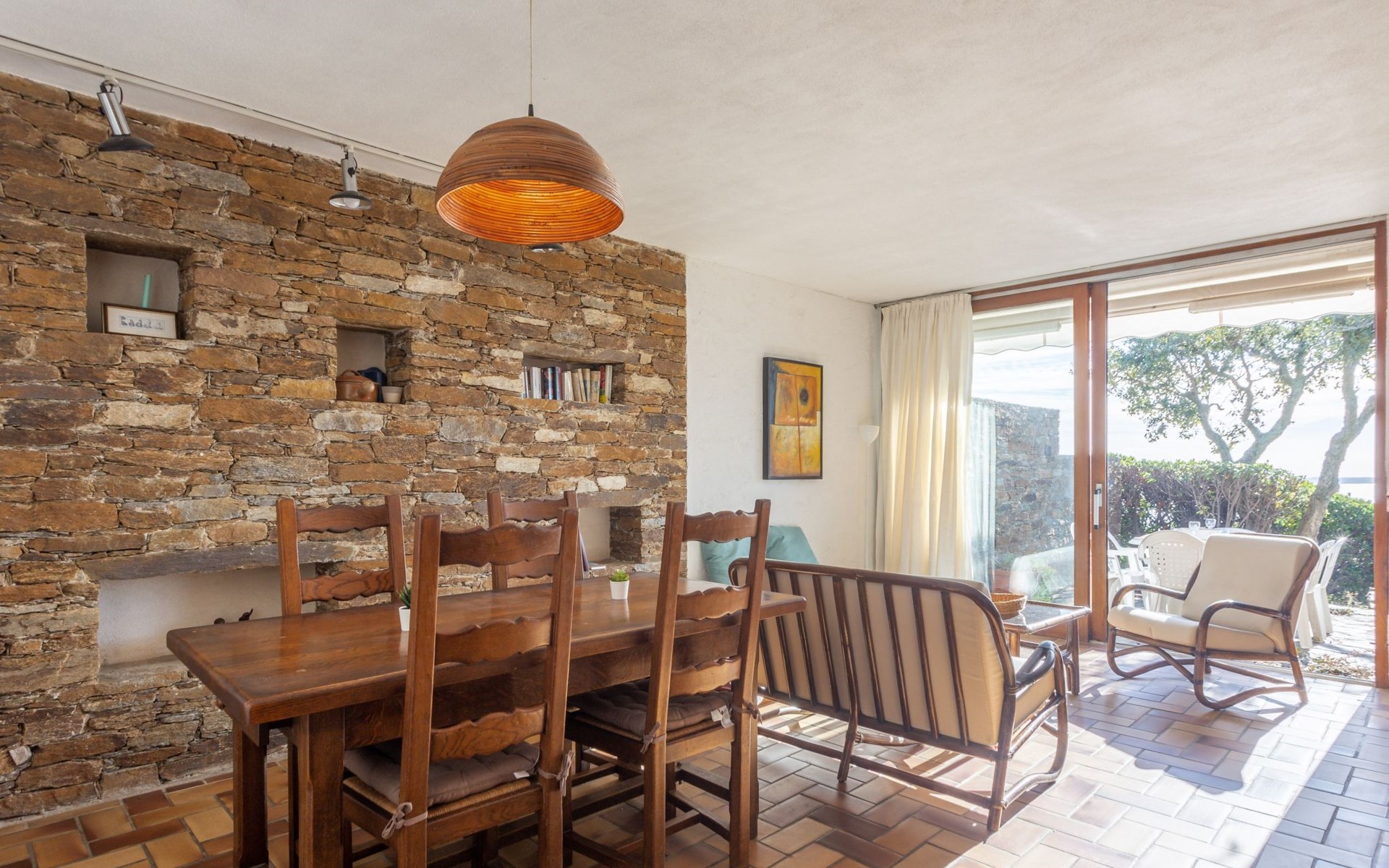 De woonwijk "Gaou Bénat" bestaat uit rijtjeshuizen en eengezinswoningen. Rijtjeshuis "Village Les Fourches". In de wijk le Village des Fourches, rustige ligging op een heuvel, 2.5 km van zee, 2.5 km van het strand. Toegangsweg tot 150 m voor aan het huis. Trappenweg (9 treden) naar het huis. Winkel 4 km, levensmiddelenwinkel 4 km, restaurant 4 km, bar 4 km, bushalte "Lavandou Gare Routière" 7 km, stenenstrand "Gaout bénat" 2.5 km. Tennis 2.5 km. Attracties in de buurt: Saint Tropez 44 km, Magic World 30 km, Parc Olbius Riquier 26 km, Le Jardin des Méditerranées 22 km. Wandelgebied Sentiers du Littoral. De sleuteloverdracht vindt plaats bij het agentschap Interhome in Le Lavandou. Auto noodzakelijk. Het huis is gelegen tegen een helling, het terras is niet omheind. Bij aankomst, een toegangsbadge moet betaald worden aan de concierge van het domein: 10€ met een borg van 20€.