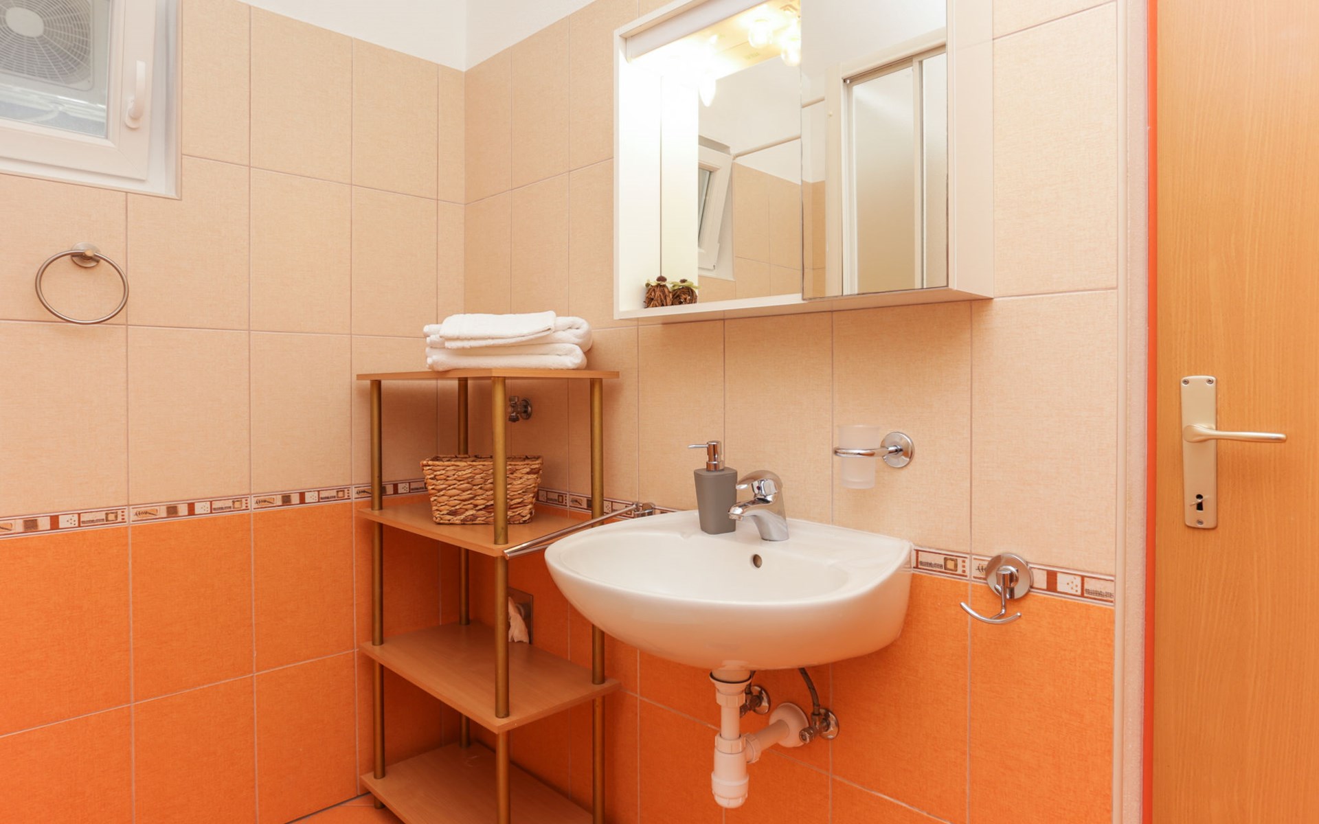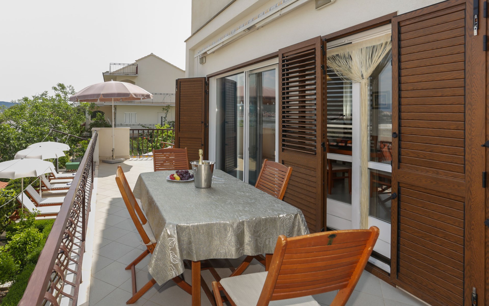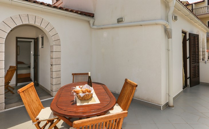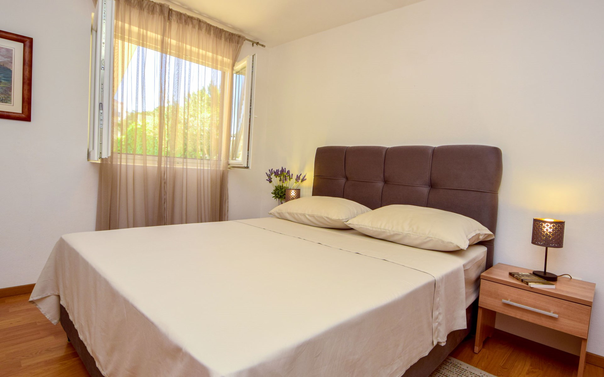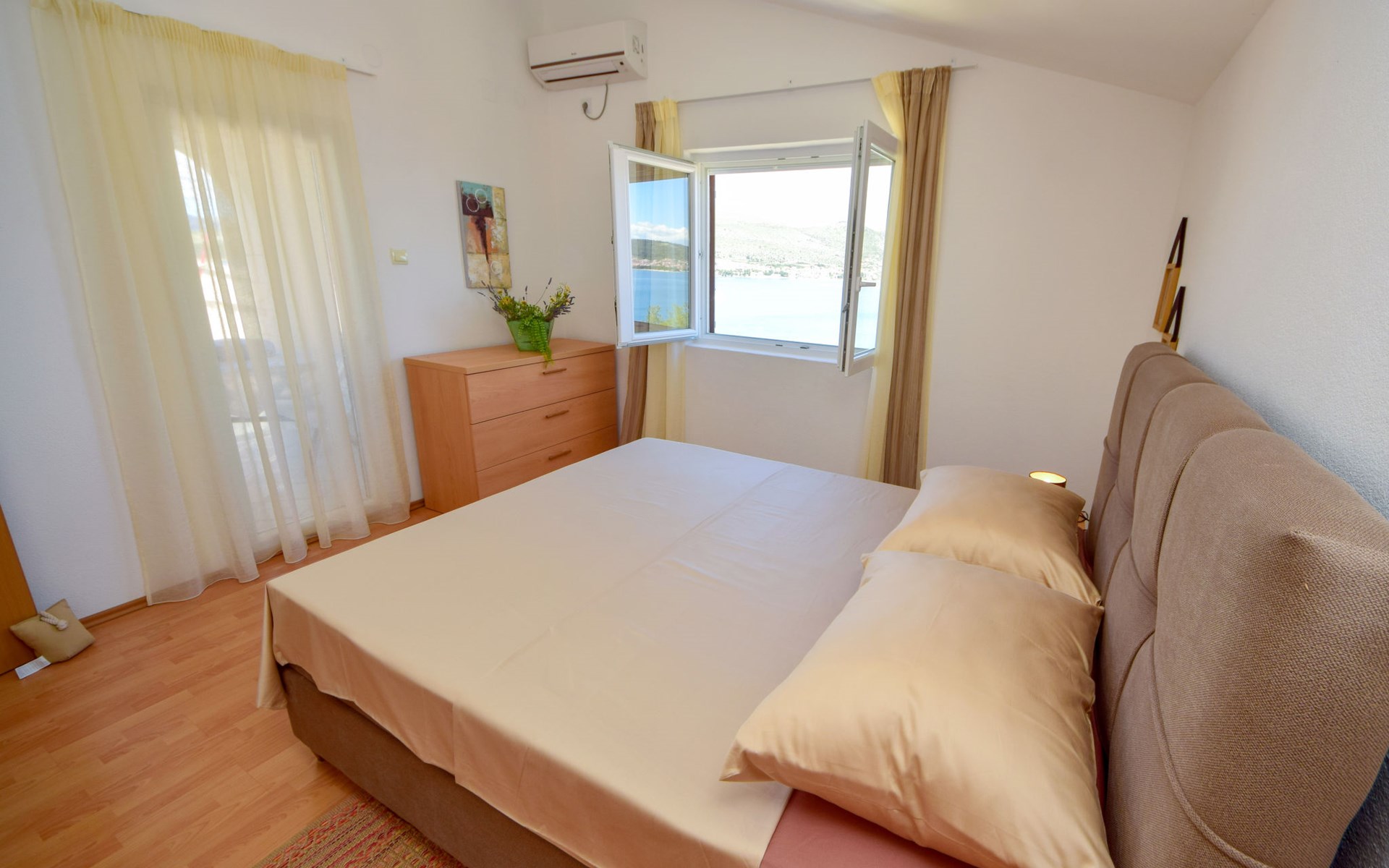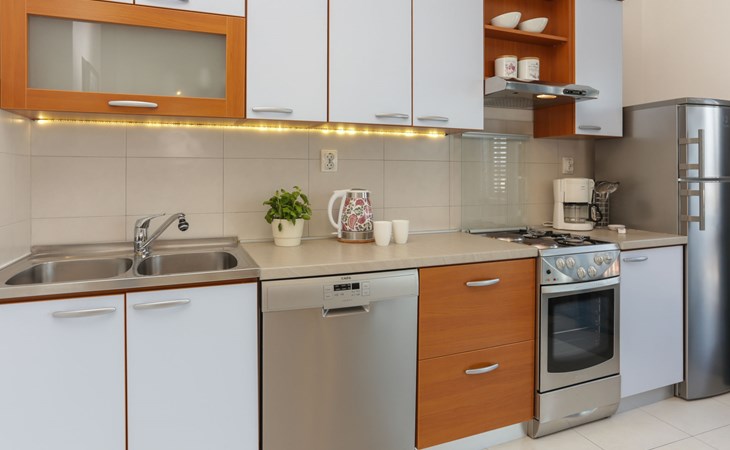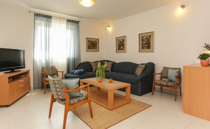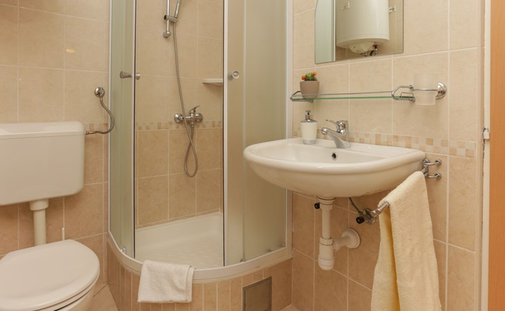 Okrug Donji 8 km van Trogir: Eengezinswoning "Villa Anita", van 3 verdiepingen. Rustige, zonnige, verhoogde ligging, 100 m van zee, 100 m van het strand, op het noorden. Voor alleengebruik: terrein 600 m2, openluchtzwembad hoekig (6 x 4 m, 150 cm diepte, seizoensgebonden beschikbaarheid: 01.Mei. - 01.Okt.) met trap. Buitendouche, terras (20 m2), tuinmeubelen, barbecue. In het huis: internetaansluiting, wasmachine. Parkeerplaats (voor 3 auto's) bij het huis op het terrein. Winkel 500 m, restaurant 2.5 km, bushalte 350 m, rotsstrand, betonnen strand 100 m. Tennis 3 km. Vliegveld 12 km van het huis. Het huis bestaat uit 3 appartementen, die worden verhuurd als een eenheid: een appartement op de begane grond, een appartement op de eerste verdieping en een appartement op de tweede verdieping.