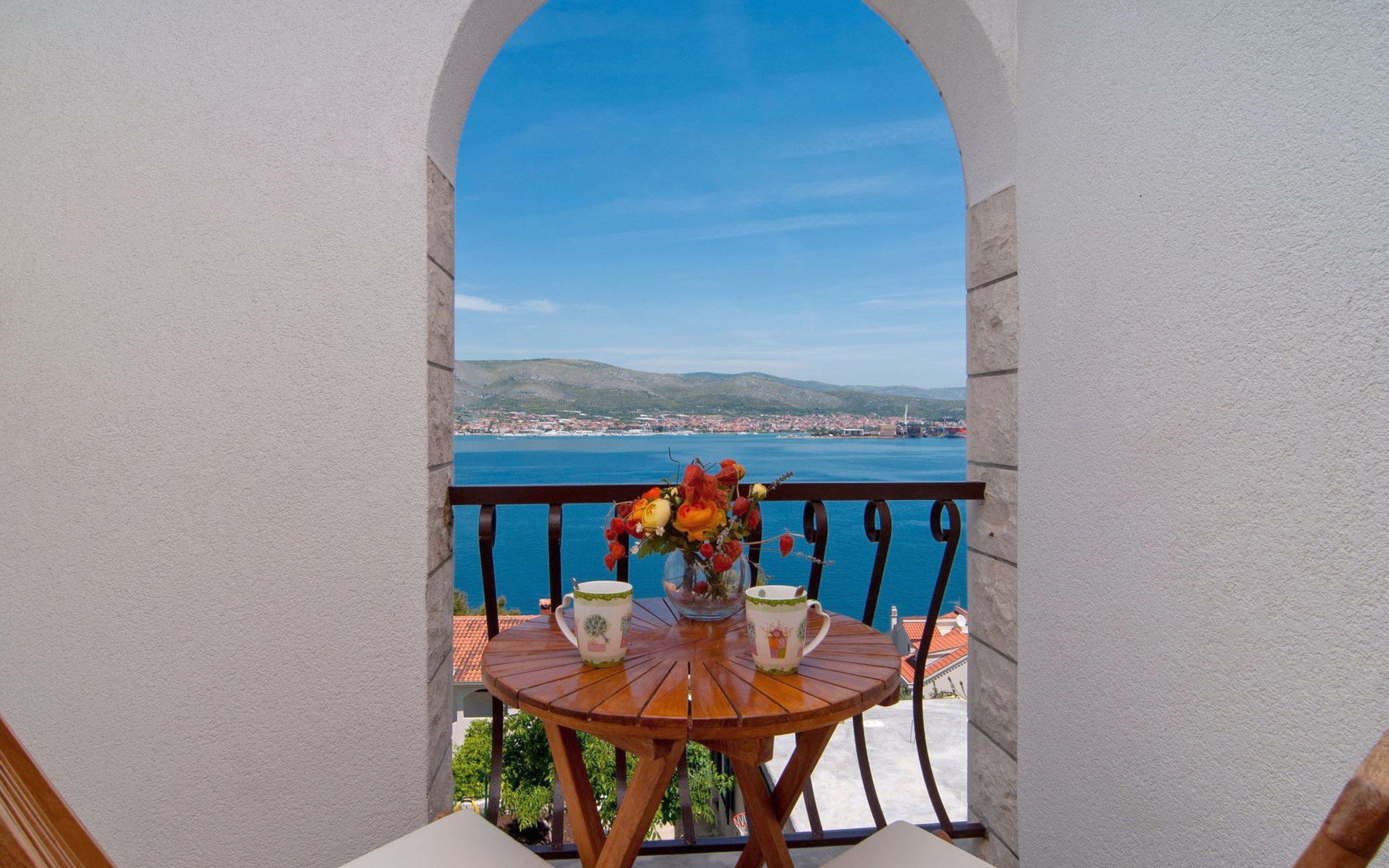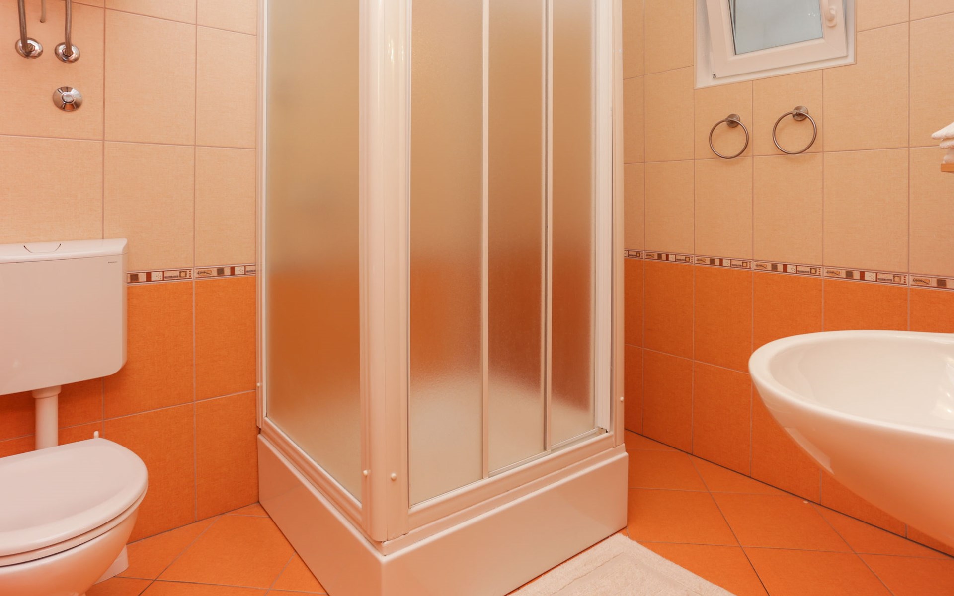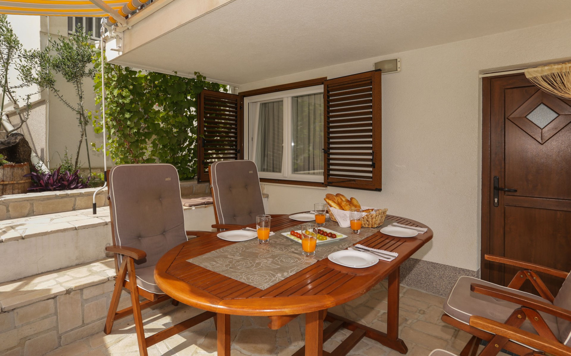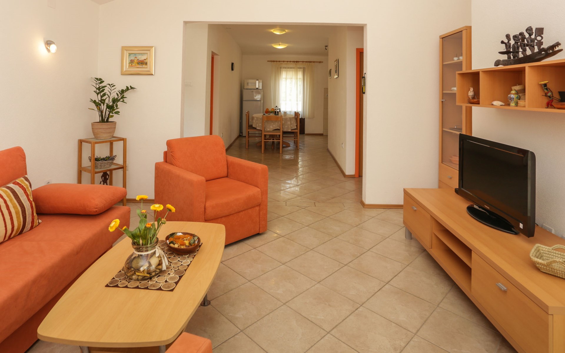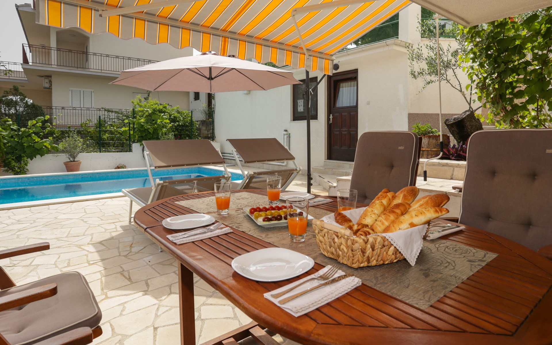 Okrug Donji 8 km van Trogir: Eengezinswoning "Villa Anita", van 3 verdiepingen. Rustige, zonnige, verhoogde ligging, 100 m van zee, 100 m van het strand, op het noorden. Voor alleengebruik: terrein 600 m2, openluchtzwembad hoekig (6 x 4 m, 150 cm diepte, seizoensgebonden beschikbaarheid: 01.Mei. - 01.Okt.) met trap. Buitendouche, terras (20 m2), tuinmeubelen, barbecue. In het huis: internetaansluiting, wasmachine. Parkeerplaats (voor 3 auto's) bij het huis op het terrein. Winkel 500 m, restaurant 2.5 km, bushalte 350 m, rotsstrand, betonnen strand 100 m. Tennis 3 km. Vliegveld 12 km van het huis. Het huis bestaat uit 3 appartementen, die worden verhuurd als een eenheid: een appartement op de begane grond, een appartement op de eerste verdieping en een appartement op de tweede verdieping.