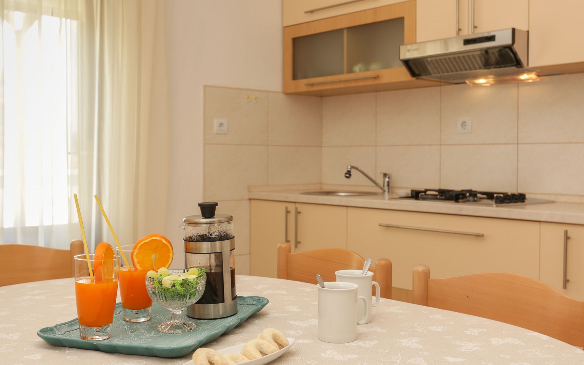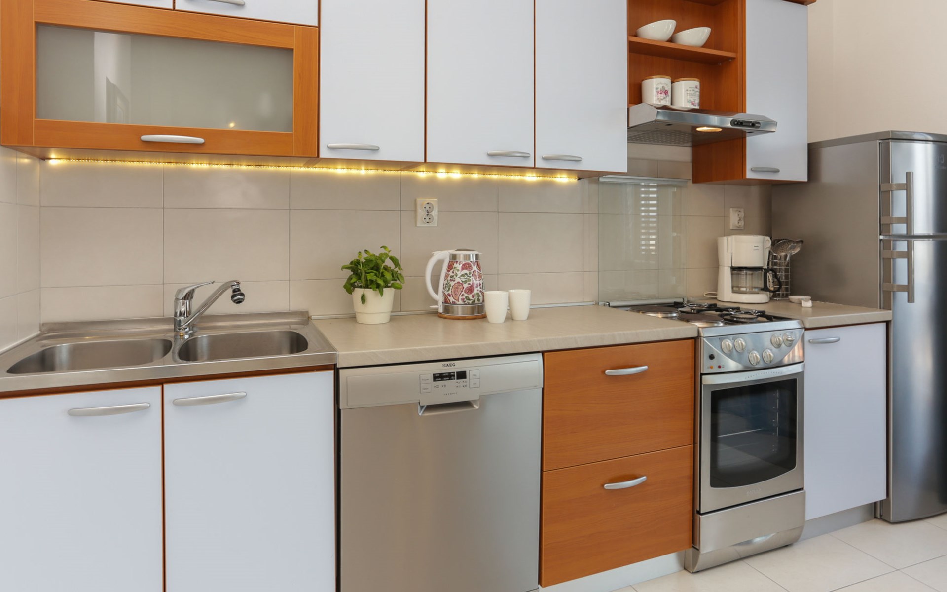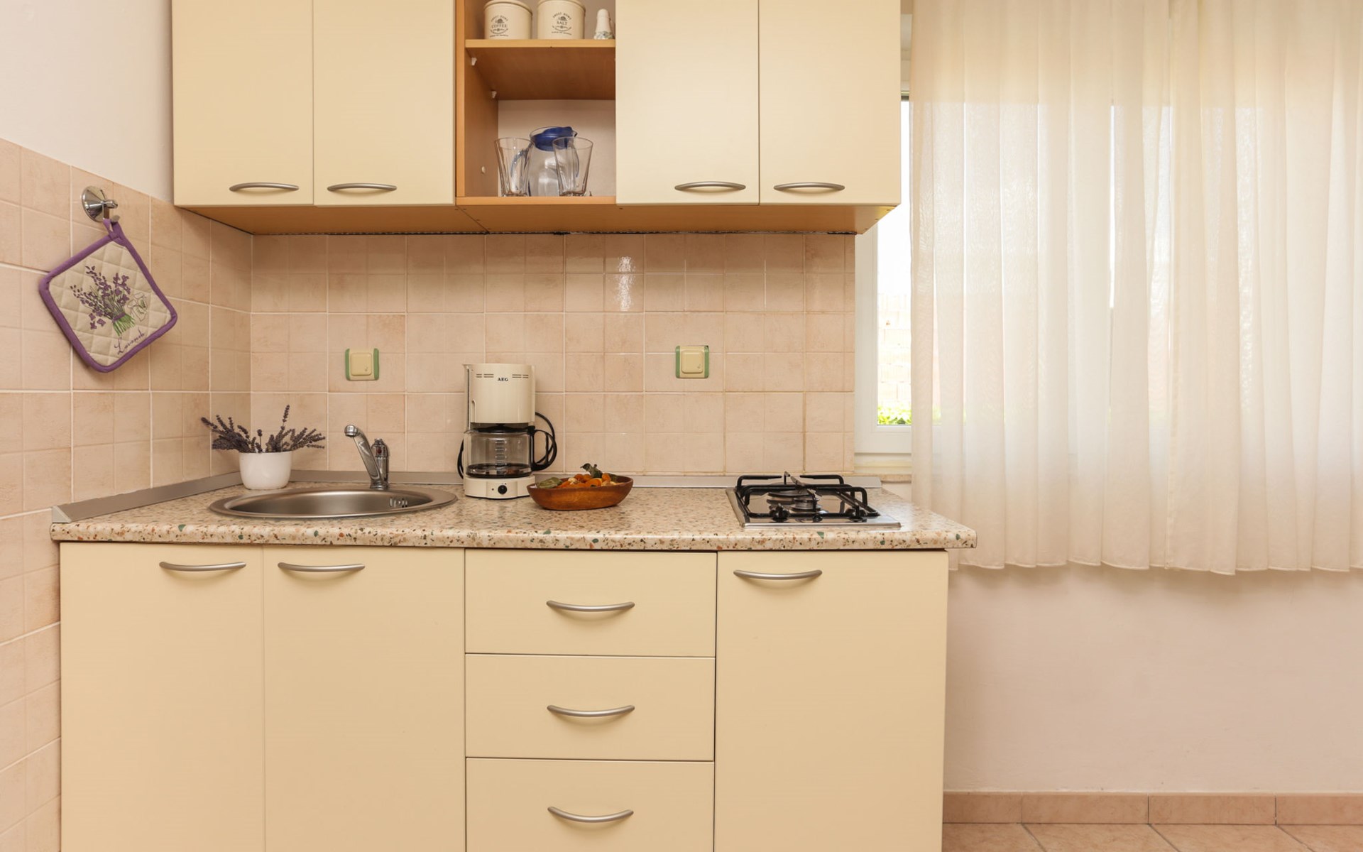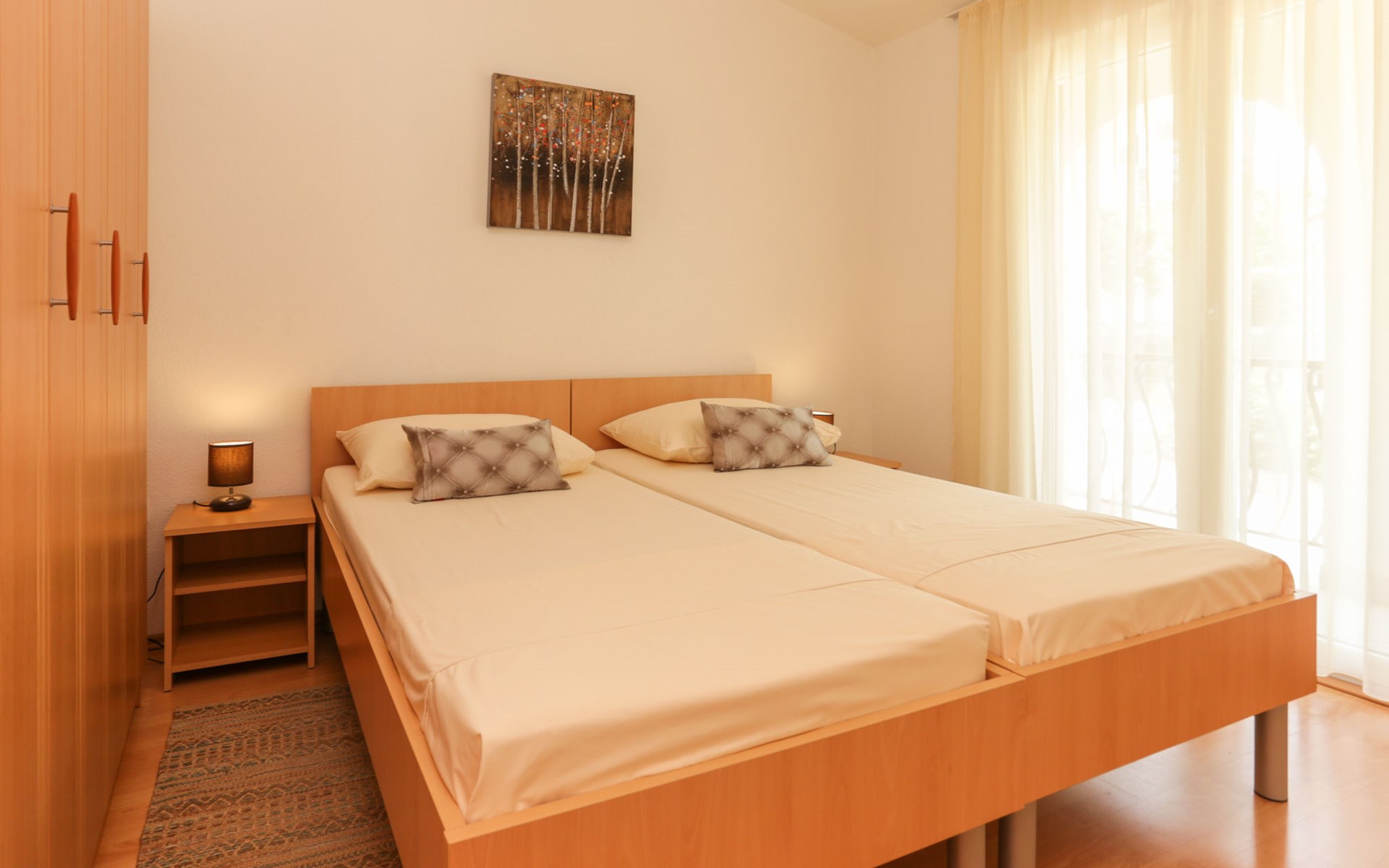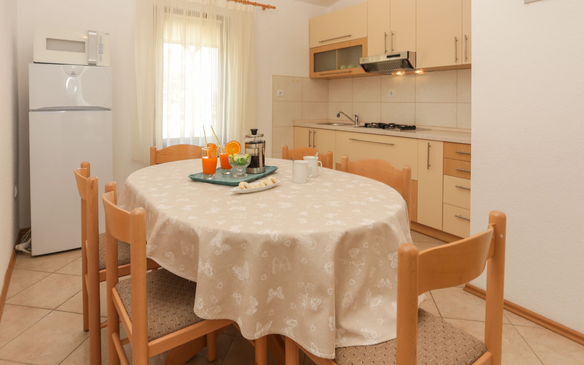 Okrug Donji 8 km van Trogir: Eengezinswoning "Villa Anita", van 3 verdiepingen. Rustige, zonnige, verhoogde ligging, 100 m van zee, 100 m van het strand, op het noorden. Voor alleengebruik: terrein 600 m2, openluchtzwembad hoekig (6 x 4 m, 150 cm diepte, seizoensgebonden beschikbaarheid: 01.Mei. - 01.Okt.) met trap. Buitendouche, terras (20 m2), tuinmeubelen, barbecue. In het huis: internetaansluiting, wasmachine. Parkeerplaats (voor 3 auto's) bij het huis op het terrein. Winkel 500 m, restaurant 2.5 km, bushalte 350 m, rotsstrand, betonnen strand 100 m. Tennis 3 km. Vliegveld 12 km van het huis. Het huis bestaat uit 3 appartementen, die worden verhuurd als een eenheid: een appartement op de begane grond, een appartement op de eerste verdieping en een appartement op de tweede verdieping.