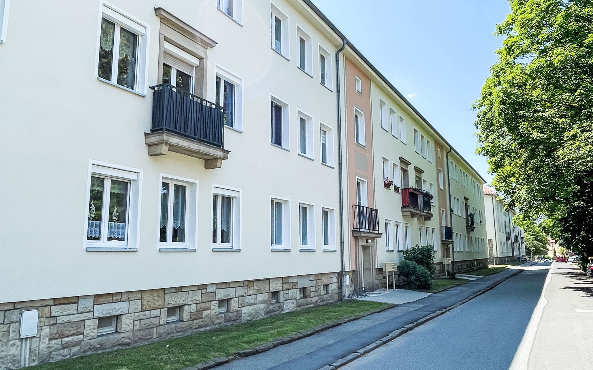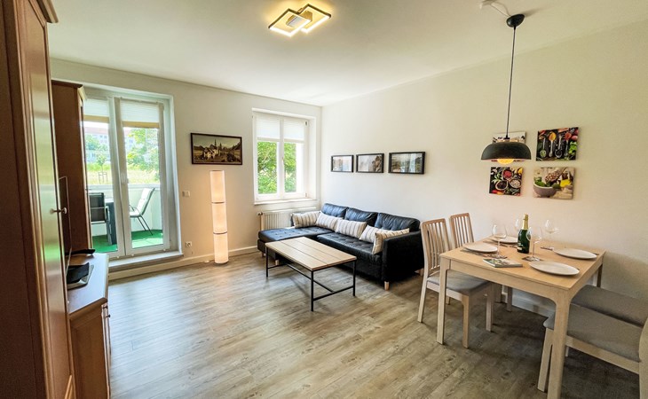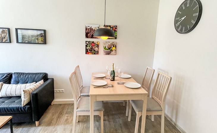 Appartementencomplex. In de wijk Sonnenstein, 2 km van het centrum van Pirna, 26 km van het centrum van Dresden, rustige, zonnige ligging in een woonwijk. Parkeerplaats bij het huis. Winkel 300 m, restaurant 500 m, bushalte "Pirna Klinikum" 300 m, treinstation "Pirna" 2 km, openluchtzwembad 4 km, thermaalbad "Pirna" 4 km. Vismogelijkheden 700 m. Attracties in de buurt: Wasserfall Lohmener Klamm 8 km, Gedenkstätte Pirna Sonnenstein 500 m, Miniaturpark 8 km, Basteibrücke 13 km, Bad Schandau 28 km, Dresden 29 km. Wandelgebied Sächsische Schweiz 1 km.