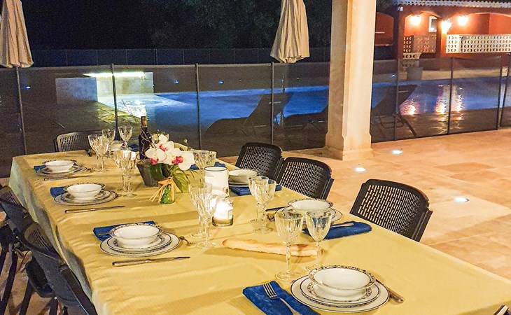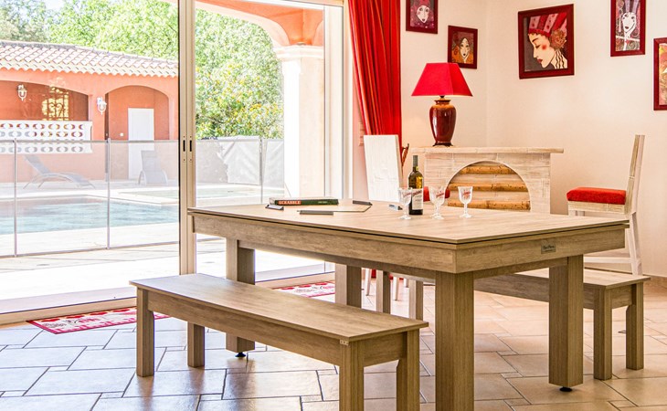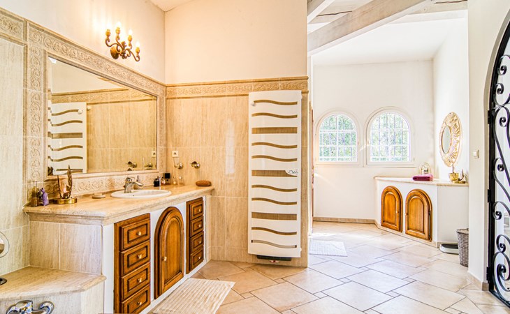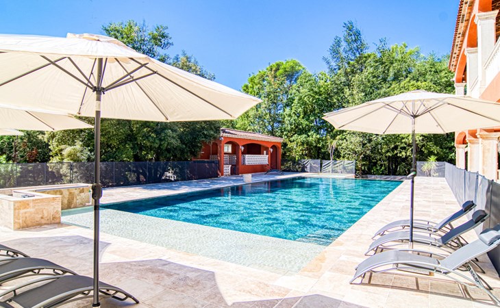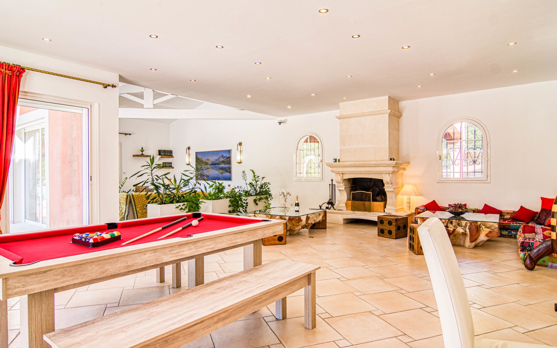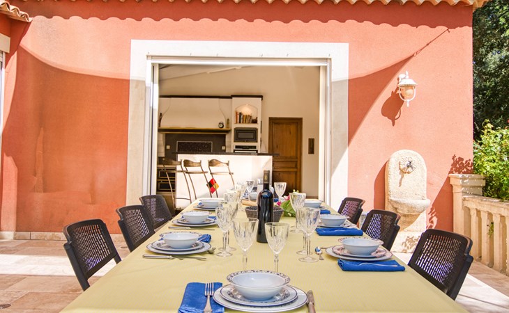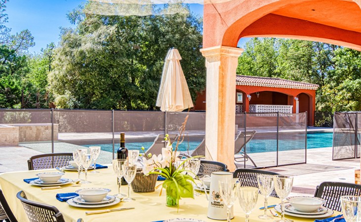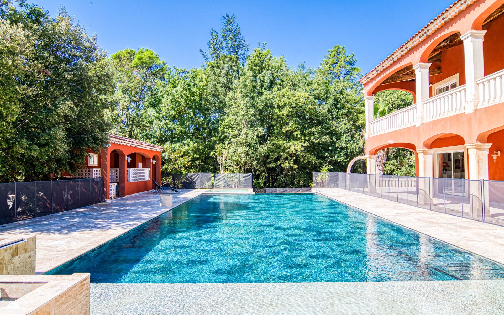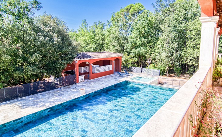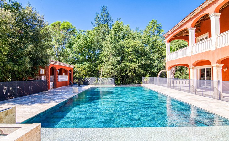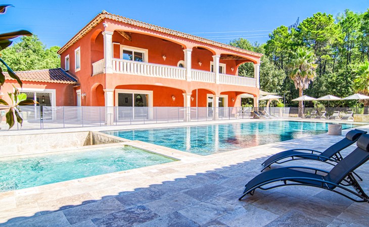 Zeer groot, mooi eengezinswoning. 2.9 km van het centrum van Méounes-les-Montrieux, 14 km van het centrum van Rocbaron, 32 km van het centrum van Hyeres, in een woonwijk, te midden van groen. Voor alleengebruik: terrein 3 ha (omheind), verzorgde tuin 3.000 m2, openluchtzwembad hoekig, verwarmd, omheind (20 x 8 m, 50 - 145 cm diepte, seizoensgebonden beschikbaarheid: 01.Jan. - 31.Dec.) met zout-elektrolyse. Kinderzwembad, hot tub, poolhouse met koelkast, douche en WC. In het huis: fitnessruimte, biljart. Winkel 2.9 km, supermarkt 12 km, restaurant 2.9 km, bakkerij 2.9 km, café 2.9 km, bushalte 2.5 km, treinstation "Cuers-Pierrefeu" 20 km, zandstrand "Almanarre" 36 km. Golfterrein (18 holes) 26 km, manege 17 km. Attracties in de buurt: Iles de Porquerolles, Port Cros, Iles des Embiez, Circuit Paul Ricard. Wandelgebied Parc régional de la Sainte Baume. De eigenaar accepteert geen jeugdgroepen.
