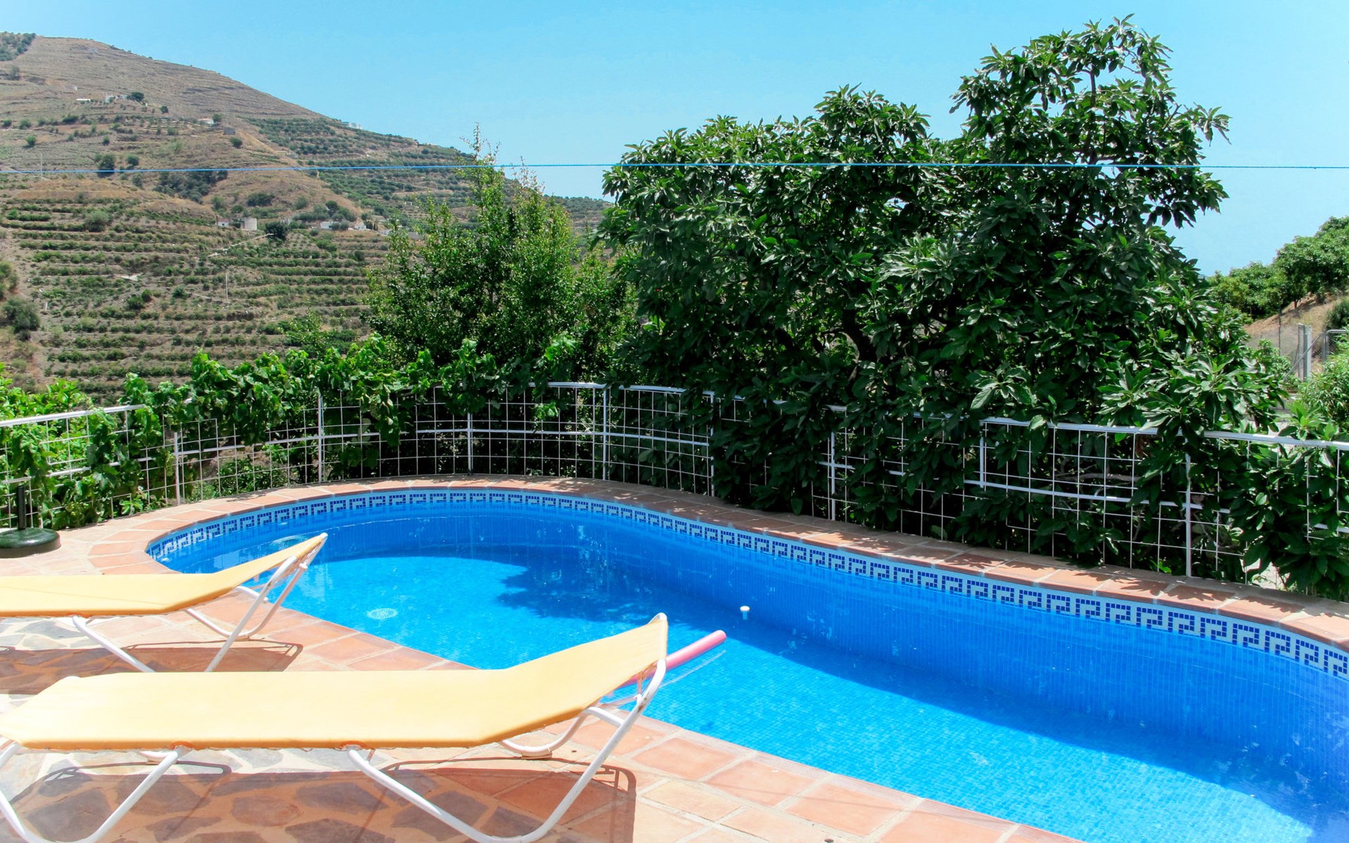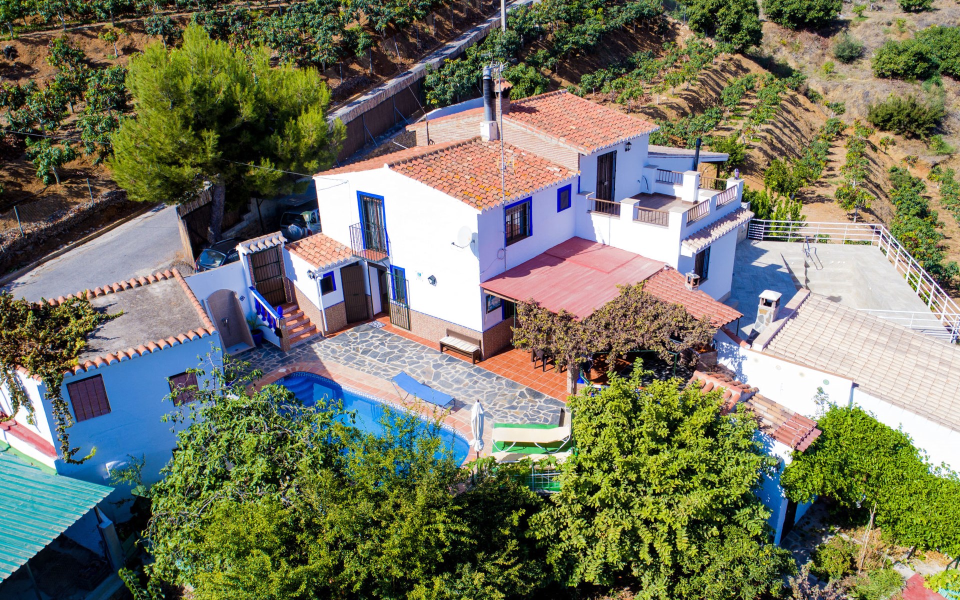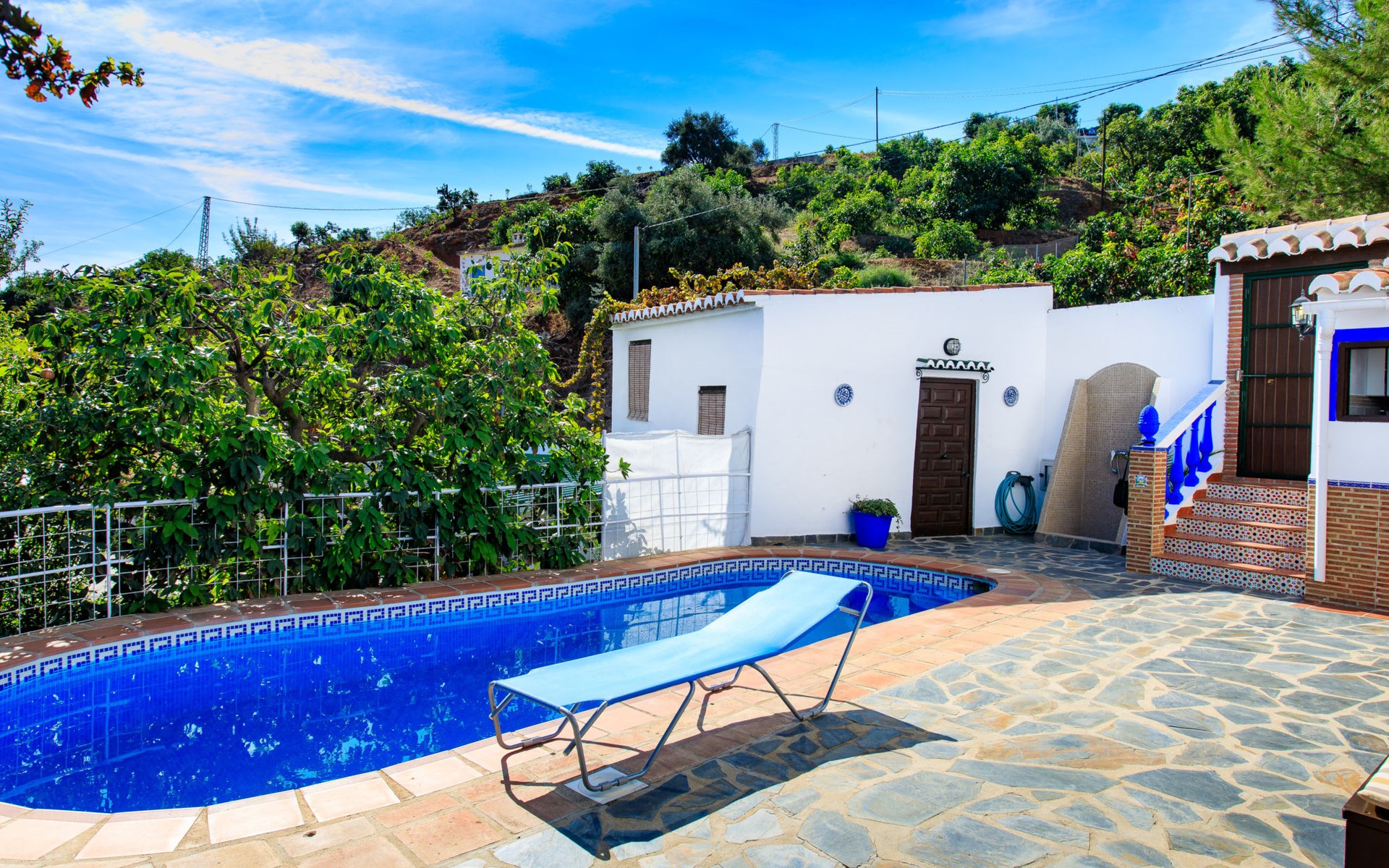 Gezellig, comfortabel landhuis "La Cordobilla", van 2 verdiepingen, gerenoveerd in 2015, omgeven door velden. 7 km van het centrum van Almuñecar, 4 km van het centrum van Torrecuevas, 8 km van zee. Voor alleengebruik: terrein 600 m2 (omheind) met bomen, openluchtzwembad (7 x 3 m, seizoensgebonden beschikbaarheid: 01.Mei. - 31.Okt.). WC bij het zwembad, buitendouche, terras, barbecue. 500 m lange steile, smalle toegangsweg. Parkeerplaats bij het huis op het terrein, openbare parkeerplaatsen in de straat. Winkel 4 km, restaurant 4 km, bushalte "Estación de autobuses Almuñécar" 8 km, zandstrand 8 km. Jachthaven 15 km, golfterrein 30 km. Attracties in de buurt: Frigiliana, Nerja, Granada, Acnntilados de Maro, Alhambra de Granada, Almuñecar. Bekende skigebieden kunnen gemakkelijk worden bereikt: Sierra Nevada. Wandelgebied Rio Verde, Valle Lecrín, Sierra Almijara. Auto noodzakelijk. Het objekt is geschikt voor 4 volwassenen + 1 kinderen. Laden en lossen van de baggage is mogelijk bij het huis.