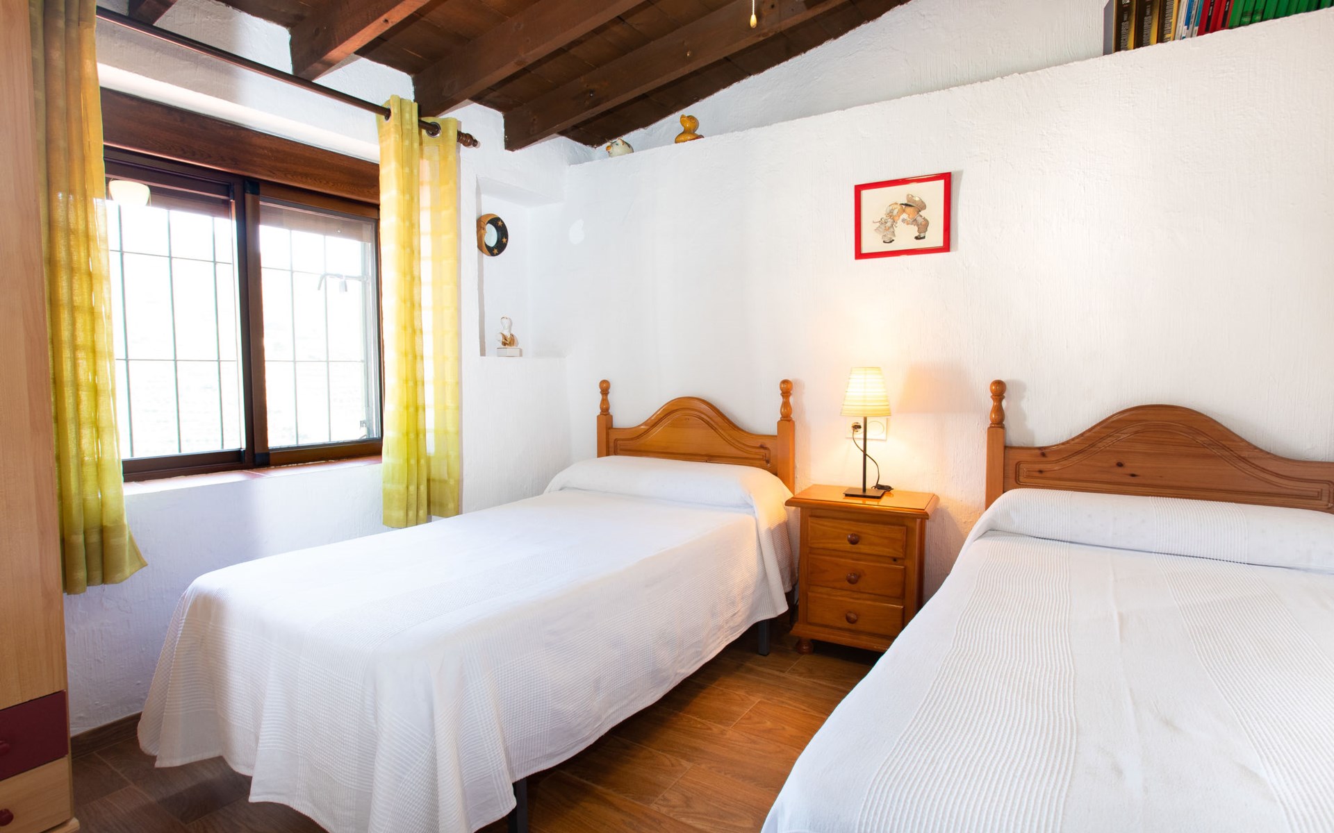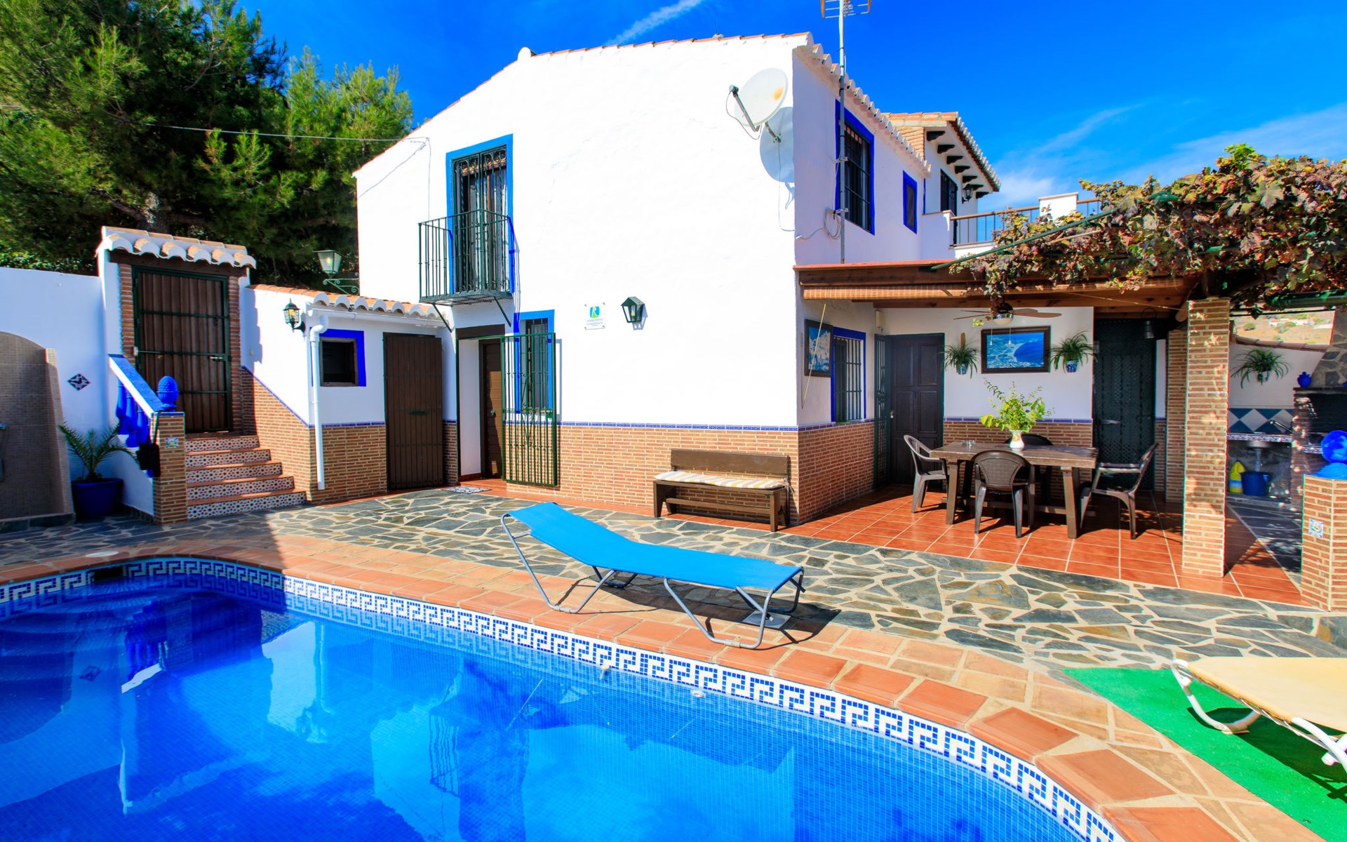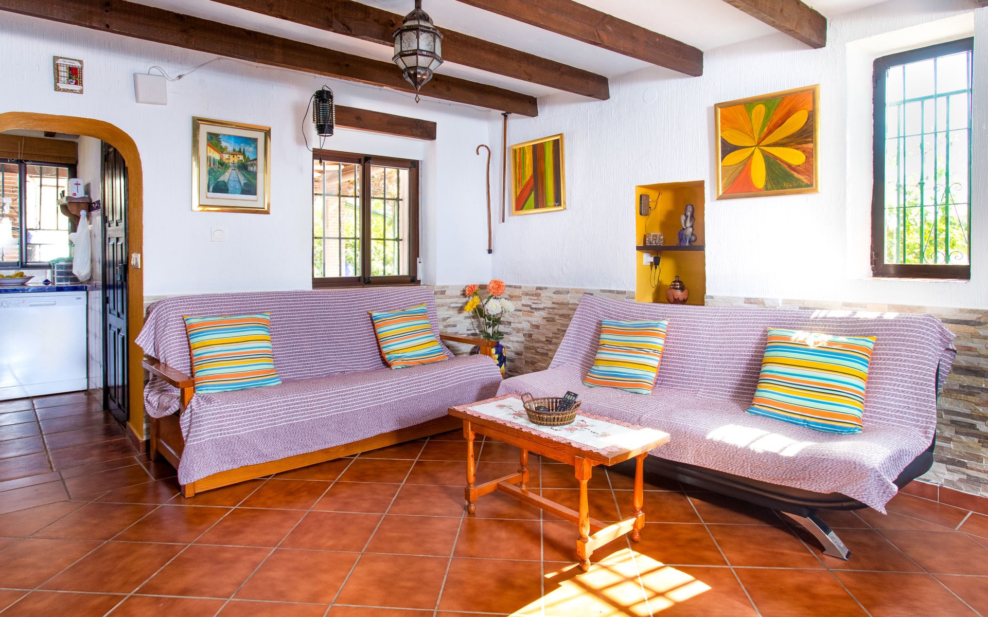 Gezellig, comfortabel landhuis "La Cordobilla", van 2 verdiepingen, gerenoveerd in 2015, omgeven door velden. 7 km van het centrum van Almuñecar, 4 km van het centrum van Torrecuevas, 8 km van zee. Voor alleengebruik: terrein 600 m2 (omheind) met bomen, openluchtzwembad (7 x 3 m, seizoensgebonden beschikbaarheid: 01.Mei. - 31.Okt.). WC bij het zwembad, buitendouche, terras, barbecue. 500 m lange steile, smalle toegangsweg. Parkeerplaats bij het huis op het terrein, openbare parkeerplaatsen in de straat. Winkel 4 km, restaurant 4 km, bushalte "Estación de autobuses Almuñécar" 8 km, zandstrand 8 km. Jachthaven 15 km, golfterrein 30 km. Attracties in de buurt: Frigiliana, Nerja, Granada, Acnntilados de Maro, Alhambra de Granada, Almuñecar. Bekende skigebieden kunnen gemakkelijk worden bereikt: Sierra Nevada. Wandelgebied Rio Verde, Valle Lecrín, Sierra Almijara. Auto noodzakelijk. Het objekt is geschikt voor 4 volwassenen + 1 kinderen. Laden en lossen van de baggage is mogelijk bij het huis.