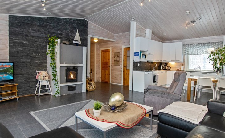 All floor surfaces inside are tiled stone. A form of heating is comfortable underfloor heating. The living room fireplace brings additional warmth and ambiance. Information about fishing in the cottage, additionally separate place for fish processing and grill hut.
