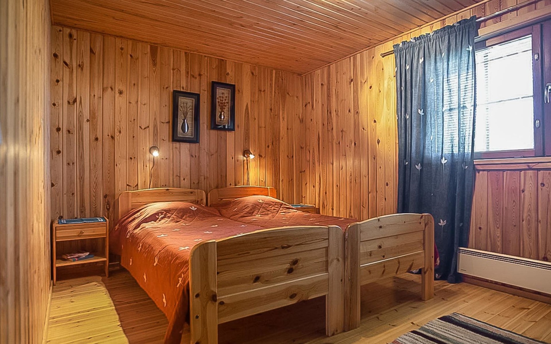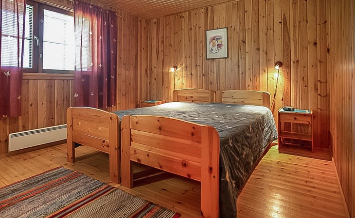Wooden cottage 1985 (renovated 2007, 2015, 2019). Living room/kitchen convertible sofa/double bed, 2 bedrooms each with double bed, dressing room, washroom, sauna, terrace.