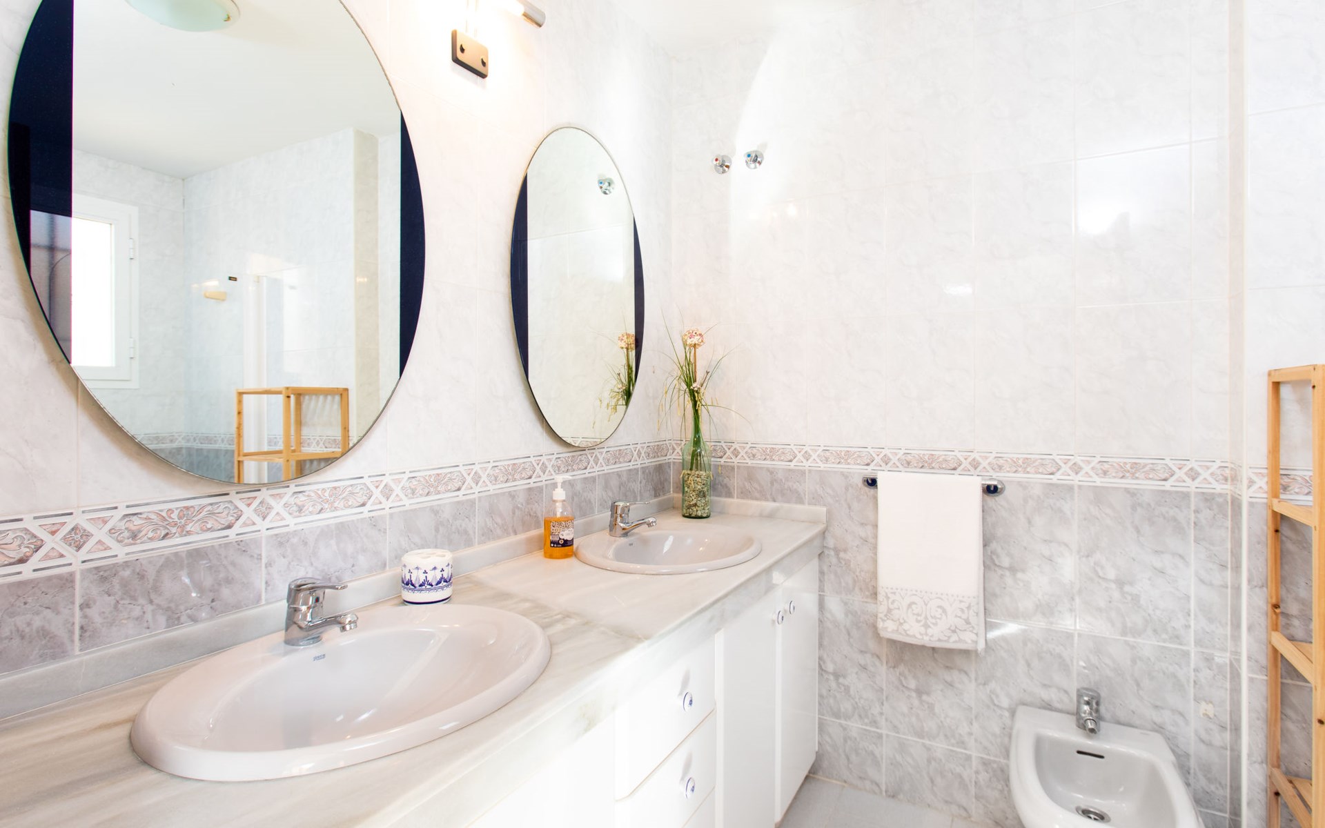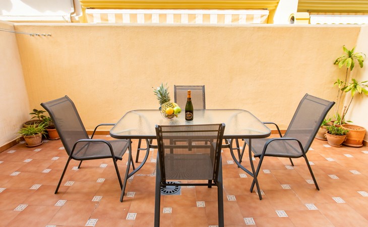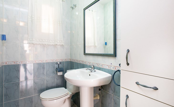 Gezellig rijtjeshuis "Villa Corales", van 2 verdiepingen. Rustige ligging, 10 m van zee, directe toegang tot het strand, op het oosten. Voor medegebruik: tuin, openluchtzwembad rond (175 - 90 cm diepte, seizoensgebonden beschikbaarheid: 01.Jun. - 15.Sep. openingstijden zwembad: 10:00-15:00 en 17:00-22:00). WC bij het zwembad. In het huis: Internet (WiFi), air-conditioning, wasmachine. Parkeerplaats nr. 6. Bushalte "walking distance" 300 m. De eigenaar accepteert geen jeugdgroepen.