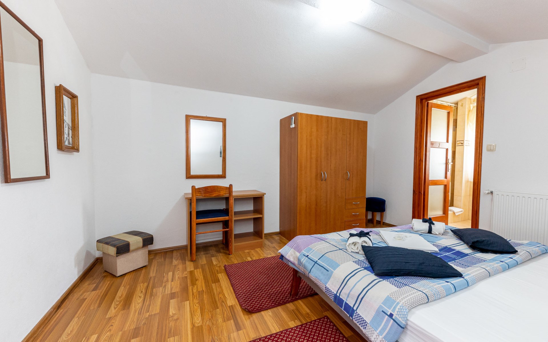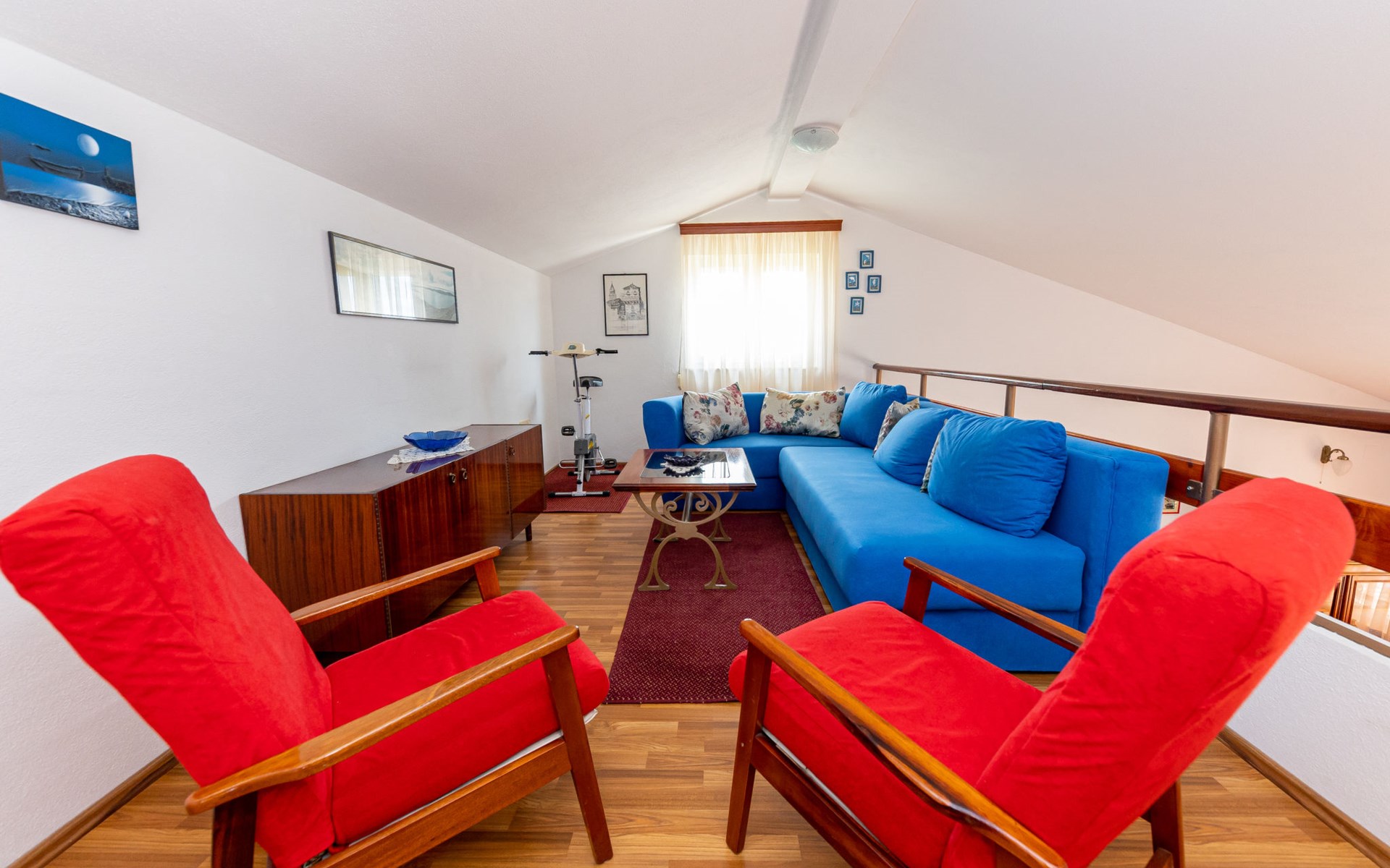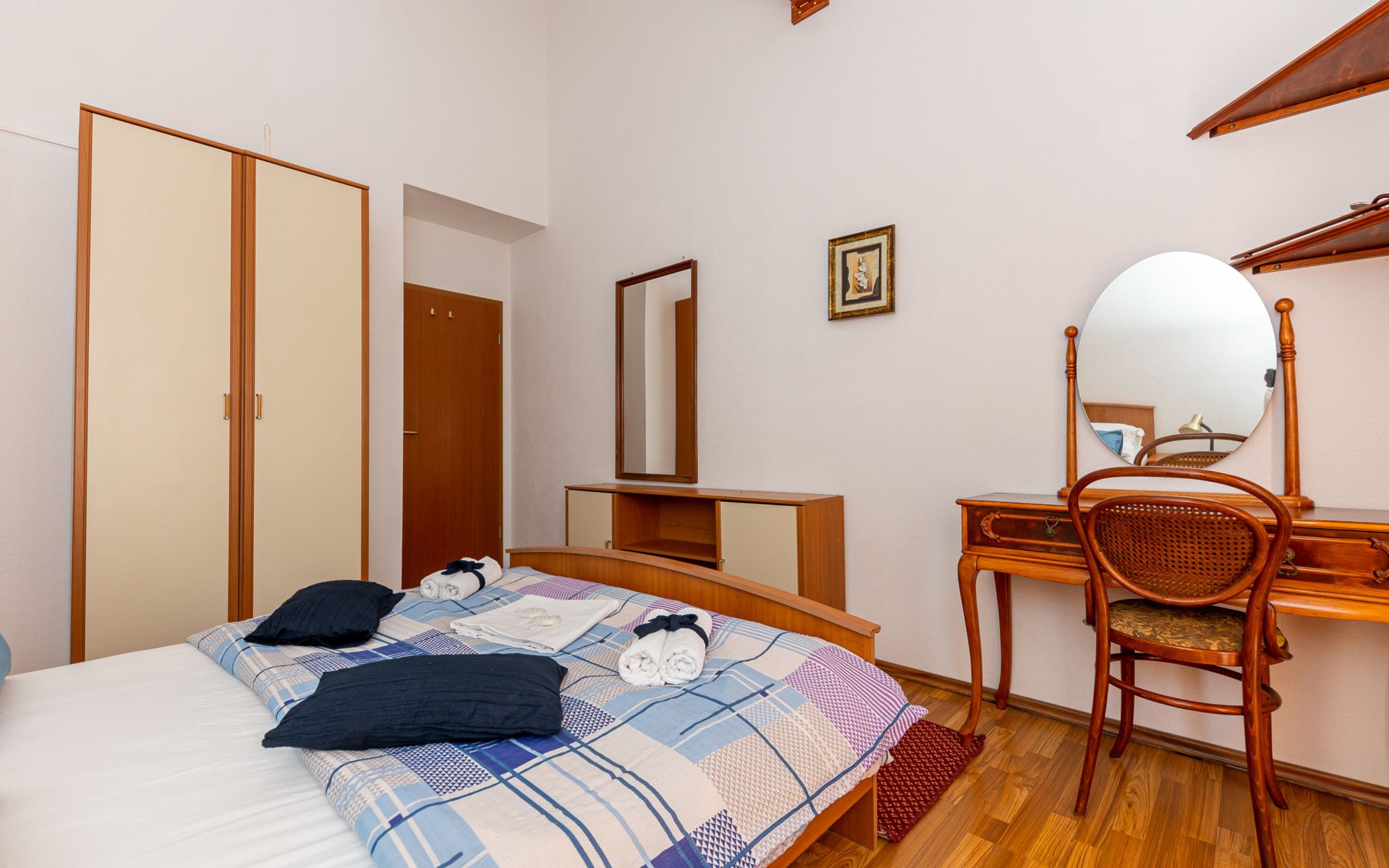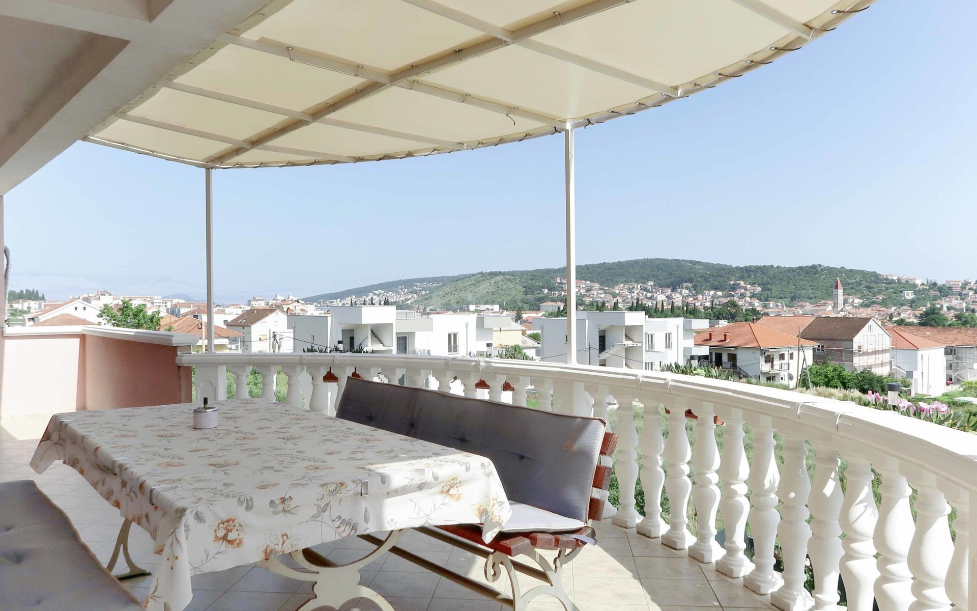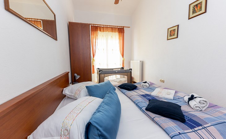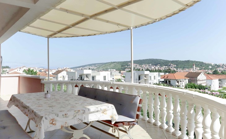 Huis met 3 woningen "Villa Saba". 800 m van het centrum van Trogir, 900 m van zee, 2.5 km van het strand. Voor medegebruik: terrein 700 m2 (omheind) met gazon en bomen, openluchtzwembad (6 x 4 m, 150 cm diepte, seizoensgebonden beschikbaarheid: 03.Apr. - 06.Nov.) met trap. Buitendouche, terras. In het huis: internetaansluiting. Parkeerplaats bij het huis op het terrein. Supermarkt 800 m, bushalte 950 m, rotsstrand 2.5 km. Groepen jongeren zijn niet toegestaan.