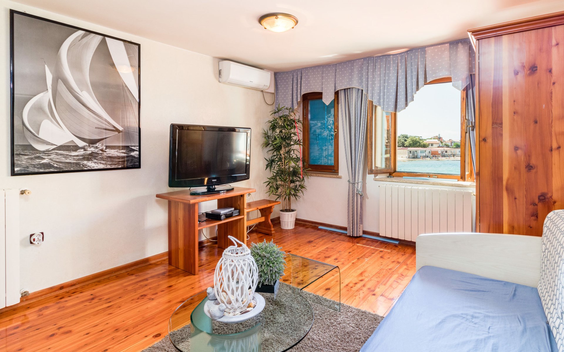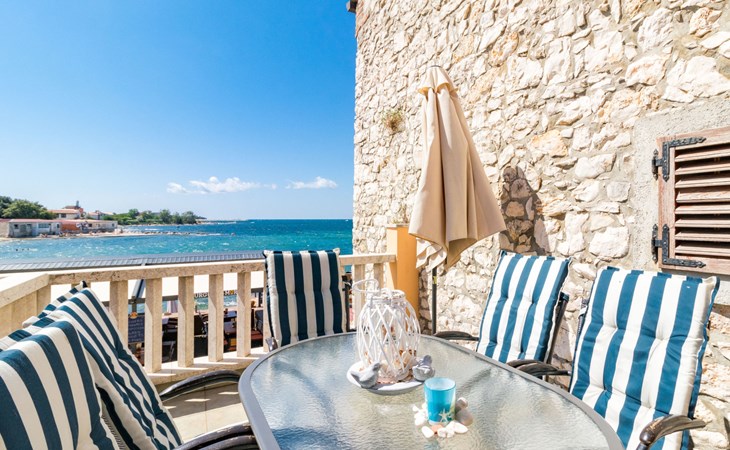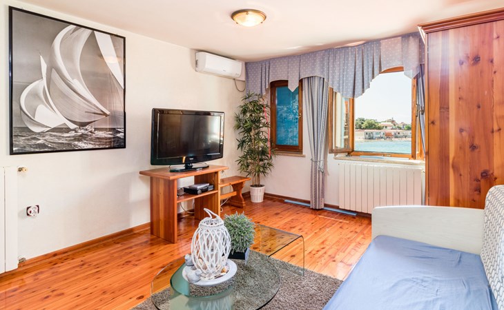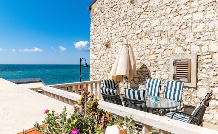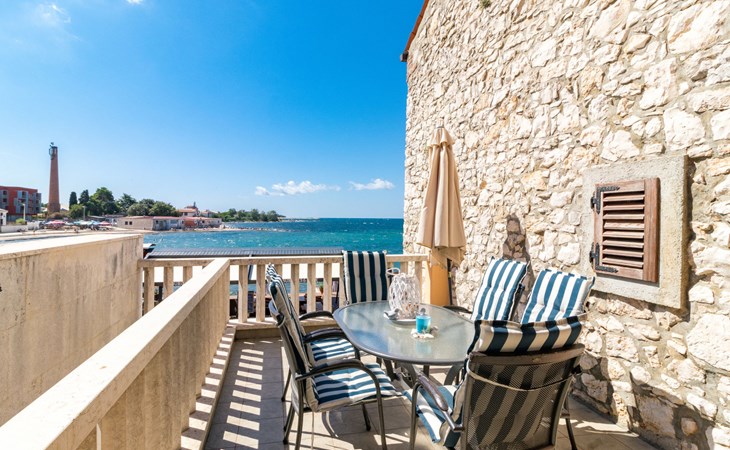 Oud appartementencomplex "Antonella & Napoletano", van 4 verdiepingen, gerenoveerd in 2019. In het centrum van Umag, in het centrum van de stad, 20 m van zee, in een voetgangerszone. In het huis: Internet (WiFi). Openbare parkeerplaatsen 100 m extra. Winkel 50 m, supermarkt 100 m, restaurant, café 20 m, bushalte 1 km, treinstation 33 km, betonnen strand 20 m. Jachthaven 300 m, golfterrein (18 holes) 13 km, wandelroutes 20 m vanaf het huis. De eigenaar accepteert geen jeugdgroepen.