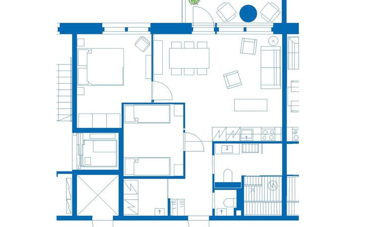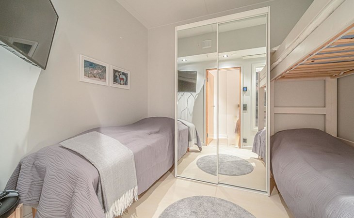 The modern living room/kitchen is well-equipped and stylish, allowing you to cook delicious meals during your stay. Two spacious bedrooms offer comfortable nights for all guests. One bedroom has a double bed and a TV, the other has a single bed and a bunk bed, along with a TV. In the living room/kitchen, you can use the 140 cm wide extendable corner sofa. The apartment is equipped to accommodate seven people comfortably.