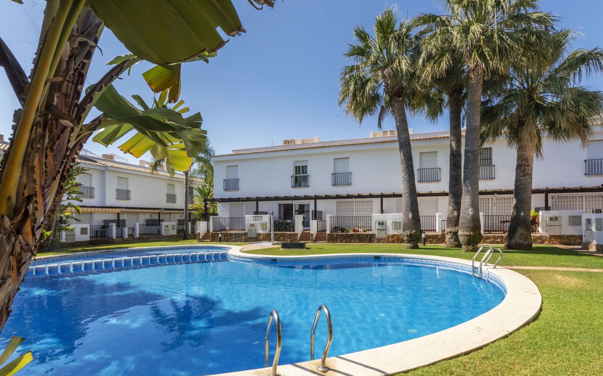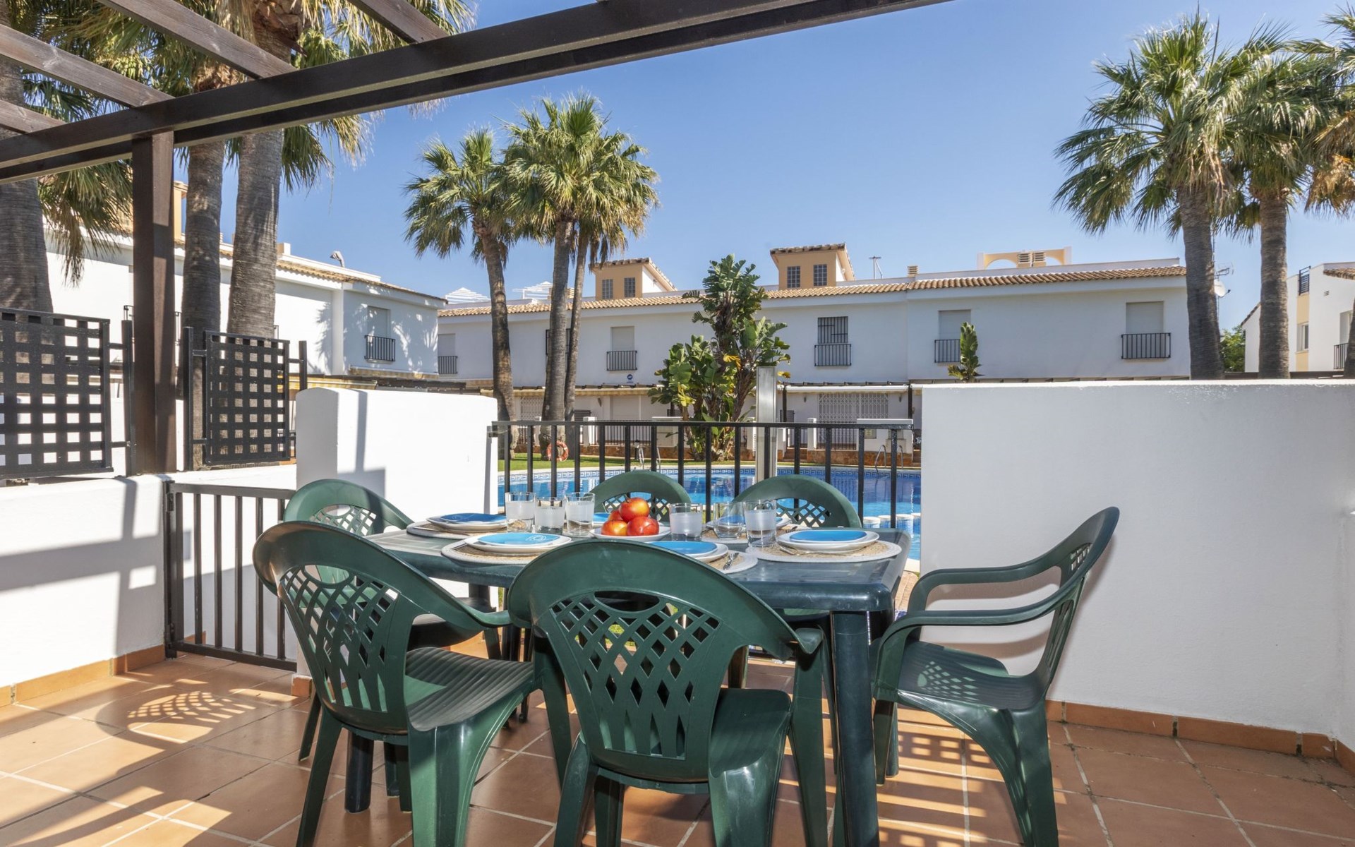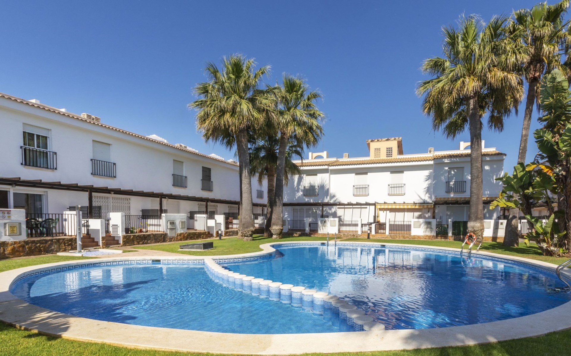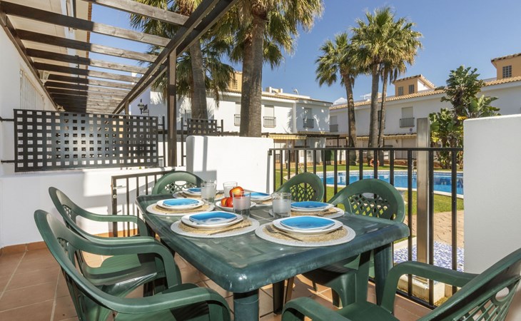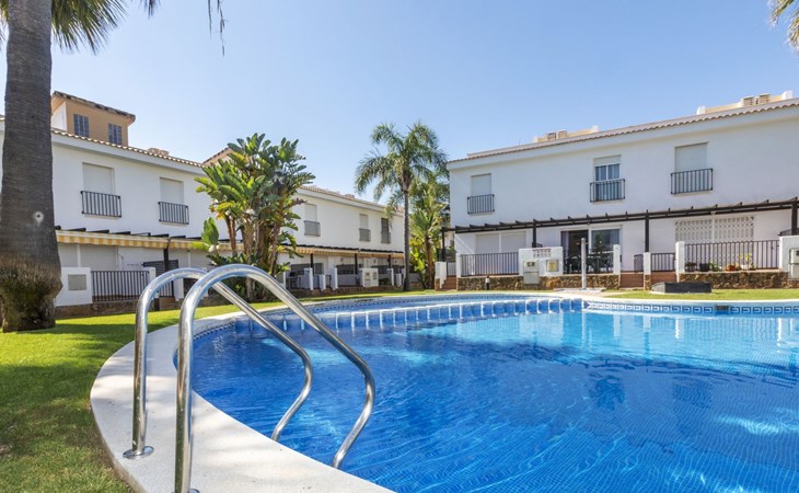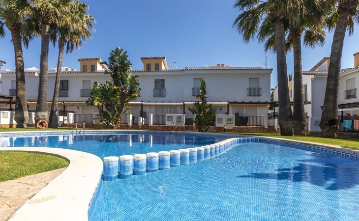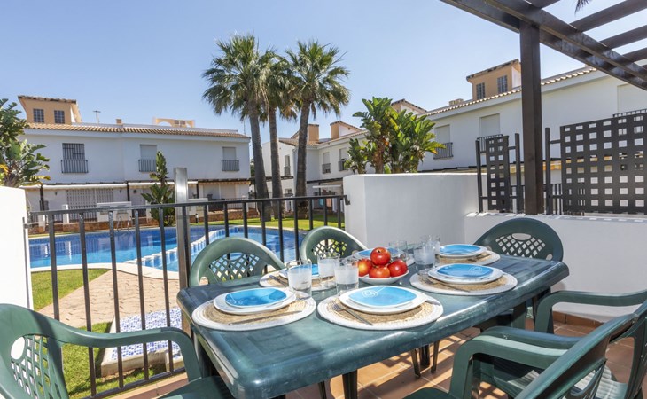 Capicorb: Rijtjeshuis "Palm Beach". 80 huizen in de plaats. In de plaats, 2 km van het centrum van Alcosserbre, 400 m van zee, 400 m van het strand. Voor medegebruik: ligweide, 2 zwembaden (30 m2, 50 - 190 cm diepte, seizoensgebonden beschikbaarheid: 01.Jan. - 31.Dec. openingstijden zwembad: 10:00-15:00 en 17:00-21:00). Onregelmatig zwembad. Kinderzwembad, buitendouche, parkeerplaats nr. 135. Winkel, levensmiddelenwinkel 800 m, supermarkt 2 km, restaurant 700 m, bar, bakkerij 800 m, bushalte "Cami L'atall con C/ Avellaner" 450 m, treinstation "Alcalá de Xivert" 5 km, zandstrand "Cala del Moro" 600 m, stenenstrand "Tres Platges" 400 m, duikschool 3.5 km. Jachthaven 3.5 km. Attracties in de buurt: Peñiscola 32 km, Ciutat de les Arts i les Ciències 120 km, Benicassim 35 km, Vilafamés 40 km, Alcalá de Xivert-Castillo y campanario 12 km, Coves de Sant Josep 82 km. Wandelgebied Parque Natural Sierra de Irta 6 km. Auto noodzakelijk, geen lift. Groepen jongeren uitsluitend op aanvraag. De omgeving is gevoelig voor geluidsoverlast. Gelieve geen lawaai te maken en de rust te bewaren.
