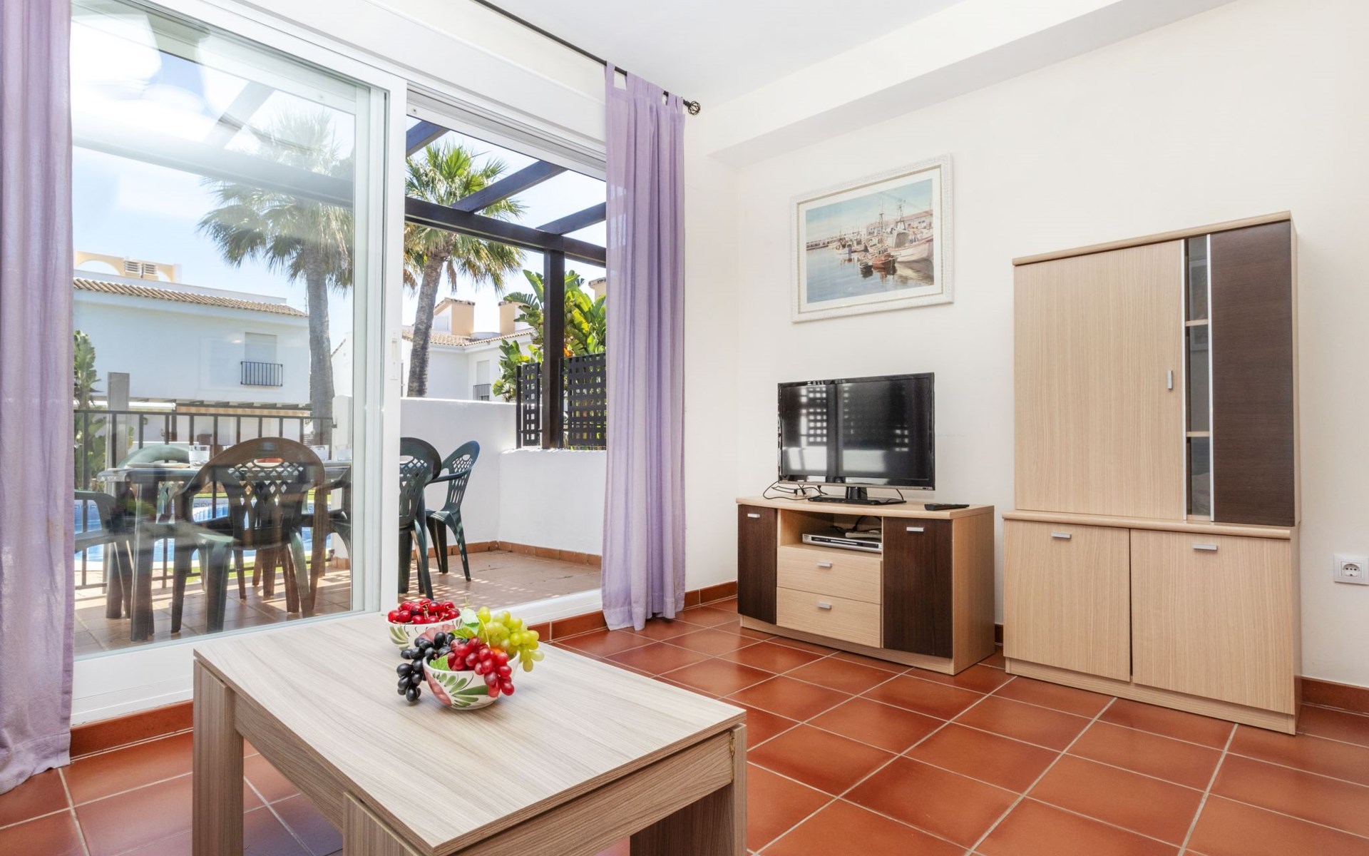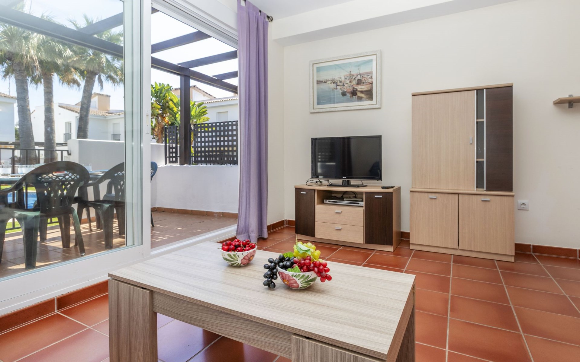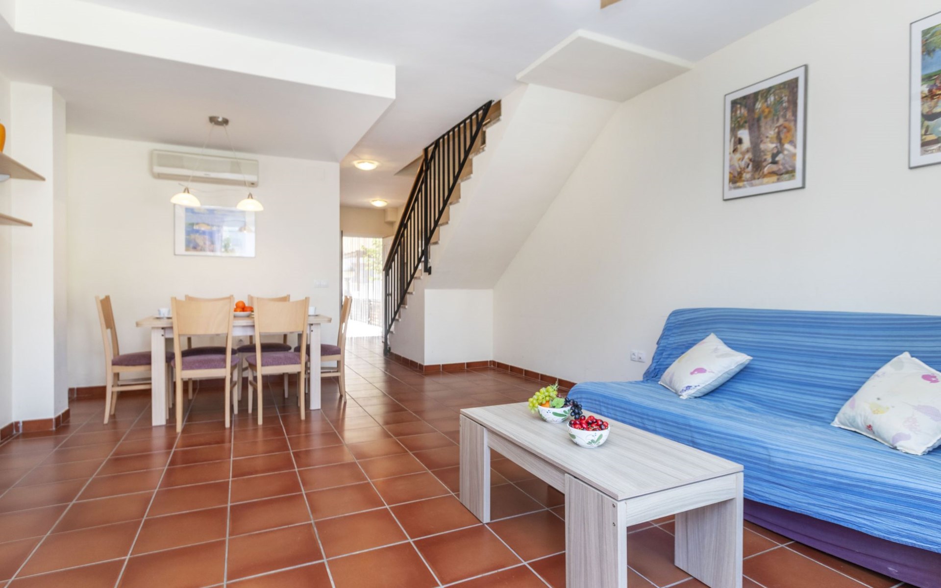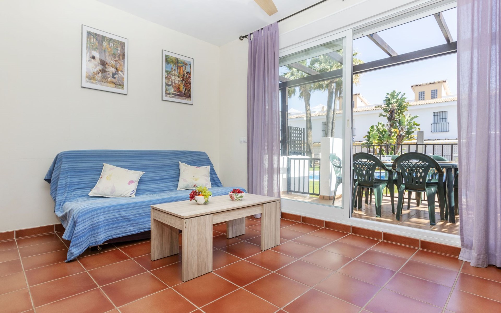Capicorb: Rijtjeshuis "Palm Beach". 80 huizen in de plaats. In de plaats, 2 km van het centrum van Alcosserbre, 400 m van zee, 400 m van het strand. Voor medegebruik: ligweide, 2 zwembaden (30 m2, 50 - 190 cm diepte, seizoensgebonden beschikbaarheid: 01.Jan. - 31.Dec. openingstijden zwembad: 10:00-15:00 en 17:00-21:00). Onregelmatig zwembad. Kinderzwembad, buitendouche, parkeerplaats nr. 135. Winkel, levensmiddelenwinkel 800 m, supermarkt 2 km, restaurant 700 m, bar, bakkerij 800 m, bushalte "Cami L'atall con C/ Avellaner" 450 m, treinstation "Alcalá de Xivert" 5 km, zandstrand "Cala del Moro" 600 m, stenenstrand "Tres Platges" 400 m, duikschool 3.5 km. Jachthaven 3.5 km. Attracties in de buurt: Peñiscola 32 km, Ciutat de les Arts i les Ciències 120 km, Benicassim 35 km, Vilafamés 40 km, Alcalá de Xivert-Castillo y campanario 12 km, Coves de Sant Josep 82 km. Wandelgebied Parque Natural Sierra de Irta 6 km. Auto noodzakelijk, geen lift. Groepen jongeren uitsluitend op aanvraag. De omgeving is gevoelig voor geluidsoverlast. Gelieve geen lawaai te maken en de rust te bewaren.