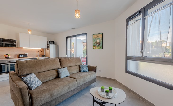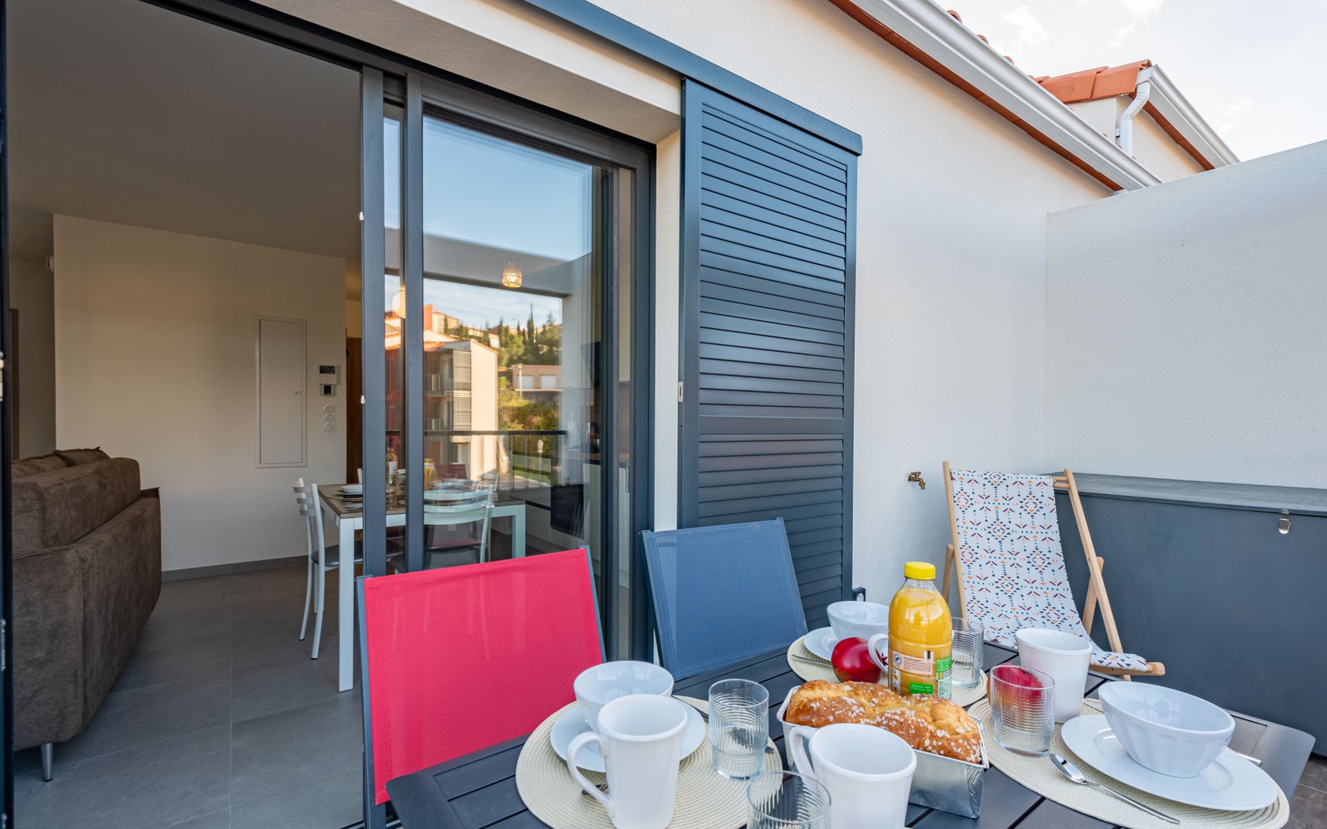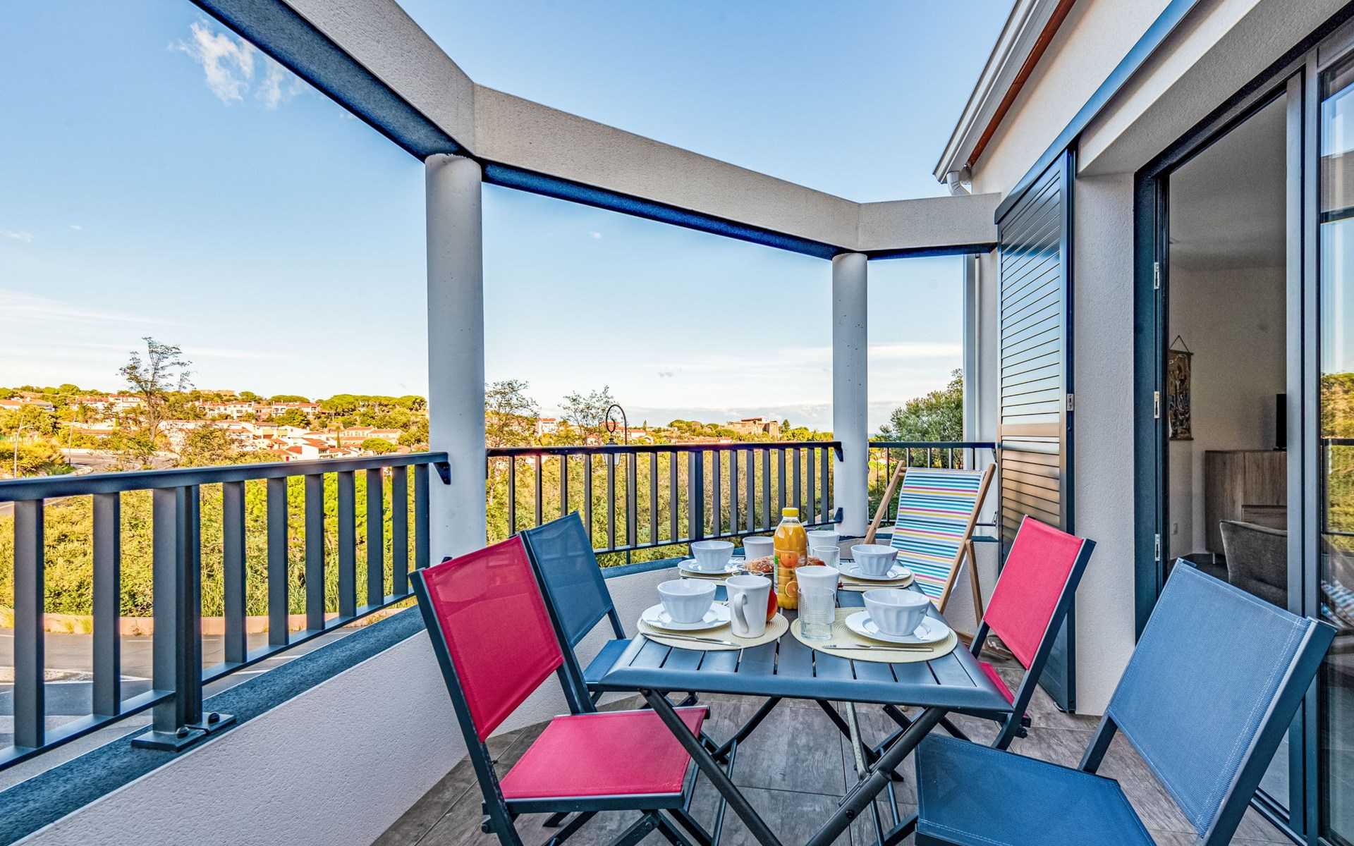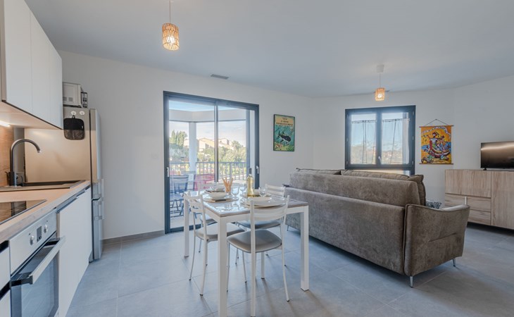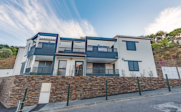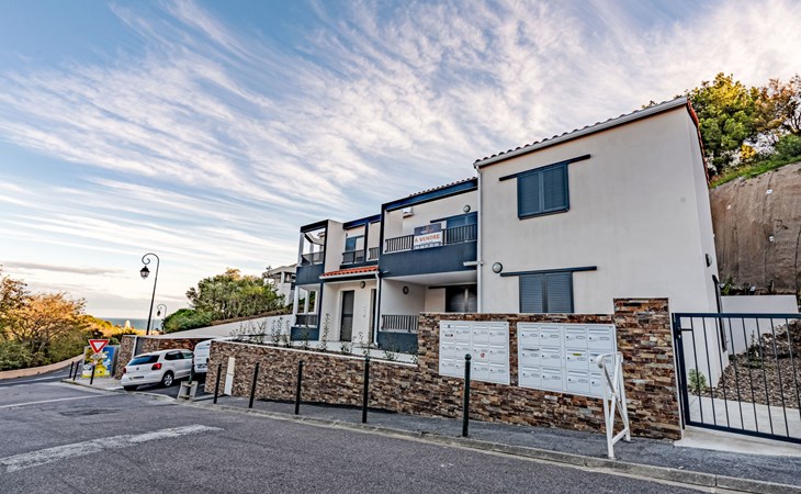 Flatgebouw " Collioure le haut", van 2 verdiepingen. 1.1 km van zee, 1.1 km van het strand, aan een hoofdweg. In het huis: lift. Parkeerplaats. Levensmiddelenwinkel 750 m, supermarkt 2.5 km, restaurant 750 m, bushalte 850 m, treinstation 1 km, zandstrand "Saint-Vincent" 2 km kiezelstrand "Port d'avall" 1.1 km.