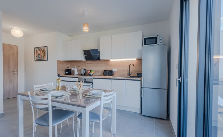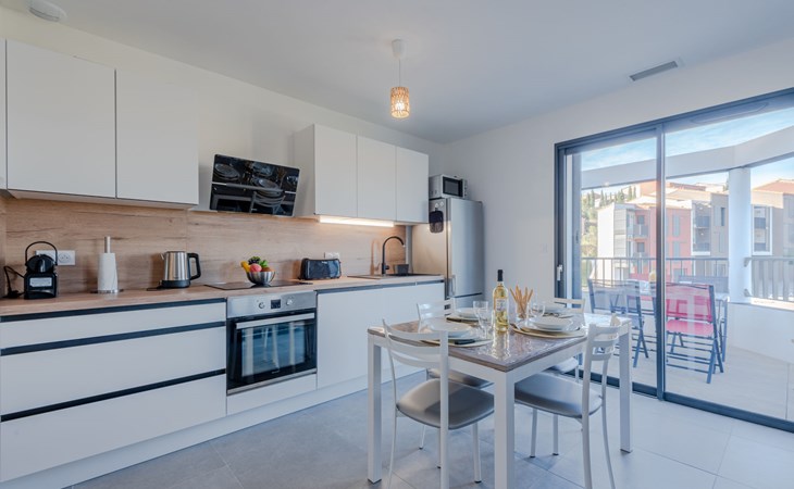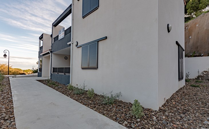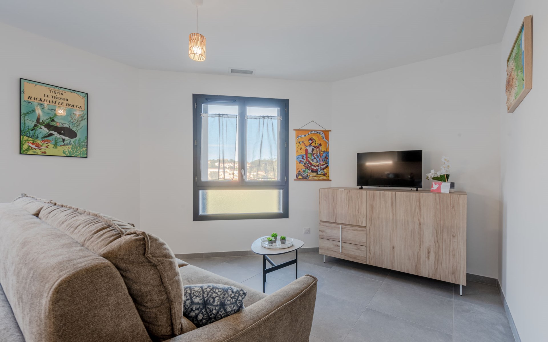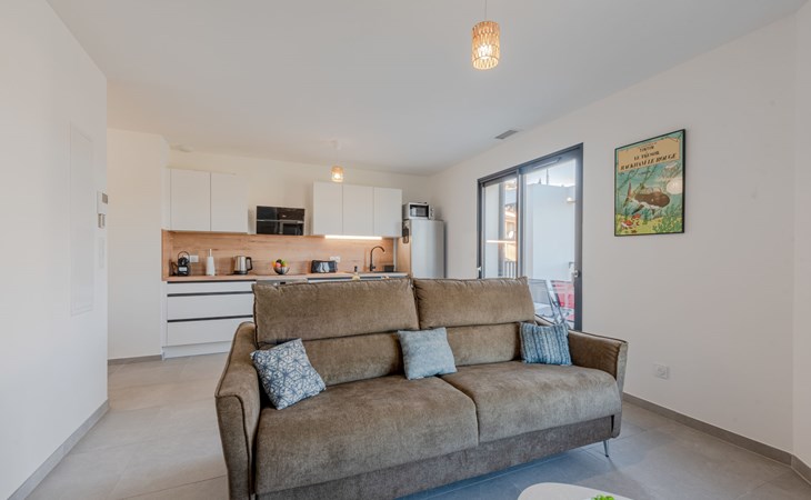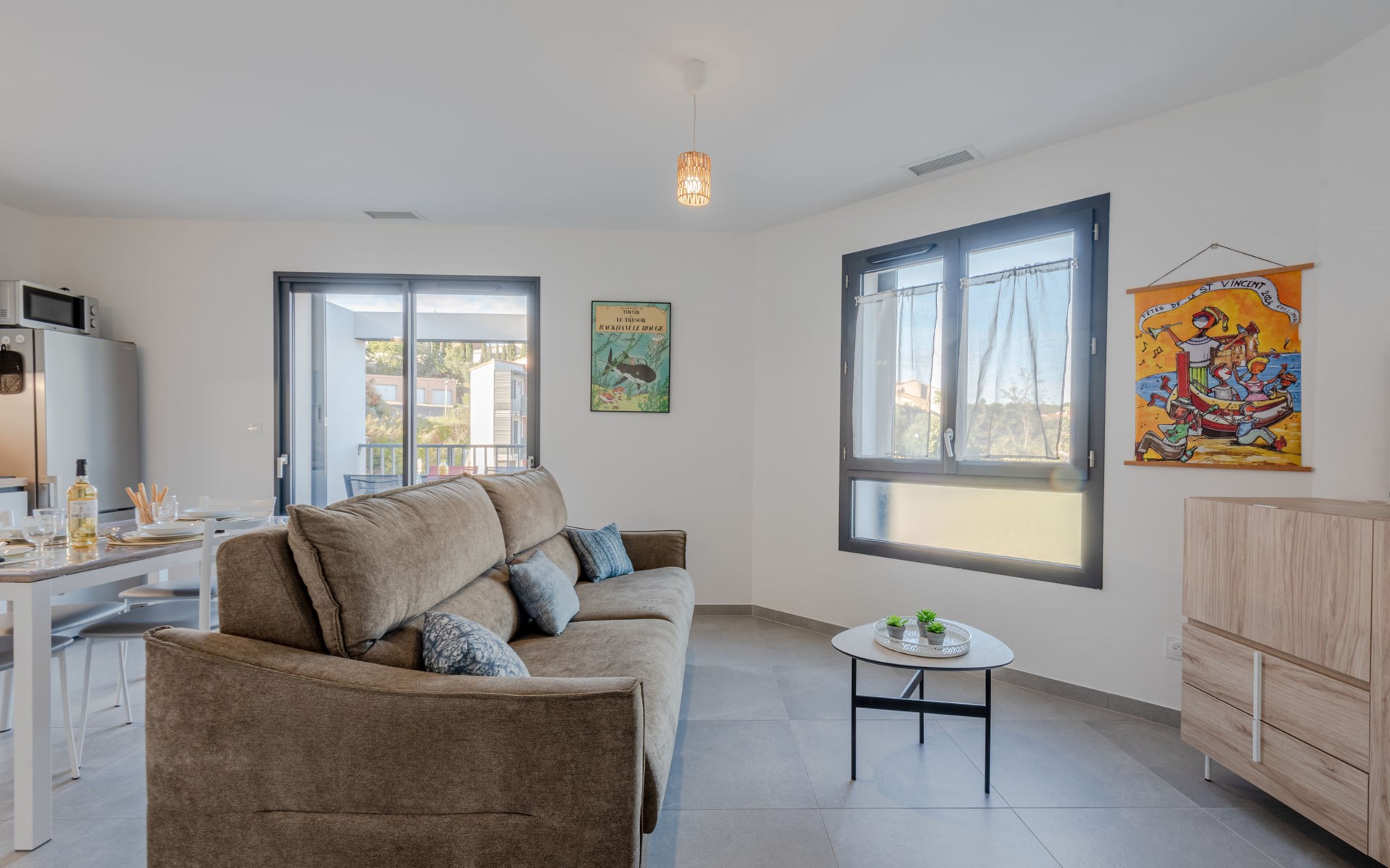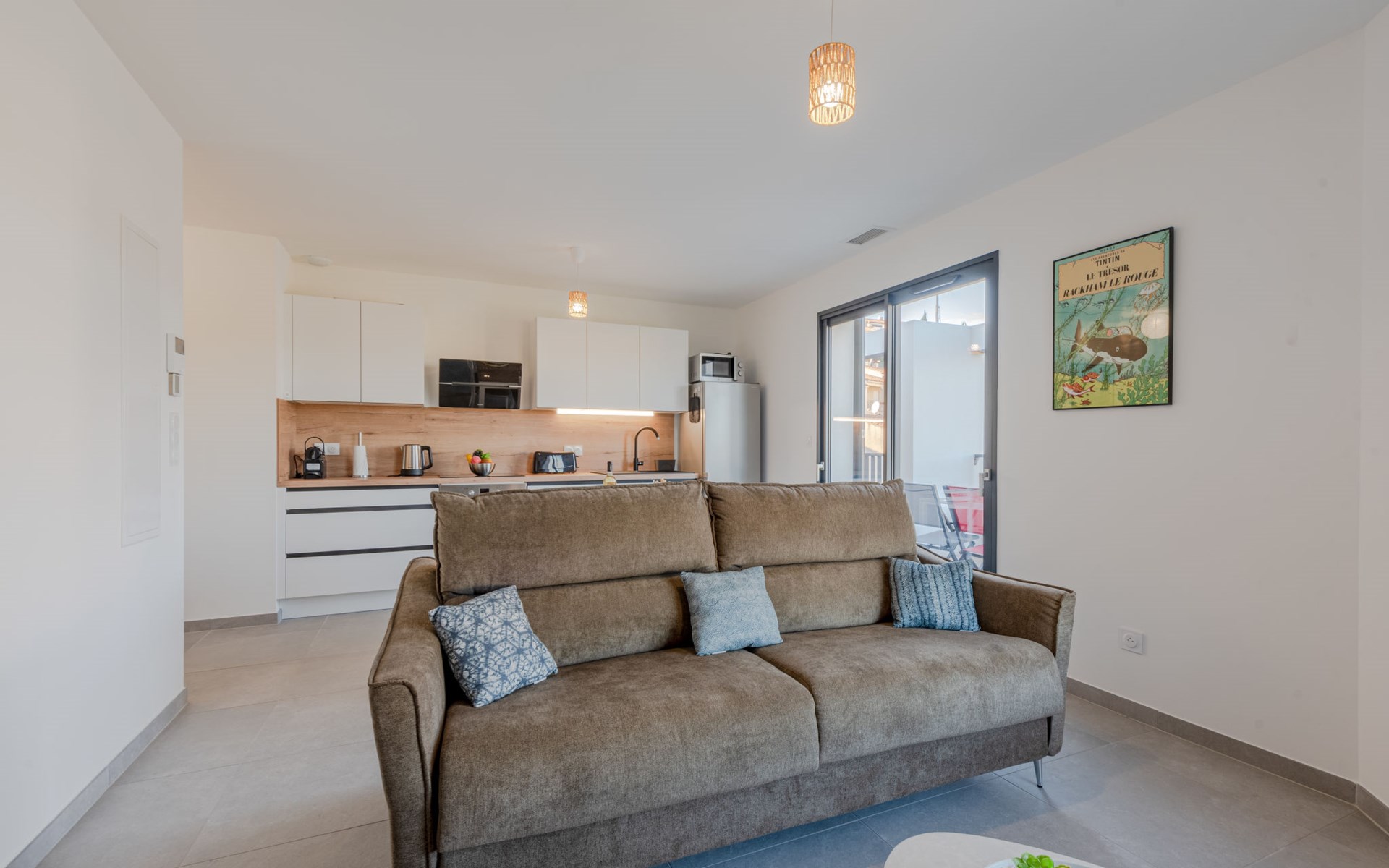 Flatgebouw " Collioure le haut", van 2 verdiepingen. 1.1 km van zee, 1.1 km van het strand, aan een hoofdweg. In het huis: lift. Parkeerplaats. Levensmiddelenwinkel 750 m, supermarkt 2.5 km, restaurant 750 m, bushalte 850 m, treinstation 1 km, zandstrand "Saint-Vincent" 2 km kiezelstrand "Port d'avall" 1.1 km.