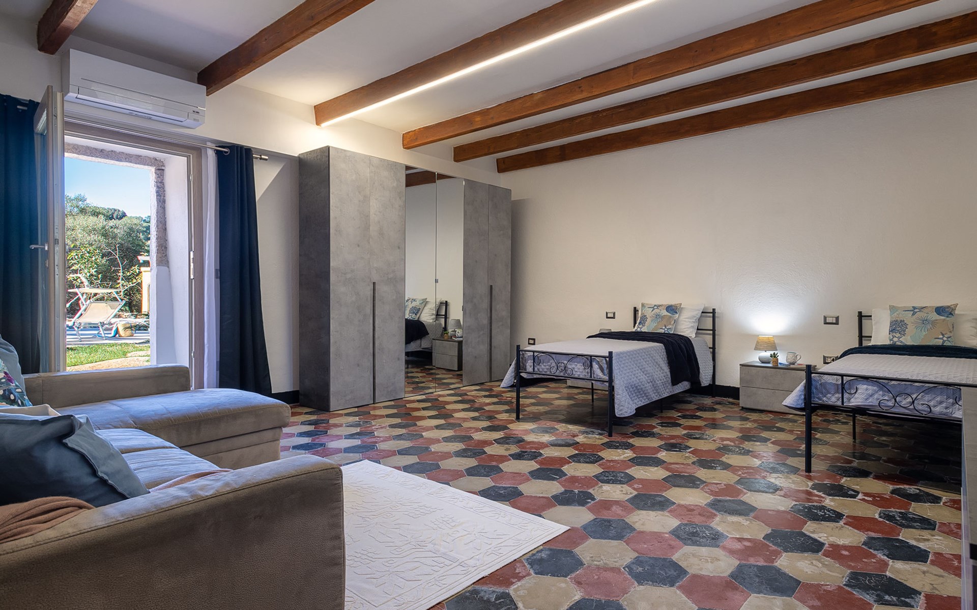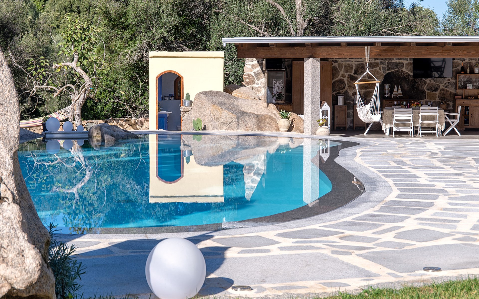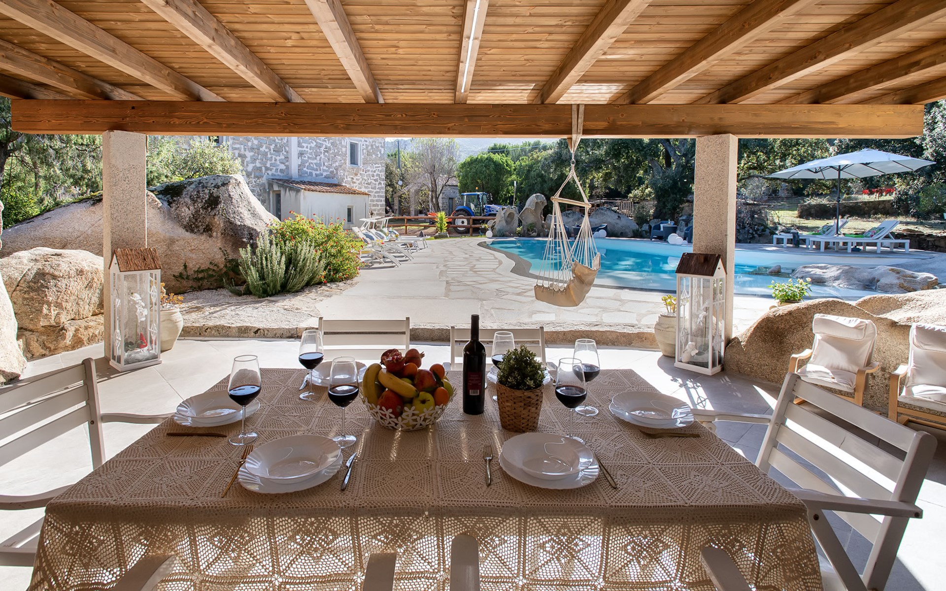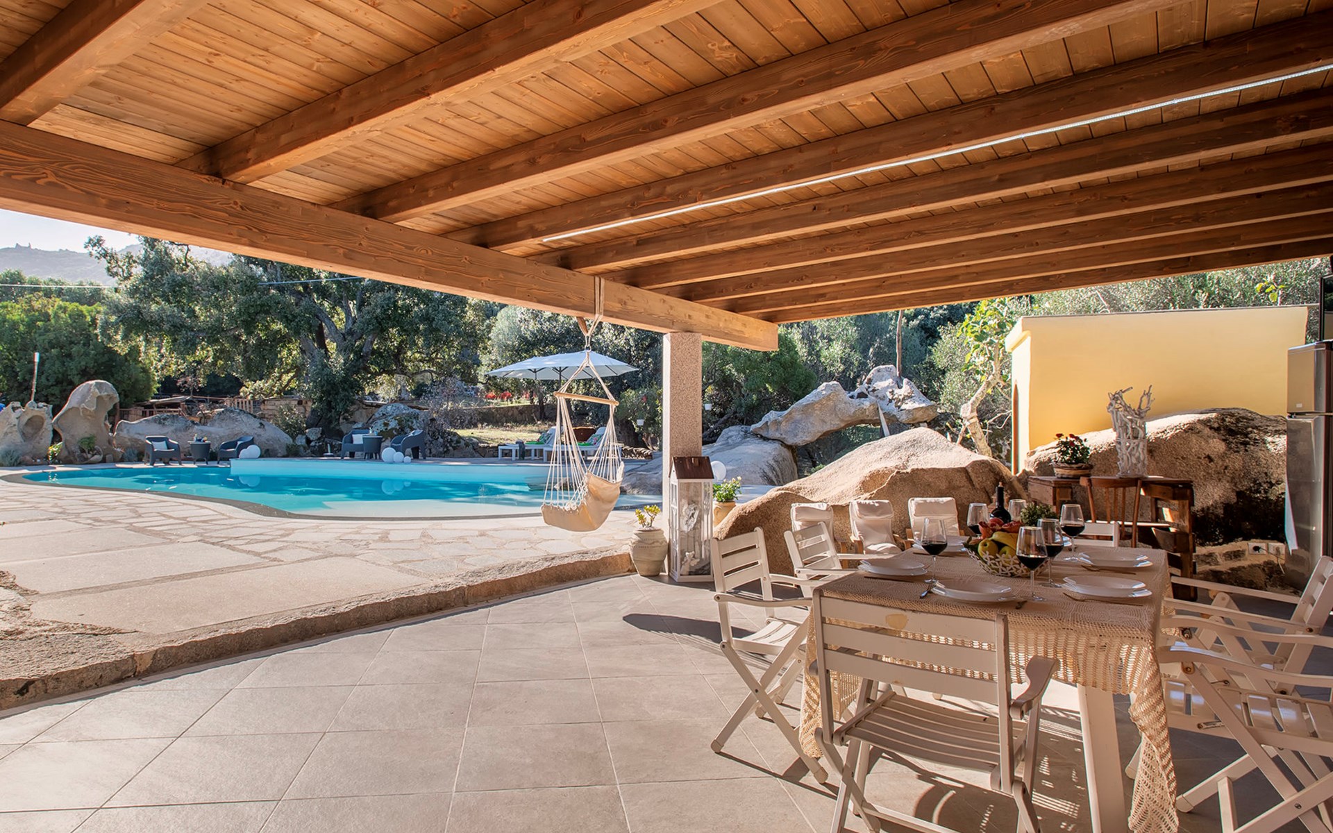 Groot, mooi, comfortabele eengezinswoning. In de plaats, 9 km van het centrum van Arzachena, rustige, zonnige ligging, 15 km van zee, te midden van groen. Voor alleengebruik: terrein, groot tuin met gazon en bomen, openluchtzwembad rond (15 x 7 m, seizoensgebonden beschikbaarheid: 01.Apr. - 31.Okt.). Douche/WC bij het zwembad, patio, tuinmeubelen, barbecue (schommel). Toegangsweg tot aan het huis. Parkeerplaats bij het huis. Supermarkt 9 km, restaurant 11 km, bar 11 km, bushalte "Suldarana" 1.1 km, zandstrand "Tanca manna" 17.5 km. Attracties in de buurt: baia sardinia 23 km, porto cervo 26 km, olbia 27 km, arzachena 9 km, cannigione 15 km, palau 23 km. Auto noodzakelijk. Op het grondstuk dierhouderij.