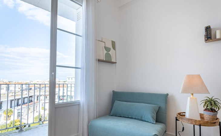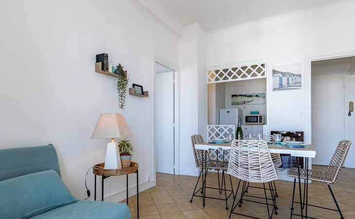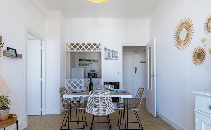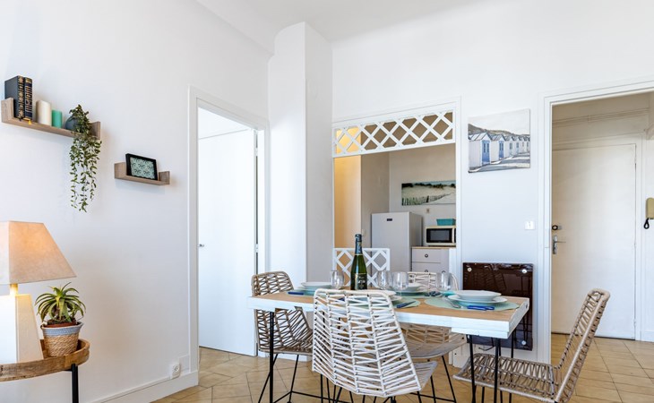 Residentie "Foncillon", van 5 verdiepingen. In het centrum van Royan, 300 m van zee, 300 m van het strand. In het huis: lift, bergruimte voor fietsen. Openbare parkeerplaatsen in de straat. Winkel, levensmiddelenwinkel, restaurant 100 m, bushalte "Gambetta" 80 m, station "Royan" 1.4 km, zandstrand "La Grande Conche" 300 m, park "Luna Park (Juillet-Août)" 21 km, overdekt zwembad 1.2 km, thermaalbad "Thalassothérapie Thalazur Royan" 1.2 km. Jachthaven 150 m, golfterrein (18 holes) 9 km, surfschool, zeilschool 250 m, tennis 1.2 km, midgetgolf 2 km, manege 9 km. Attracties in de buurt: Zoo de La Palmyre 15 km, Embarcadère Royan vers Le Verdon 400 m, Centre aquatique Iléo - Ile d'Oléron 48 km, Fort Boyard - Fouras 56 km, Aéroport La Rochelle - Ile de Ré 79 km, Aéroport Bordeaux - Merignac 108 km. De sleuteloverdracht vindt plaats bij het agentschap Interhome in Vaux sur Mer, 3 km.
