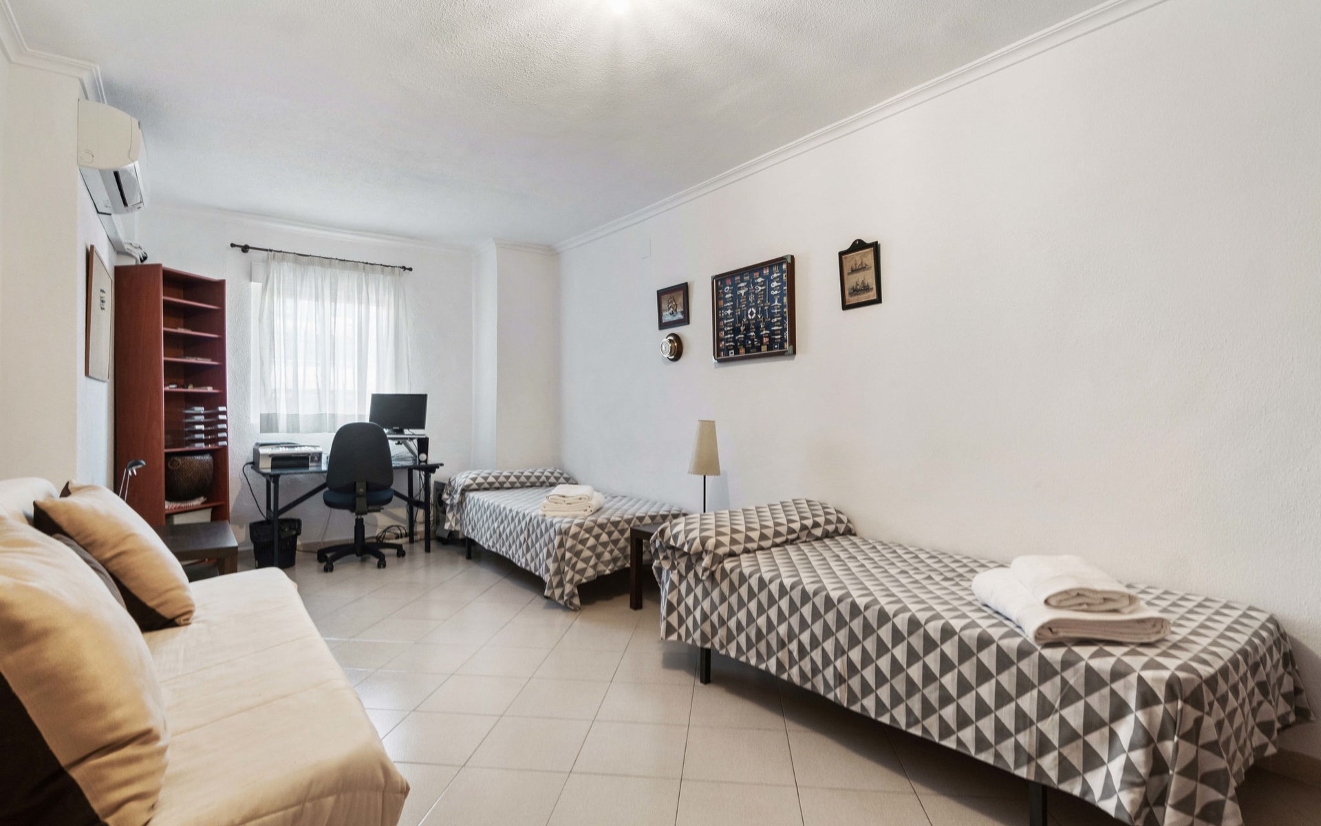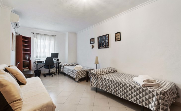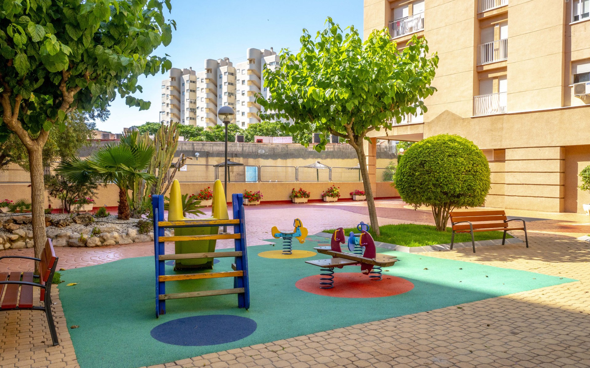 Flatgebouw "Los Almendros". Centrale, drukke, zonnige ligging, 500 m van zee, van het strand. Voor medegebruik: tuin, openluchtzwembad (9 x 19 m, 120 - 280 cm diepte, seizoensgebonden beschikbaarheid: 01.Jan. - 31.Dec. openingstijden zwembad: 10:00-22:00). Kinderzwembad, buitendouche, tennisbaan (extra), kinderspeelplaats. In het huis: lift, alarmsysteem. Overdekte parkeerplaats bij het huis, gemeenschappelijke garage op 60 m, openbare parkeerplaatsen in de straat. Winkel 200 m, levensmiddelenwinkel, supermarkt, restaurant, bar, café, tramhalte "Sergio Cardell" 100 m, bushalte 30 m, zandstrand "Playa de la Almadraba" 500 m (klein). Jachthaven 800 m, golfterrein (18 holes) 3 km. Groepen jongeren uitsluitend op aanvraag. De omgeving is gevoelig voor geluidsoverlast. Gelieve geen lawaai te maken en de rust te bewaren.