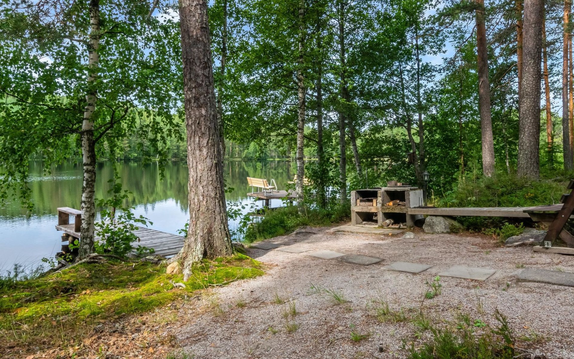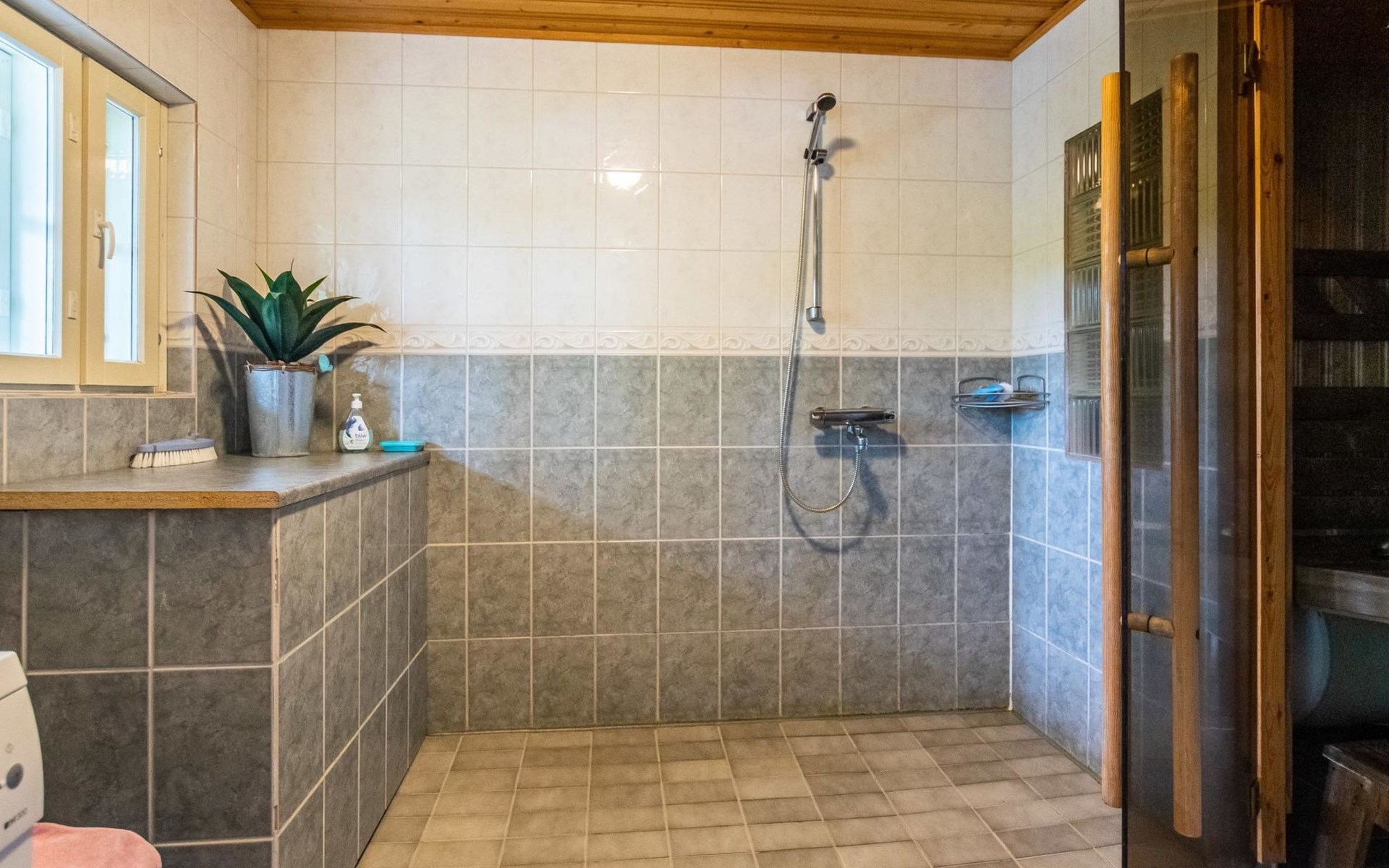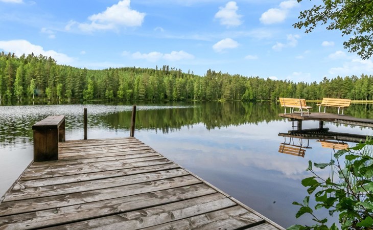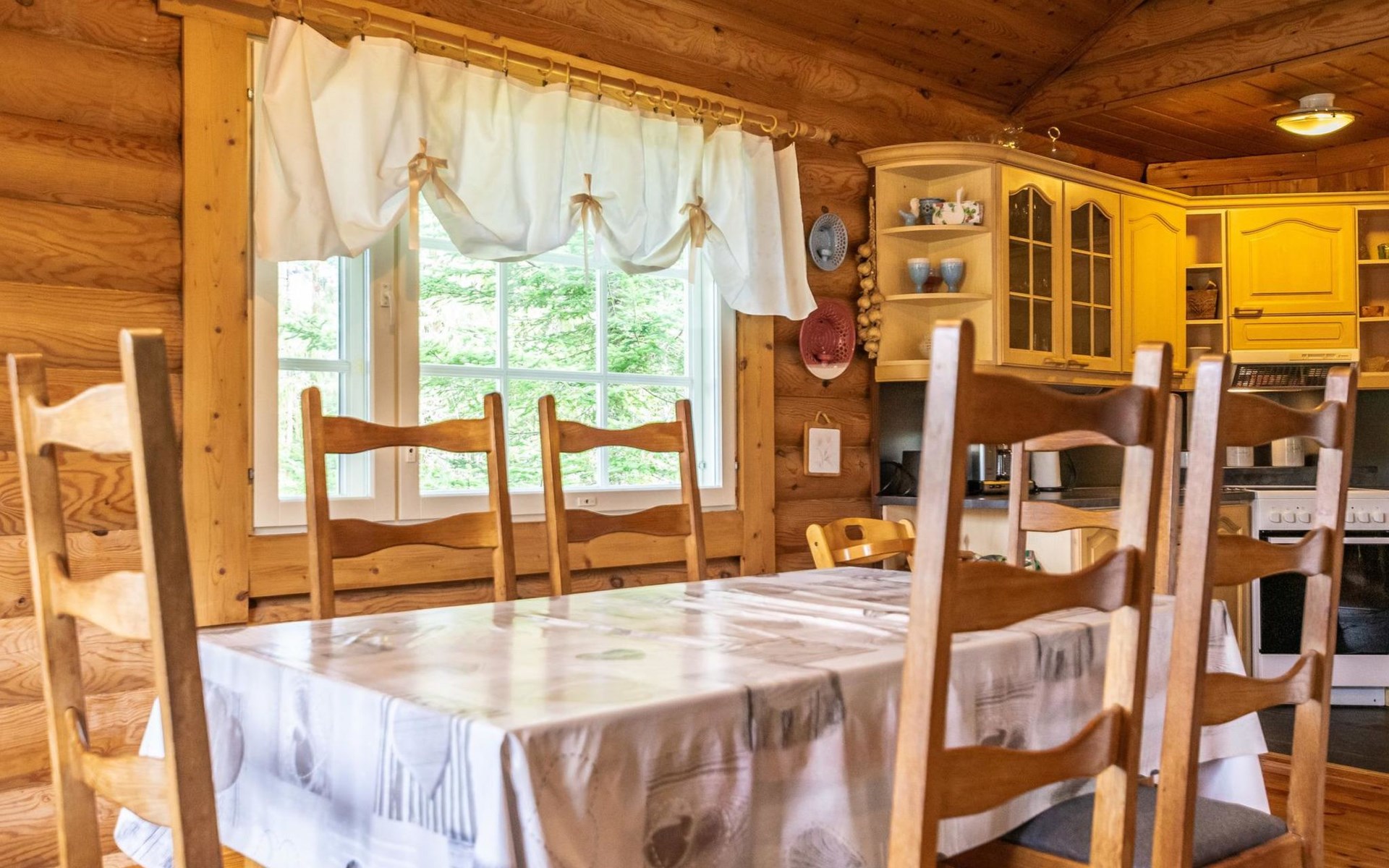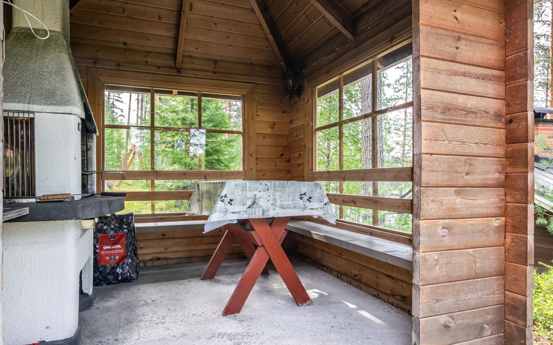 Two-storey log cottage 1999, living room/ kitchen, 2 bedrooms double bed in each, downstairs room with fireplace and sofa, washroom, sauna (elec. stove).