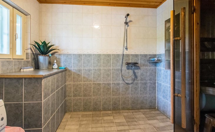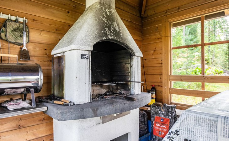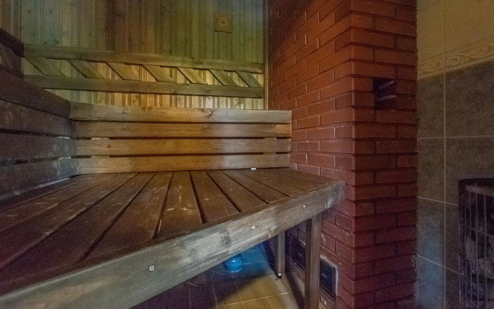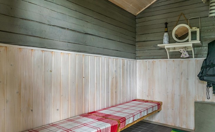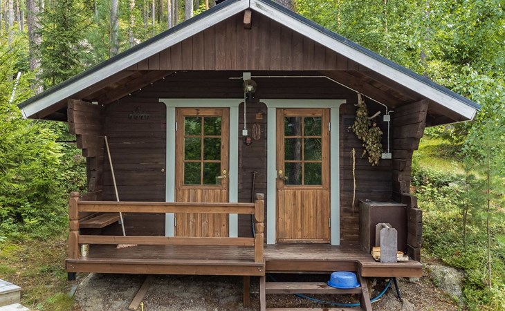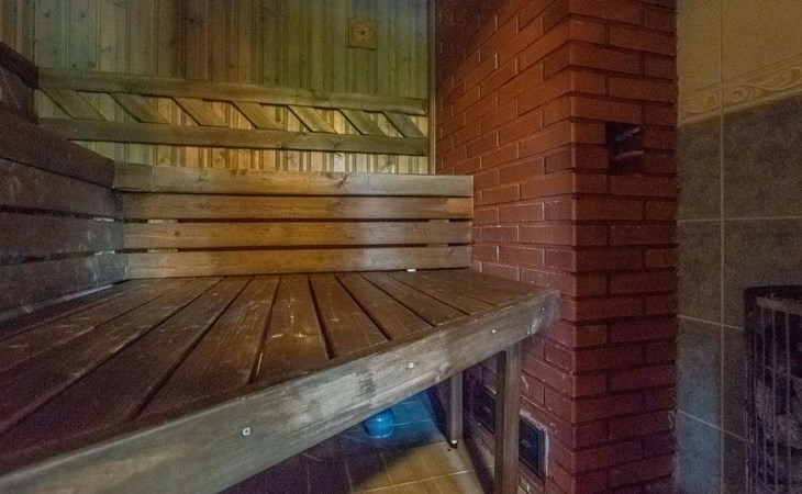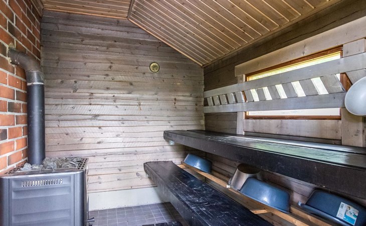 Lakeshore sauna, with dressing room. Storage heater also has baking oven.