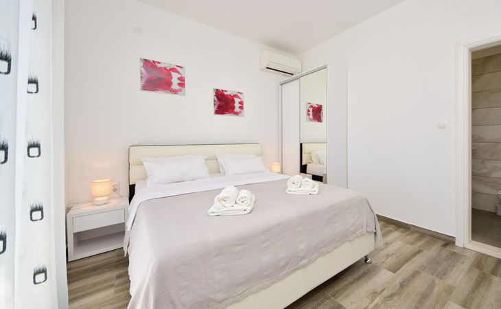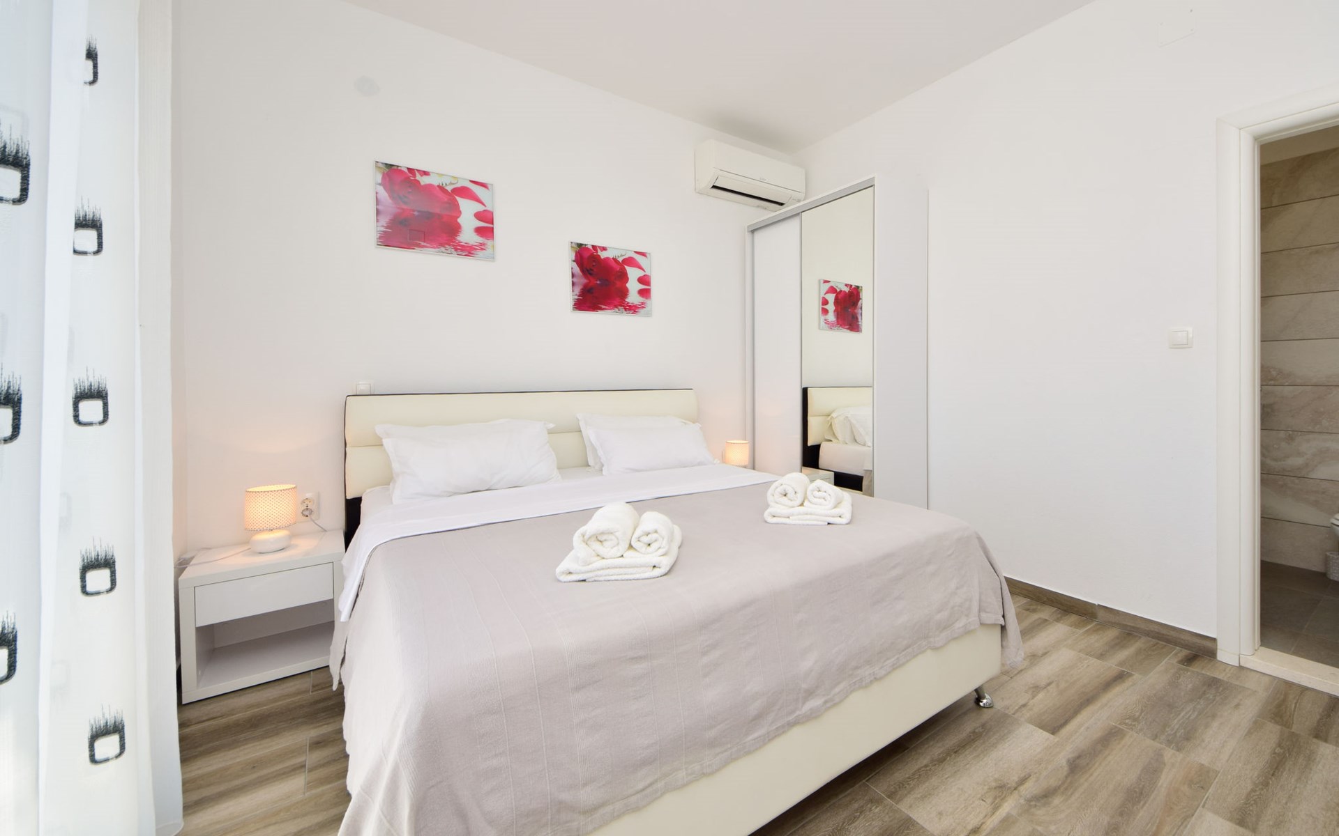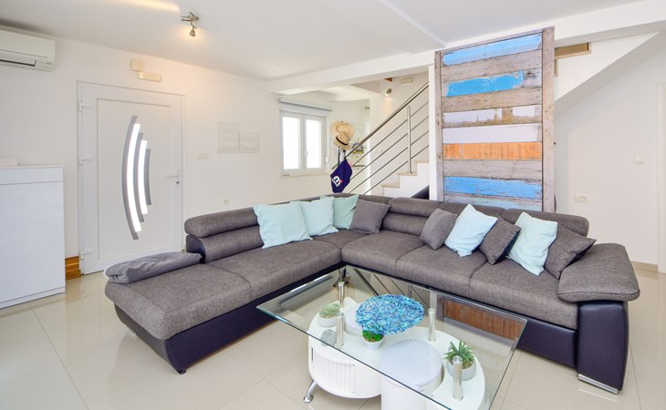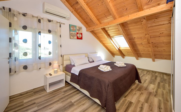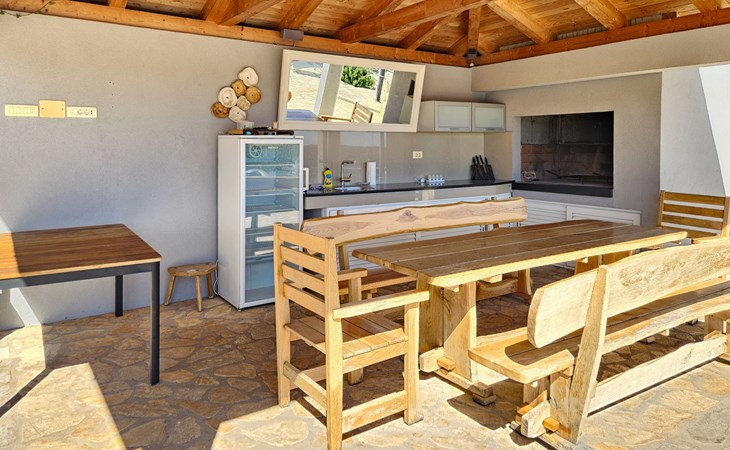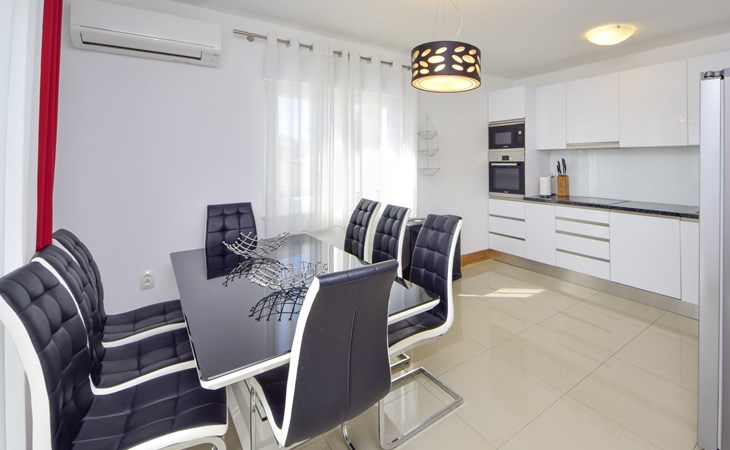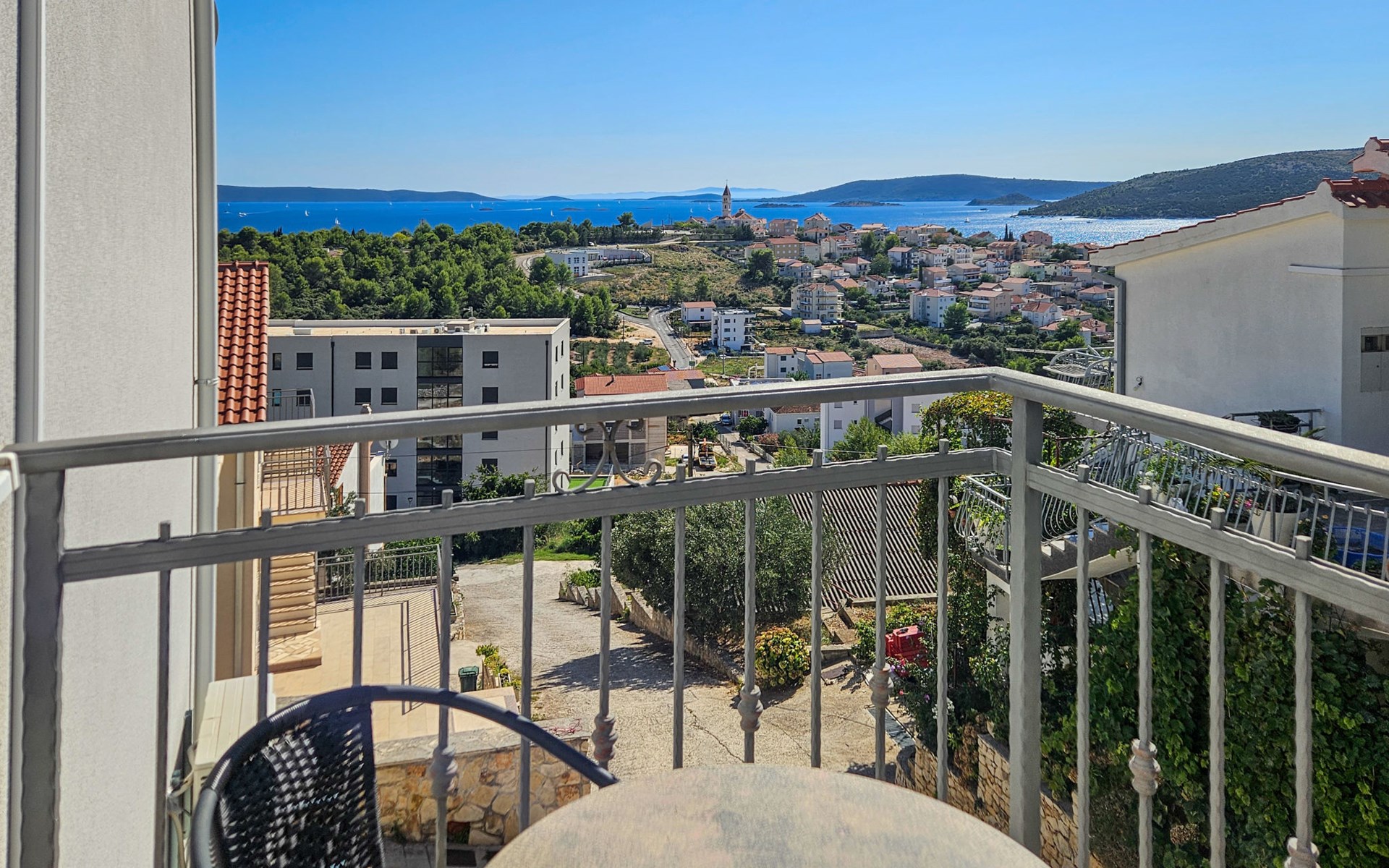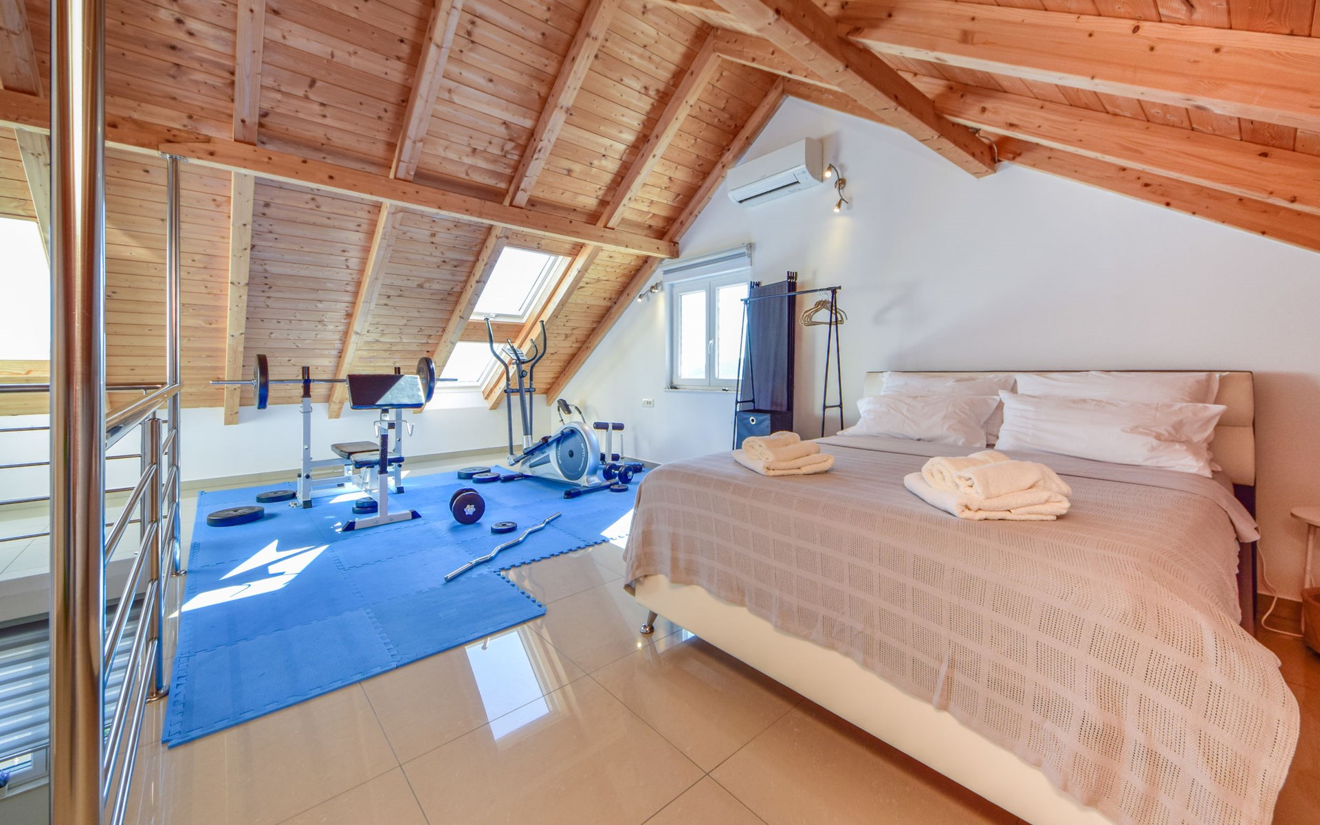 Seget Vranjica: Zeer mooi villa "Maris", van 3 verdiepingen. 5.2 km van het centrum van Trogir, rustige, zonnige ligging tegen een helling, 1.1 km van zee, 1.1 km van het strand, aan een doodlopende weg. Voor alleengebruik: terrein 400 m2 (omheind), openluchtzwembad hoekig (32 m2, seizoensgebonden beschikbaarheid: 01.Mei. - 31.Okt.) met trap. Buitendouche, hot tub, poolhouse met koelkast, barbecue, onderhoud zwembad door de eigenaar/tuinman. In het huis: internetaansluiting, fitnessruimte, wasmachine. 50 m lange steile toegangsweg tot aan het huis. Parkeerplaats (voor 4 auto's) bij het huis op het terrein. Winkel 400 m, winkelcentrum 4.6 km, restaurant 1.1 km, bushalte 260 m, kiezelstrand 1.1 km. Vliegveld 11 km van het huis.