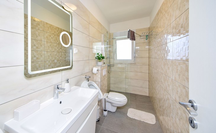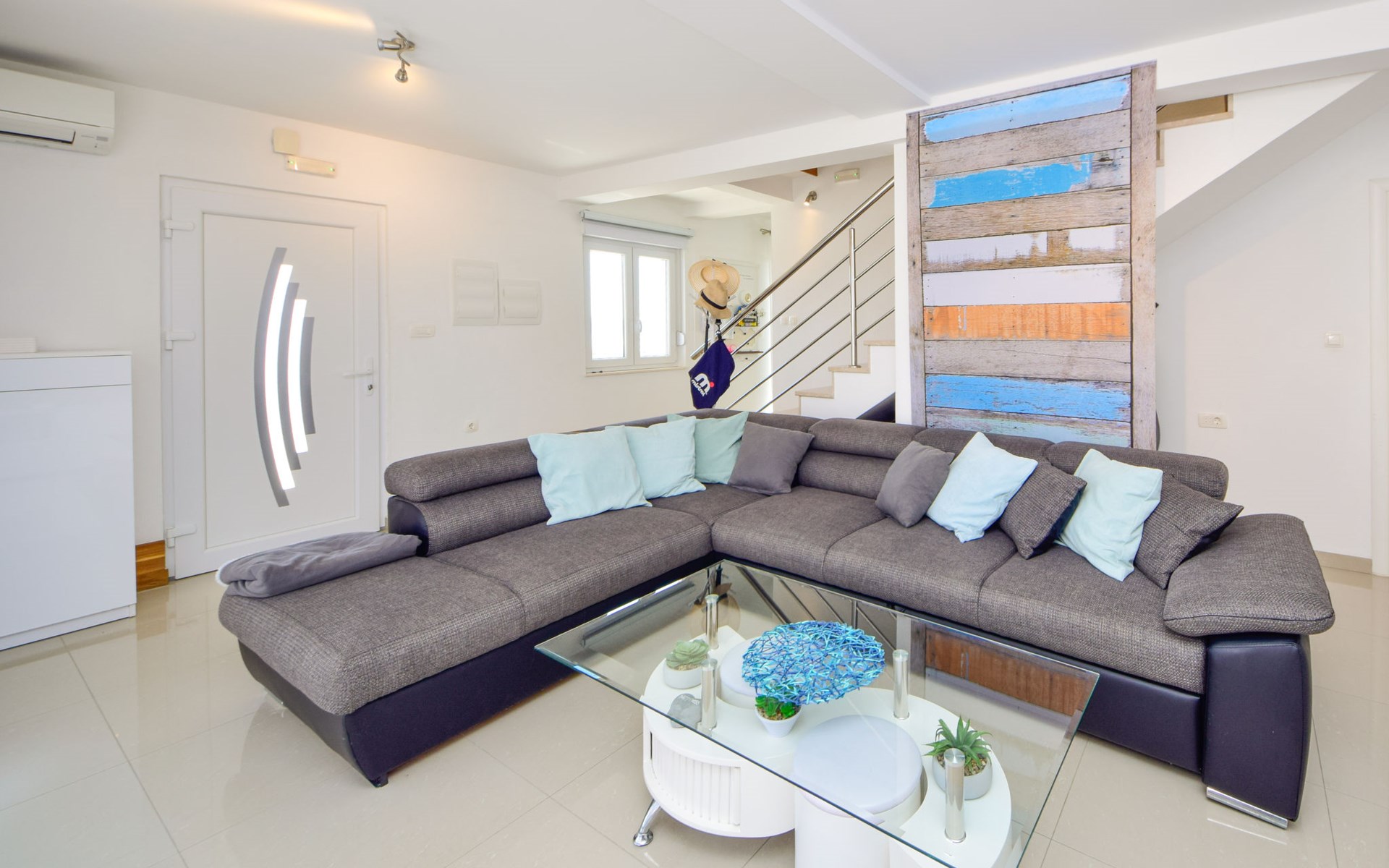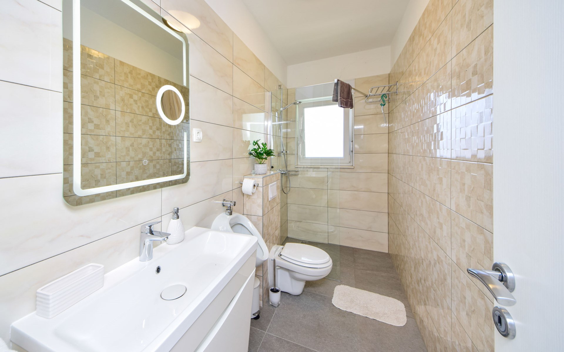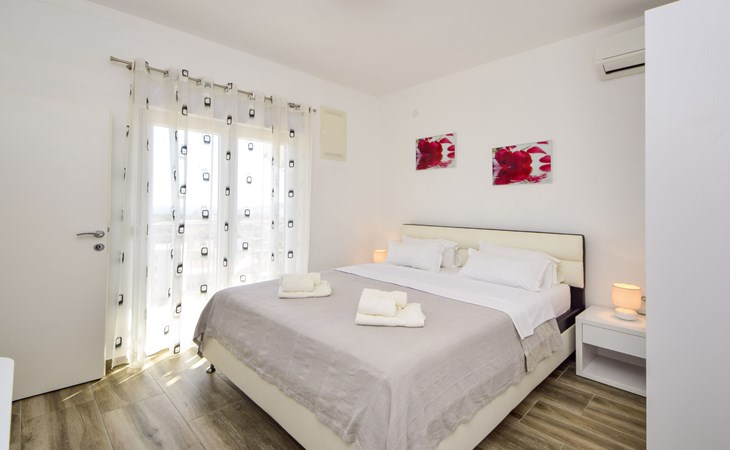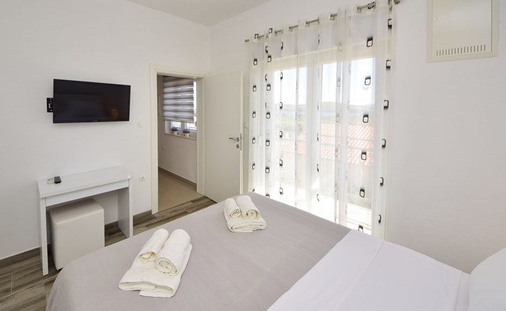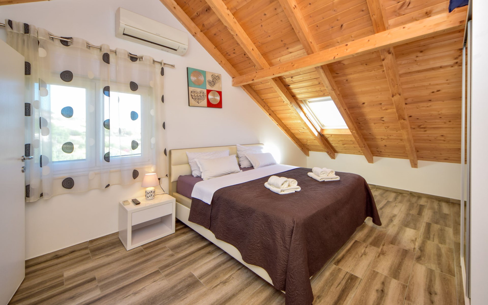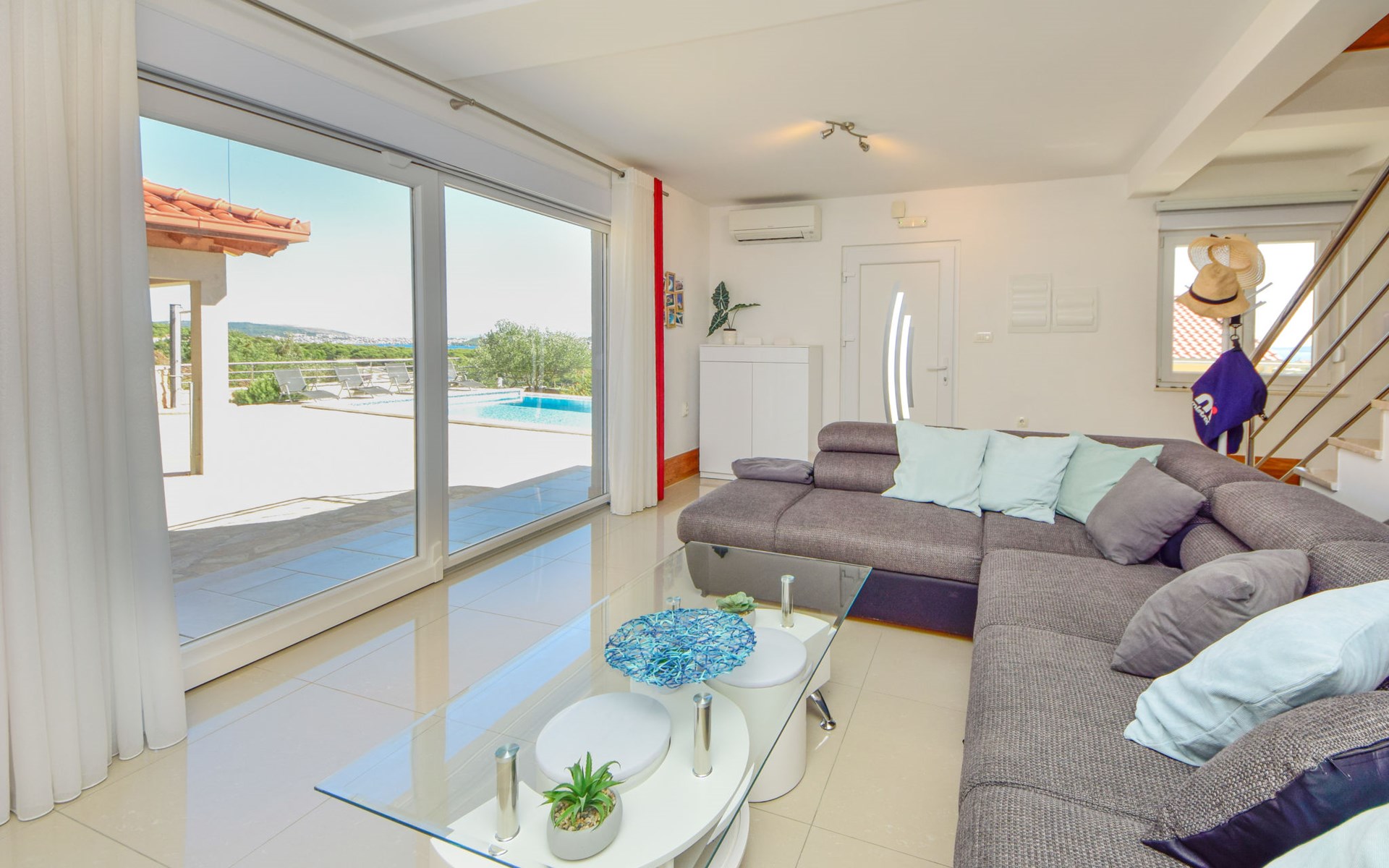 Seget Vranjica: Zeer mooi villa "Maris", van 3 verdiepingen. 5.2 km van het centrum van Trogir, rustige, zonnige ligging tegen een helling, 1.1 km van zee, 1.1 km van het strand, aan een doodlopende weg. Voor alleengebruik: terrein 400 m2 (omheind), openluchtzwembad hoekig (32 m2, seizoensgebonden beschikbaarheid: 01.Mei. - 31.Okt.) met trap. Buitendouche, hot tub, poolhouse met koelkast, barbecue, onderhoud zwembad door de eigenaar/tuinman. In het huis: internetaansluiting, fitnessruimte, wasmachine. 50 m lange steile toegangsweg tot aan het huis. Parkeerplaats (voor 4 auto's) bij het huis op het terrein. Winkel 400 m, winkelcentrum 4.6 km, restaurant 1.1 km, bushalte 260 m, kiezelstrand 1.1 km. Vliegveld 11 km van het huis.