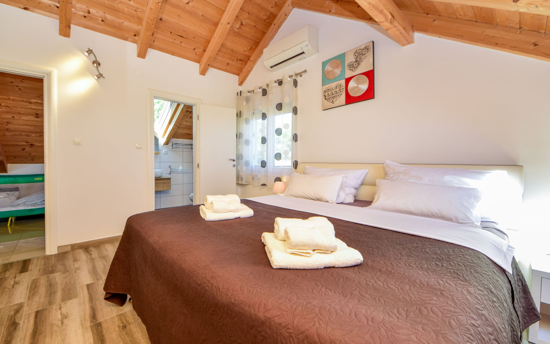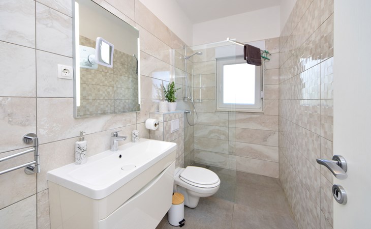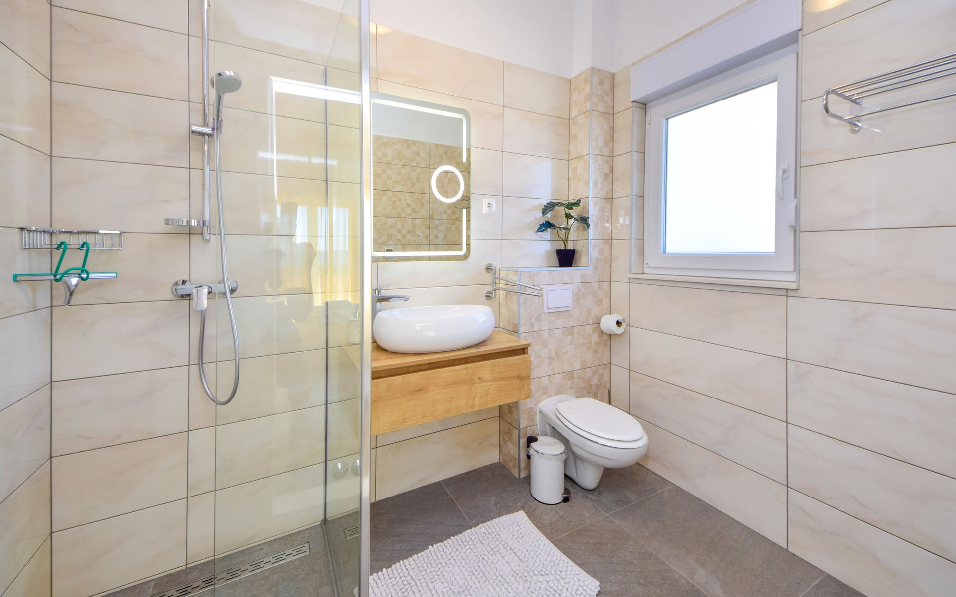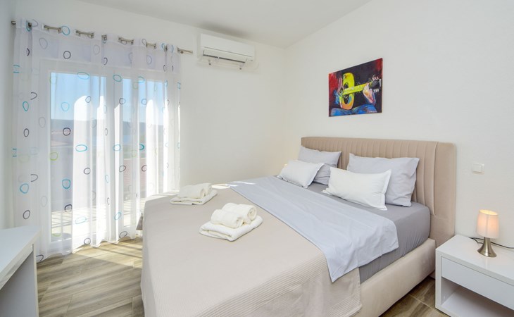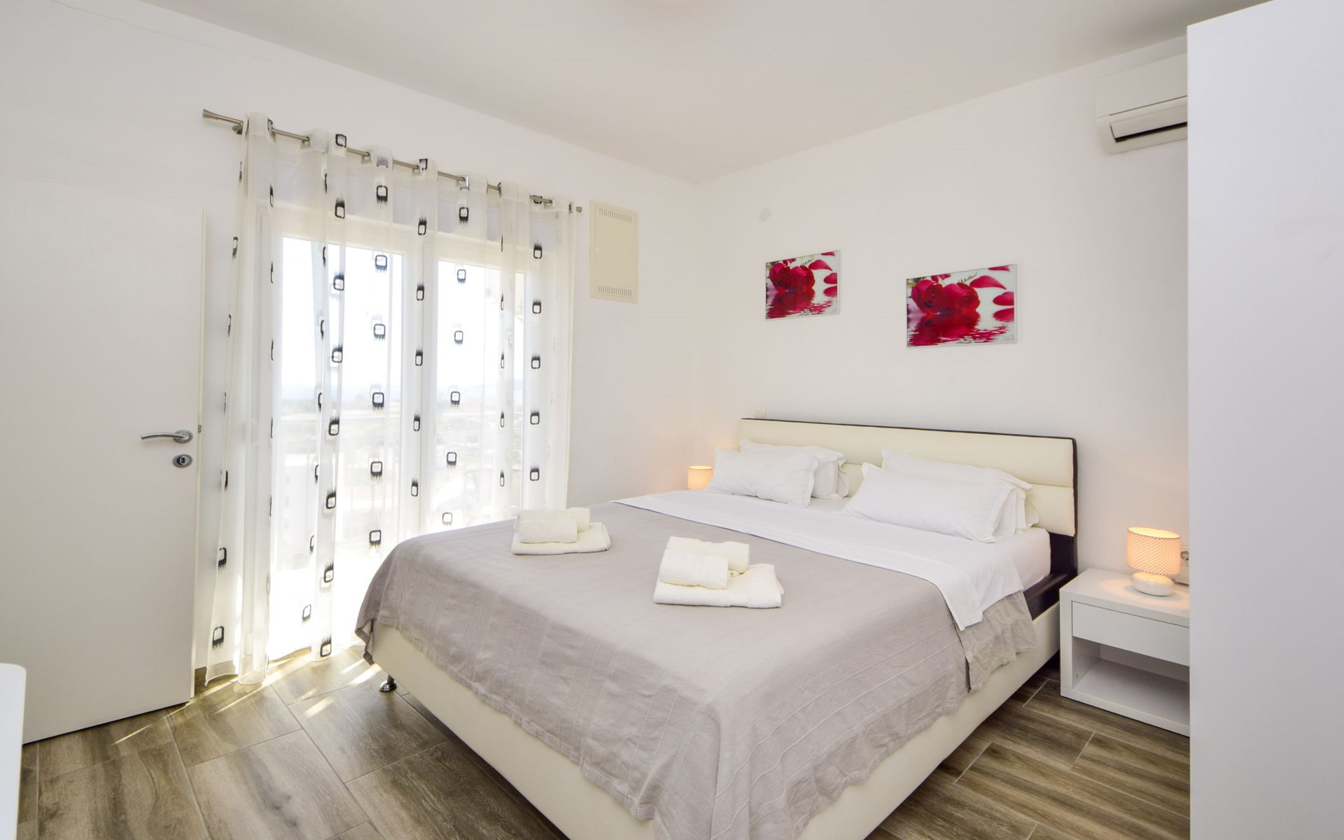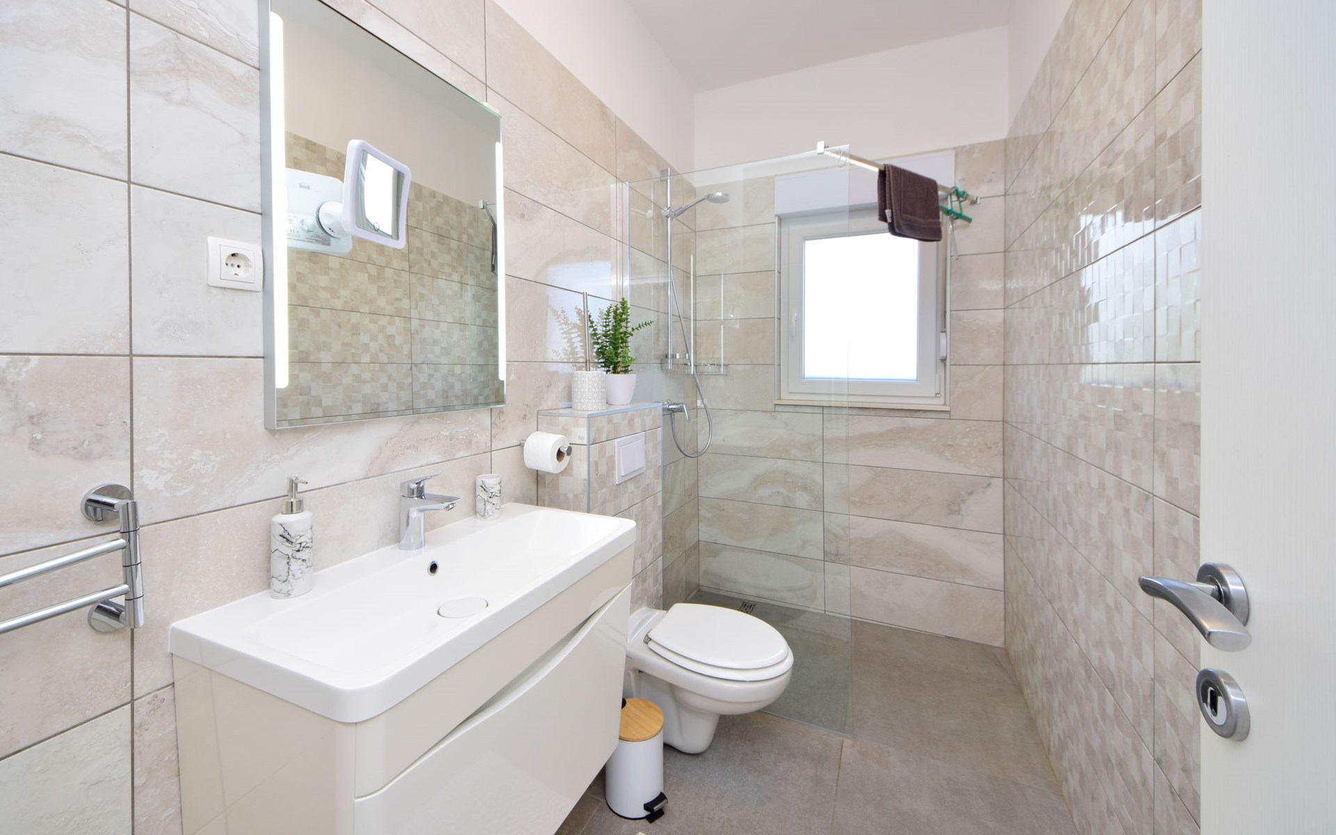 Seget Vranjica: Zeer mooi villa "Maris", van 3 verdiepingen. 5.2 km van het centrum van Trogir, rustige, zonnige ligging tegen een helling, 1.1 km van zee, 1.1 km van het strand, aan een doodlopende weg. Voor alleengebruik: terrein 400 m2 (omheind), openluchtzwembad hoekig (32 m2, seizoensgebonden beschikbaarheid: 01.Mei. - 31.Okt.) met trap. Buitendouche, hot tub, poolhouse met koelkast, barbecue, onderhoud zwembad door de eigenaar/tuinman. In het huis: internetaansluiting, fitnessruimte, wasmachine. 50 m lange steile toegangsweg tot aan het huis. Parkeerplaats (voor 4 auto's) bij het huis op het terrein. Winkel 400 m, winkelcentrum 4.6 km, restaurant 1.1 km, bushalte 260 m, kiezelstrand 1.1 km. Vliegveld 11 km van het huis.