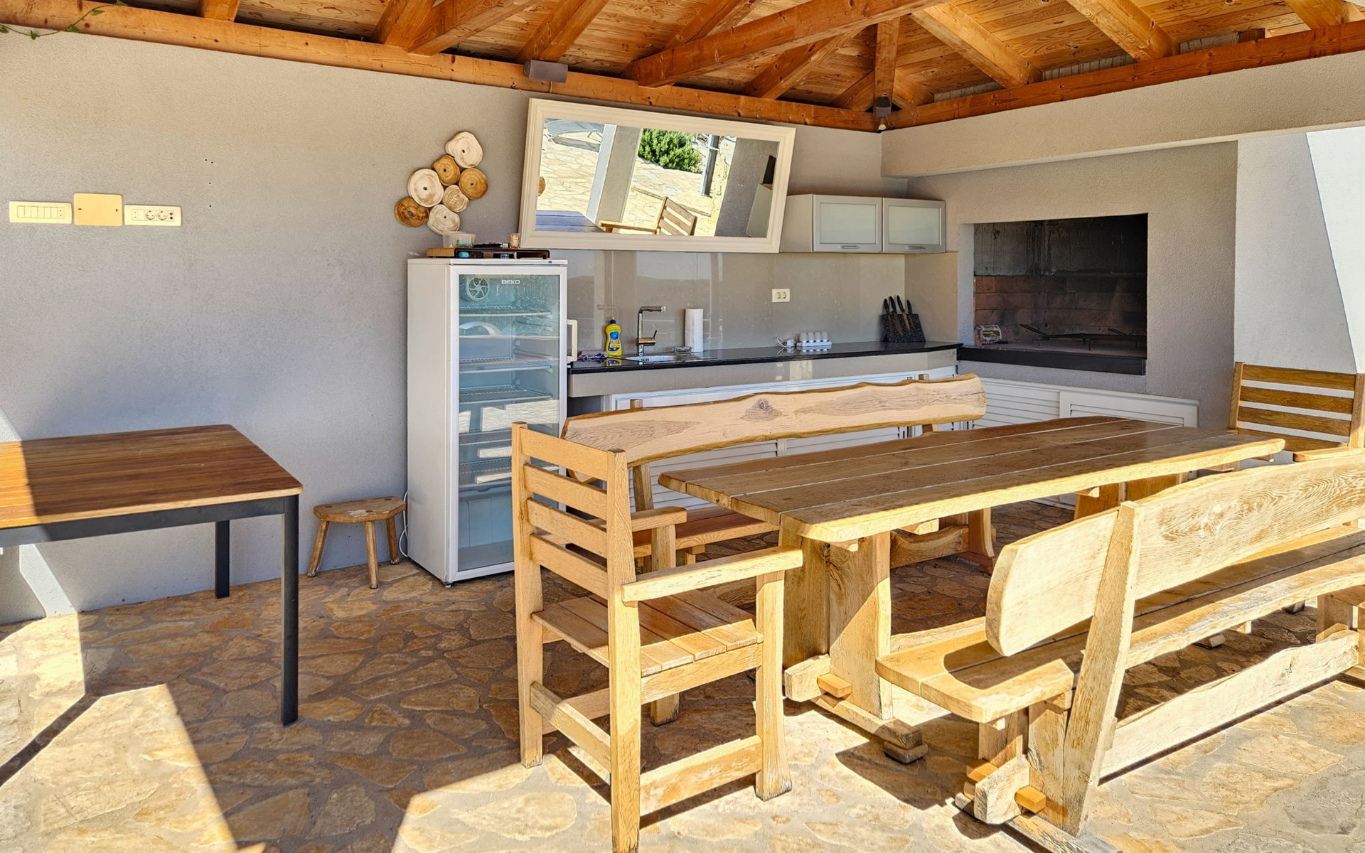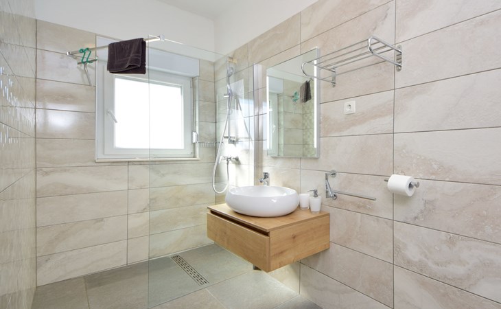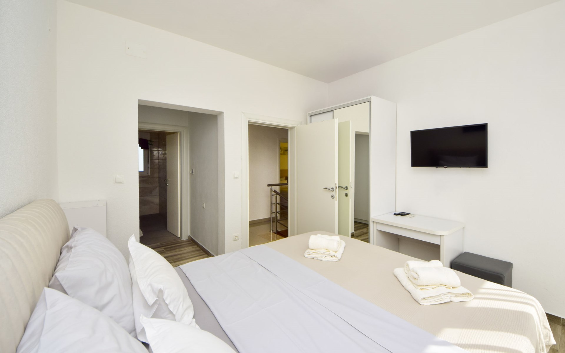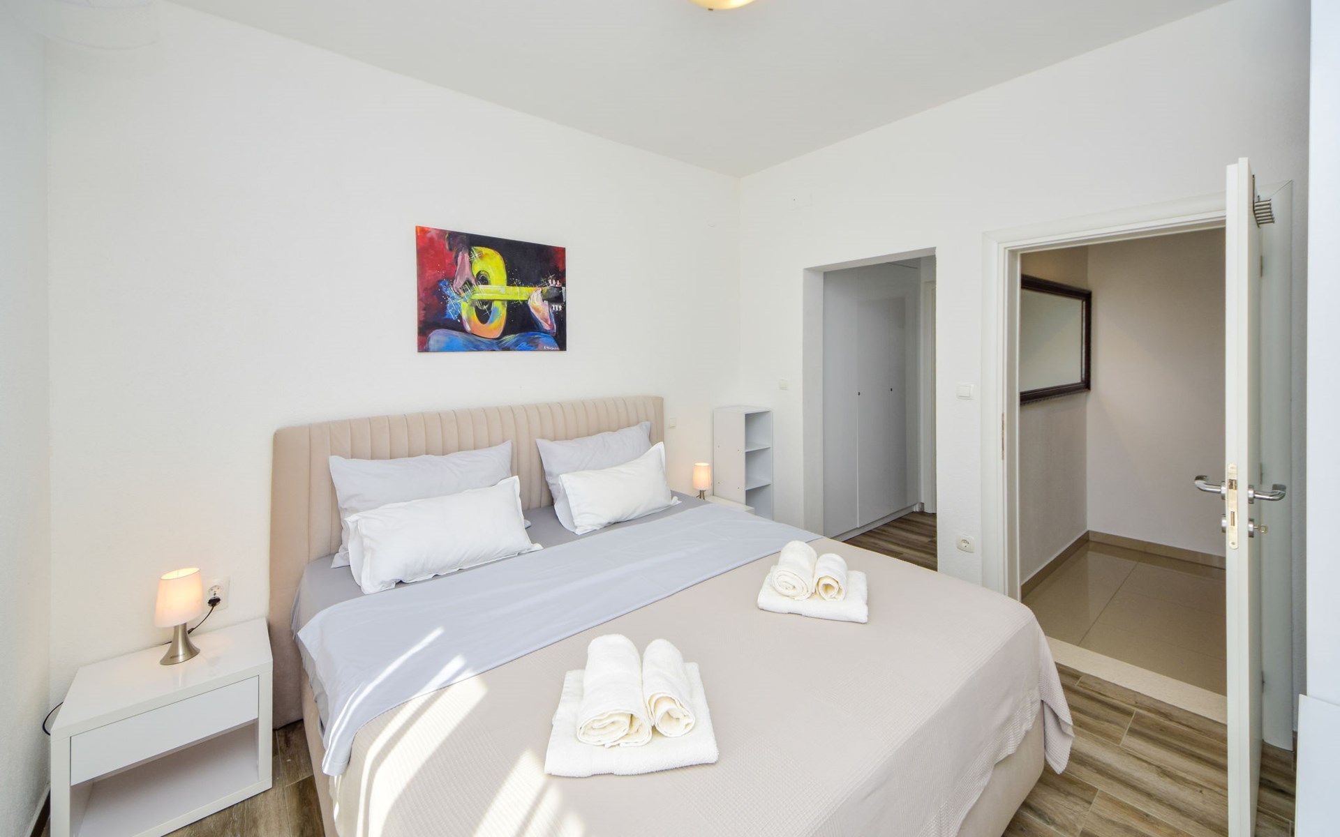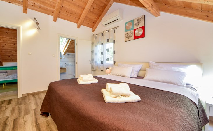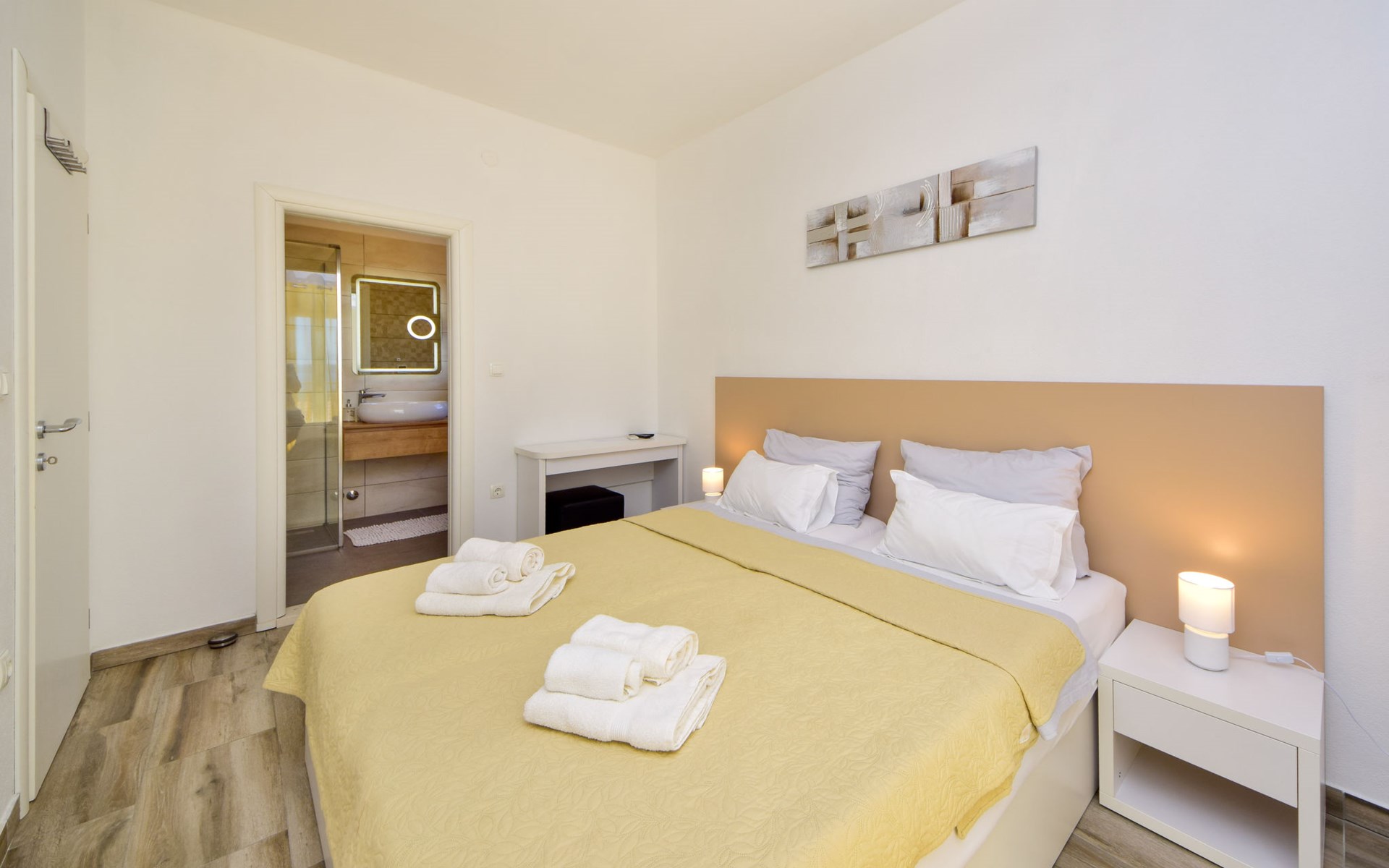 Seget Vranjica: Zeer mooi villa "Maris", van 3 verdiepingen. 5.2 km van het centrum van Trogir, rustige, zonnige ligging tegen een helling, 1.1 km van zee, 1.1 km van het strand, aan een doodlopende weg. Voor alleengebruik: terrein 400 m2 (omheind), openluchtzwembad hoekig (32 m2, seizoensgebonden beschikbaarheid: 01.Mei. - 31.Okt.) met trap. Buitendouche, hot tub, poolhouse met koelkast, barbecue, onderhoud zwembad door de eigenaar/tuinman. In het huis: internetaansluiting, fitnessruimte, wasmachine. 50 m lange steile toegangsweg tot aan het huis. Parkeerplaats (voor 4 auto's) bij het huis op het terrein. Winkel 400 m, winkelcentrum 4.6 km, restaurant 1.1 km, bushalte 260 m, kiezelstrand 1.1 km. Vliegveld 11 km van het huis.
