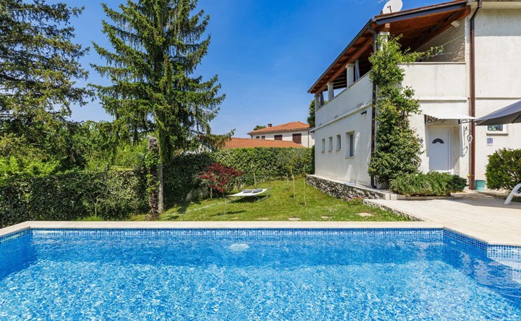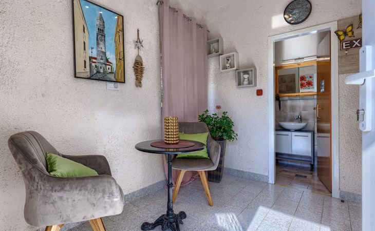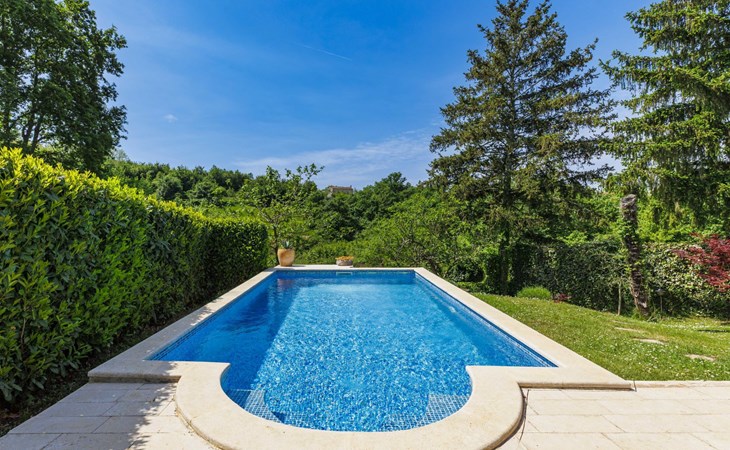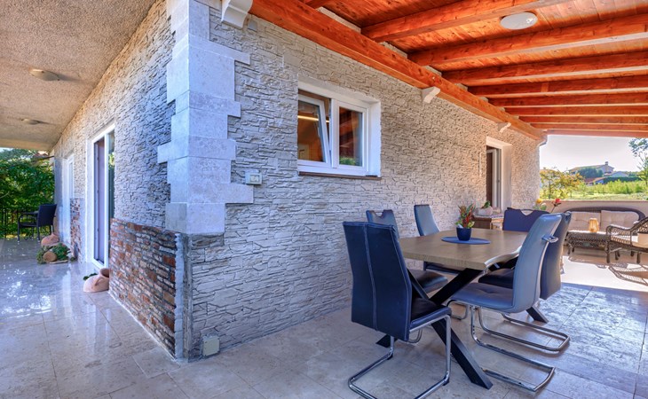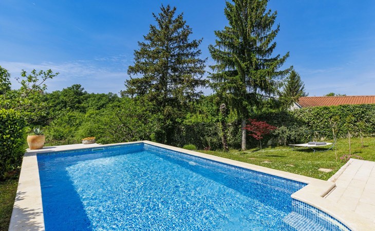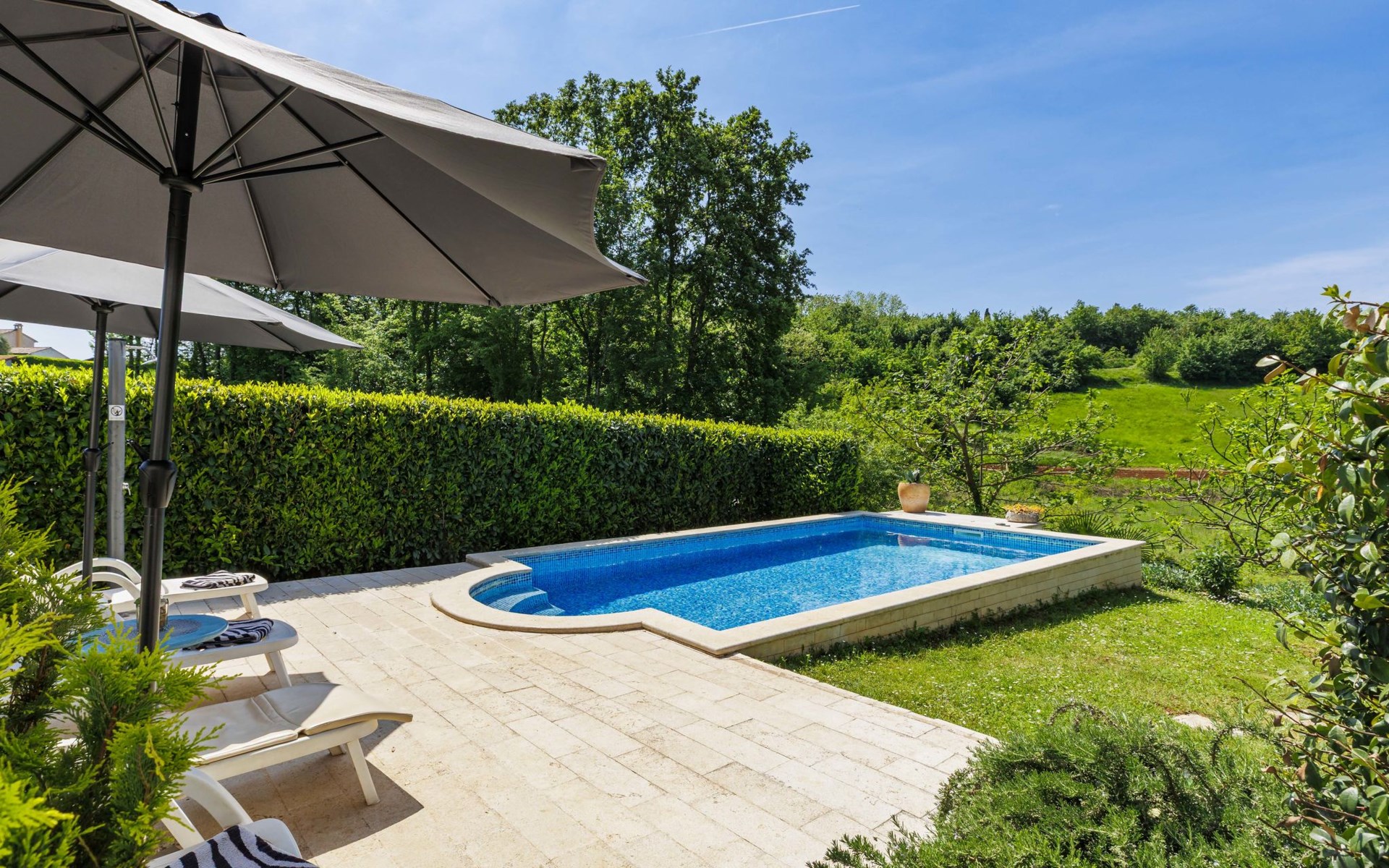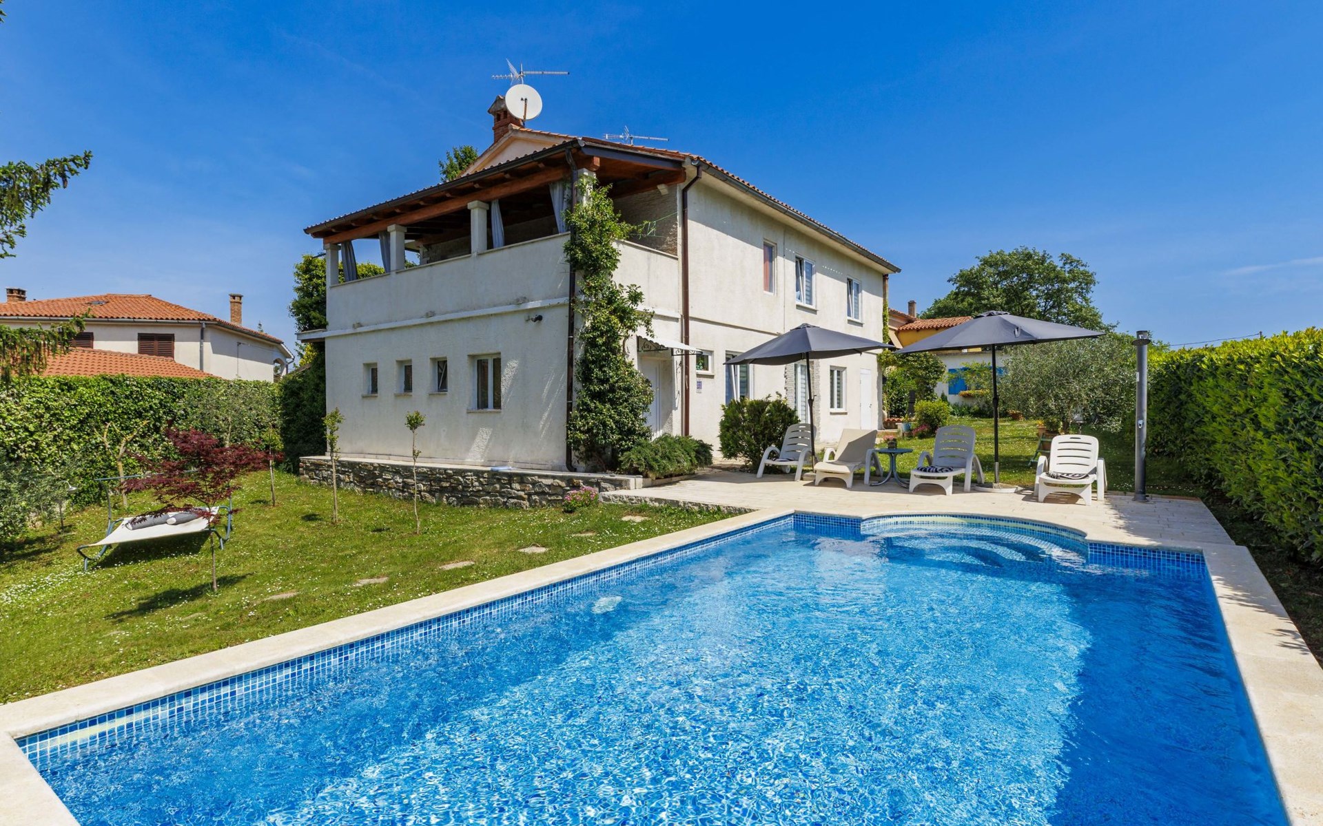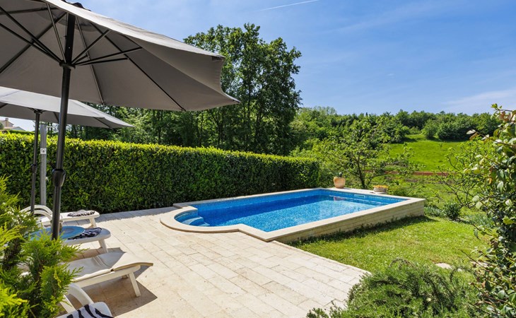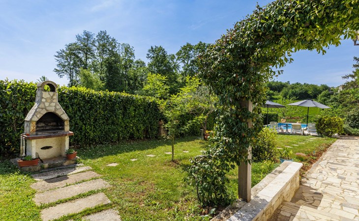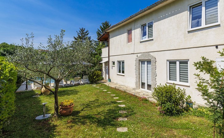 Eengezinswoning "Palma", van 2 verdiepingen. In het gehucht Karojba, 4 km van het centrum van Motovun, 14 km van het centrum van Pazin, 20 km van het centrum van Poreč, 20 km van zee. Voor alleengebruik: terrein 2.000 m2 met gazon en bomen, openluchtzwembad (7 x 4 m, 135 cm diepte, seizoensgebonden beschikbaarheid: 01.Mei. - 01.Okt.) met trap. Buitendouche, terras, tuinmeubelen, barbecue (schommel), onderhoud zwembad door de eigenaar/tuinman. In het huis: internetaansluiting, wasmachine. Parkeerplaats (voor 2 auto's) op het terrein. Winkel 200 m, supermarkt 14 km, restaurant 4 km, bushalte 16 km, treinstation 16 km, rotsstrand 20 km. Jachthaven 20 km.