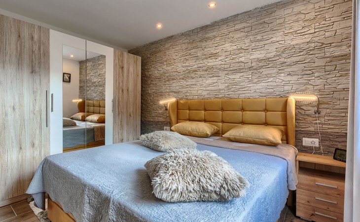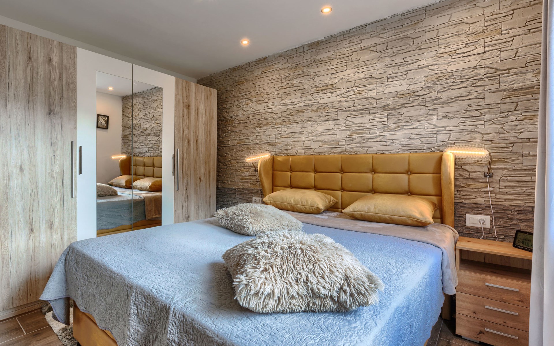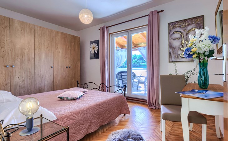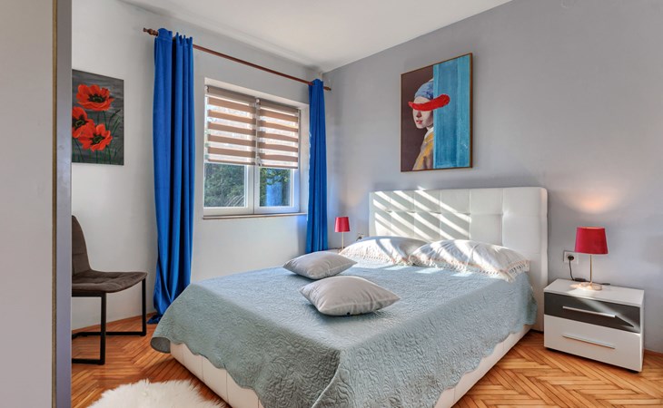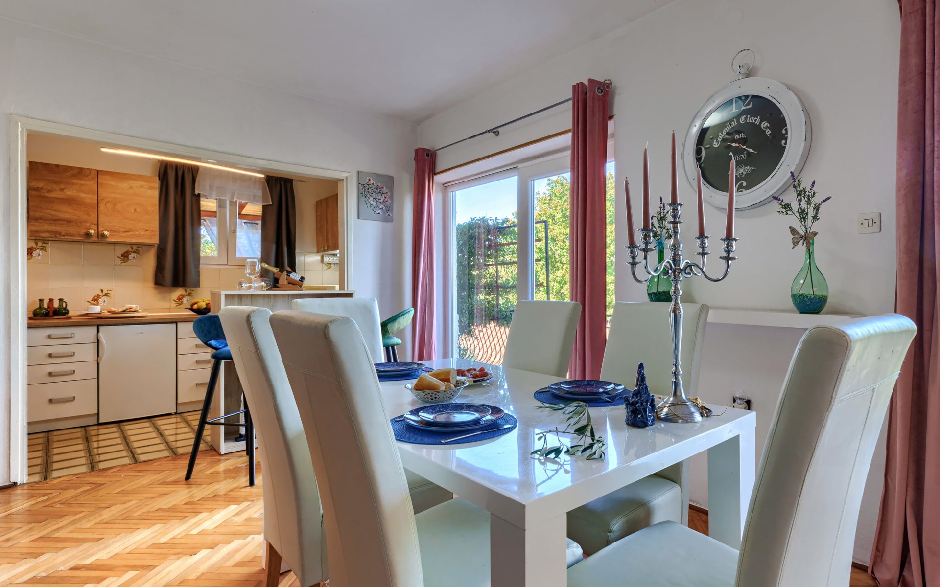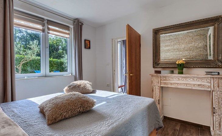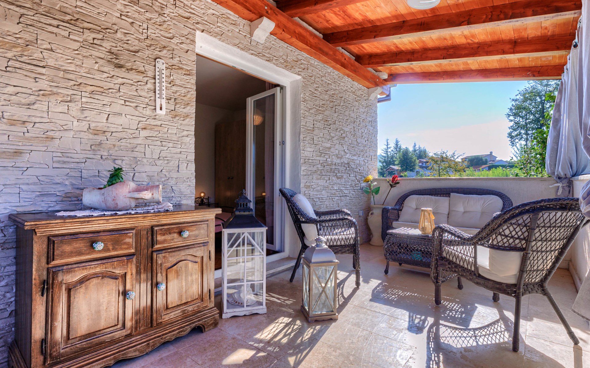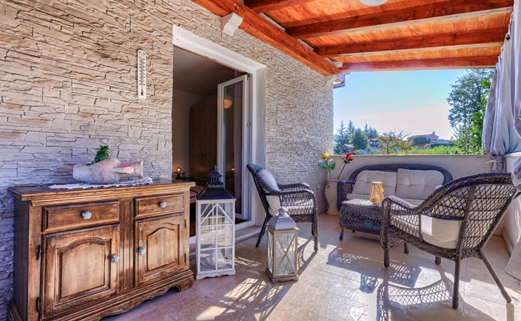 Eengezinswoning "Palma", van 2 verdiepingen. In het gehucht Karojba, 4 km van het centrum van Motovun, 14 km van het centrum van Pazin, 20 km van het centrum van Poreč, 20 km van zee. Voor alleengebruik: terrein 2.000 m2 met gazon en bomen, openluchtzwembad (7 x 4 m, 135 cm diepte, seizoensgebonden beschikbaarheid: 01.Mei. - 01.Okt.) met trap. Buitendouche, terras, tuinmeubelen, barbecue (schommel), onderhoud zwembad door de eigenaar/tuinman. In het huis: internetaansluiting, wasmachine. Parkeerplaats (voor 2 auto's) op het terrein. Winkel 200 m, supermarkt 14 km, restaurant 4 km, bushalte 16 km, treinstation 16 km, rotsstrand 20 km. Jachthaven 20 km.