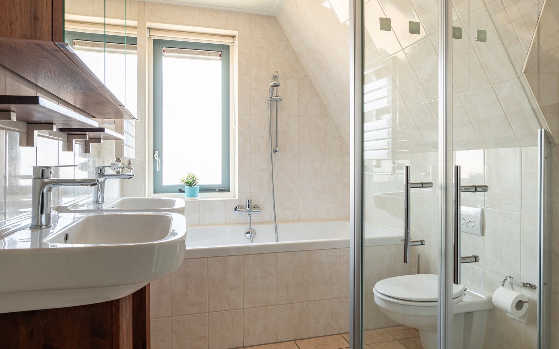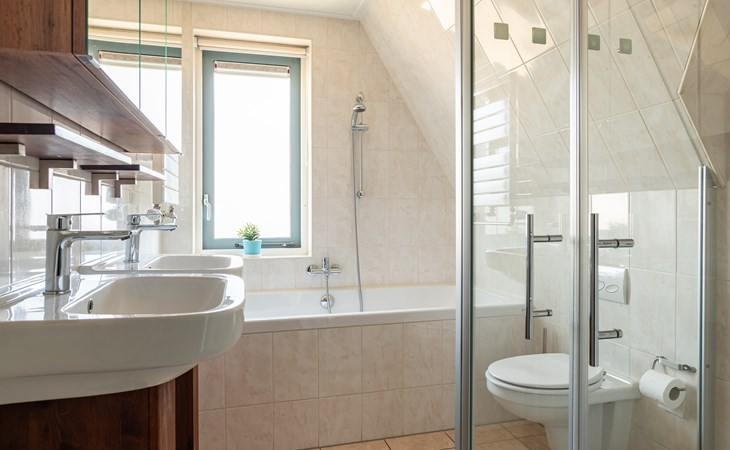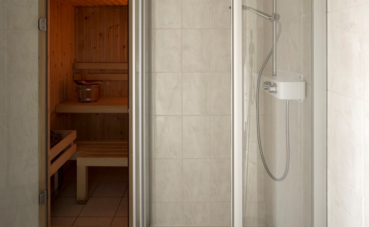 Verder heeft de vakantiewoning op de begane grond een separaat toilet, een wasmachine en wasdroger. De badkamer op de begane grond heeft een inloop regendouche, wastafel en een privé sauna zodat je weer heerlijk kunt ontspannen na een actief dagje in de omgeving.