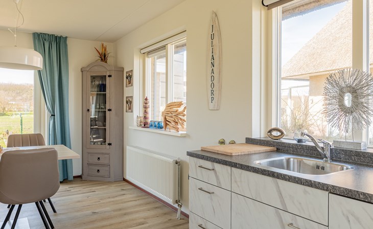 Geniet van je verblijf dicht bij het strand op Dormio Villapark Duynzicht aan de kust van Noord-Holland en overnacht in deze comfortabele 6-persoons vakantiewoning met 3 slaapkamers en 2 badkamers. Villa Luxe is een vrijstaande, rietgedekte vakantiewoning met een gebruiksoppervlakte van circa 95 m2.