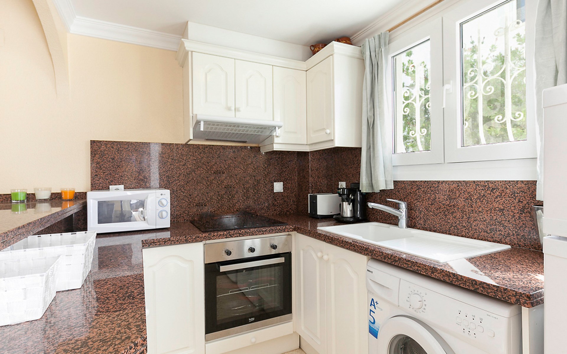 Oliva Nova Golf: Mooi, gezellig flatgebouw "Club Sevilla", van 2 verdiepingen, eenzijdig aangebouwd. 5 km van het centrum van Oliva, 15 km van het centrum van Denia, in het district Oliva Nova Golf Beach, 200 m van zee. Voor medegebruik: mooie, verzorgde tuin met gazon en planten, ligweide, openluchtzwembad niervormig (5 x 9 m, seizoensgebonden beschikbaarheid: 01.Jan. - 31.Dec.). Buitendouche, parkeerplaats (beperkt aantal). Supermarkt 1 km, restaurant, bar, café 150 m, bushalte 300 m, station 20 km, veerboot 20 km, zandstrand 200 m. Golfterrein (18 holes) 500 m, tennis 700 m, manege 2 km, kinderspeelplaats 600 m. Attracties in de buurt: go karting 3 km. De eigenaar accepteert geen jeugdgroepen.