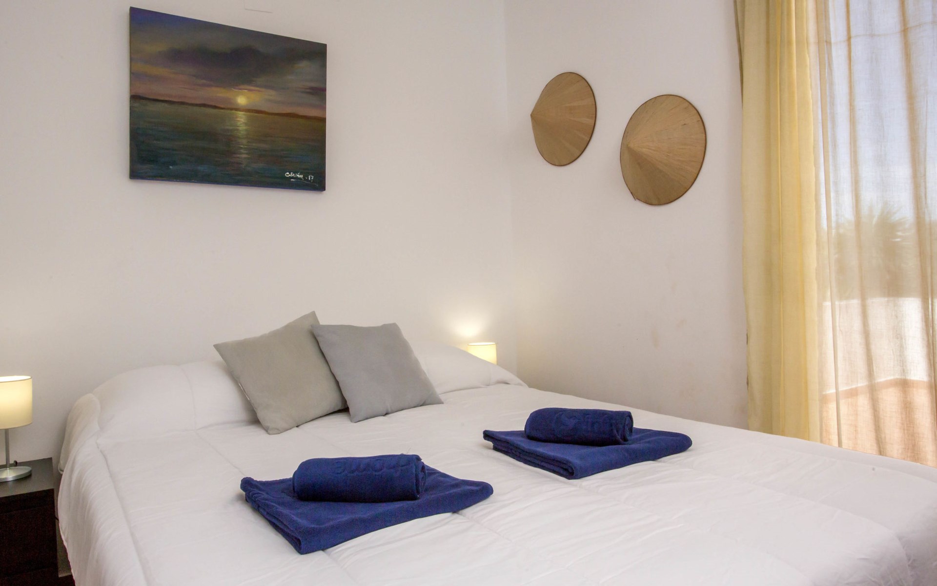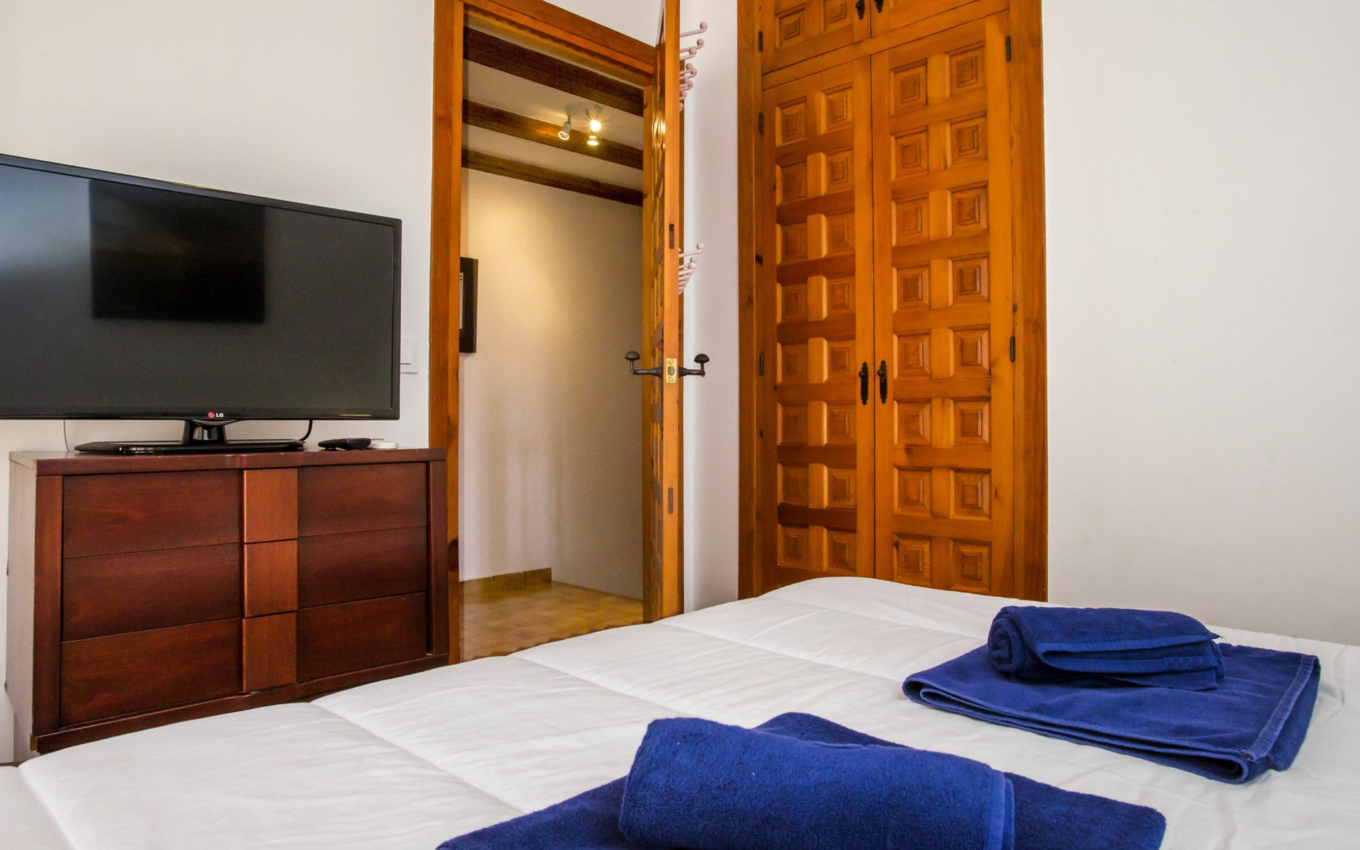 Rijtjeshuis "Cala Blanca". 130 huizen in de woning. 120 m van zee, aan een weg, aan een hoofdweg. Voor medegebruik: tuin (omheind) met gazon en planten, openluchtzwembad (seizoensgebonden beschikbaarheid: 01.Apr. - 30.Okt.). Kinderzwembad, glijbaan, buitendouche, openbare parkeerplaatsen in de straat. Winkel 2 km, supermarkt 1 km, winkelcentrum 20 km, restaurant 1 km, café 1 km, internet cafe 1 km, biertuin 1 km, bushalte "calle Tripoli" 290 m, zandstrand "Arenal" 1.5 km, stenenstrand "Caleta" 500 m. Golfterrein (9 holes) 6 km, zeilschool 8 km, tennis 2 km. De eigenaar accepteert geen jeugdgroepen.